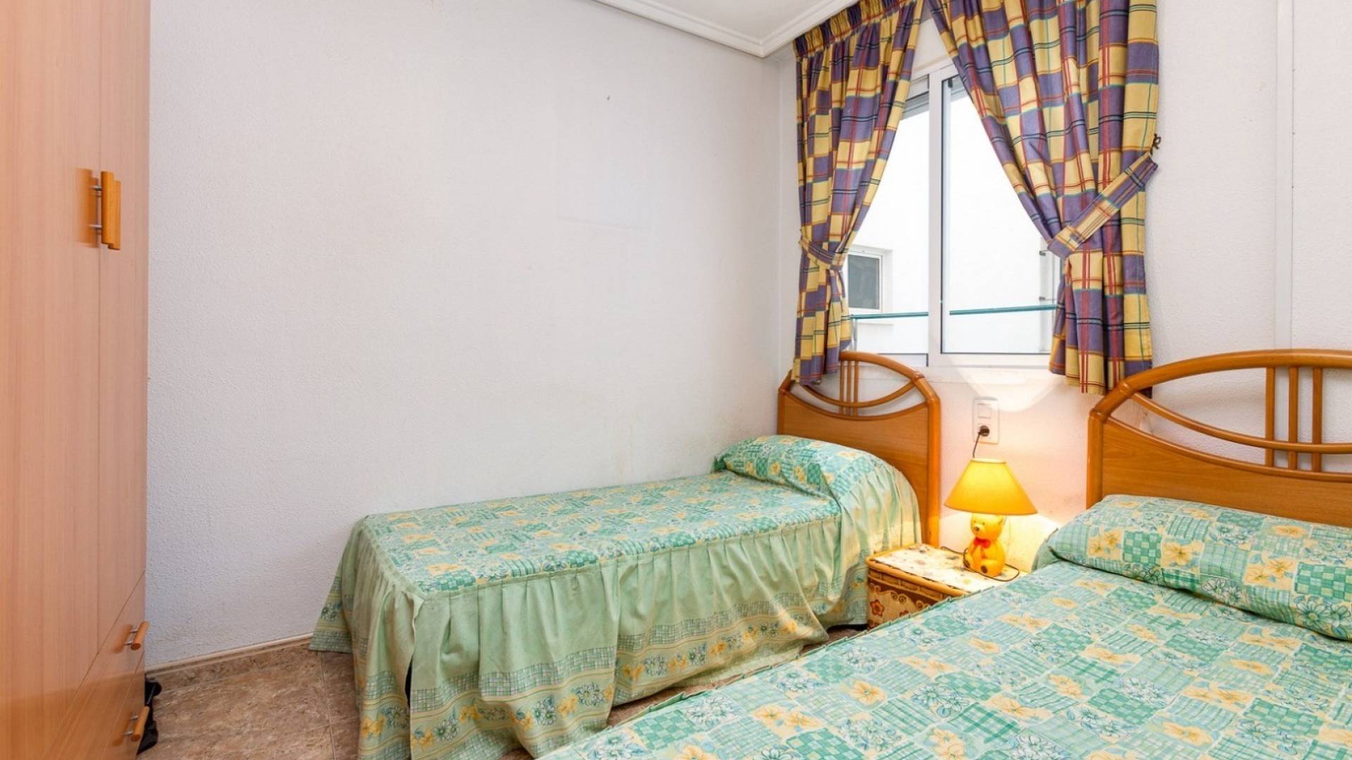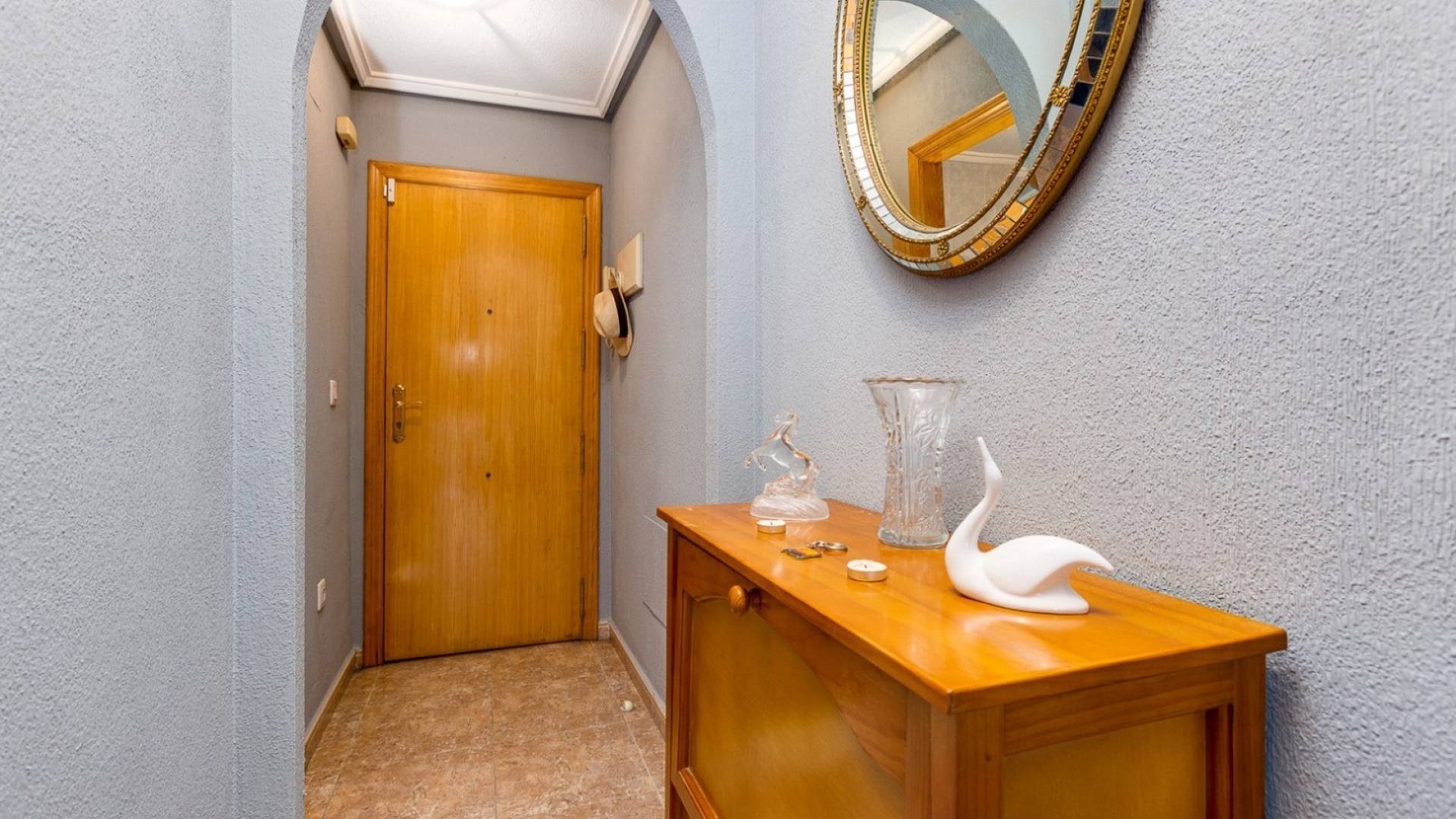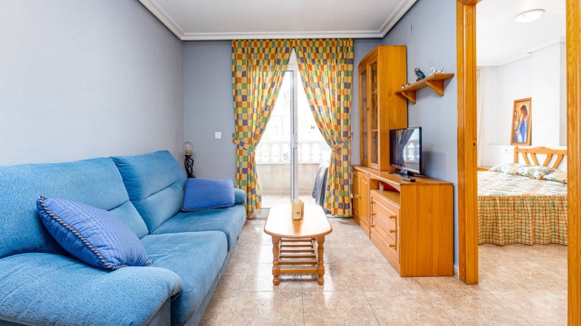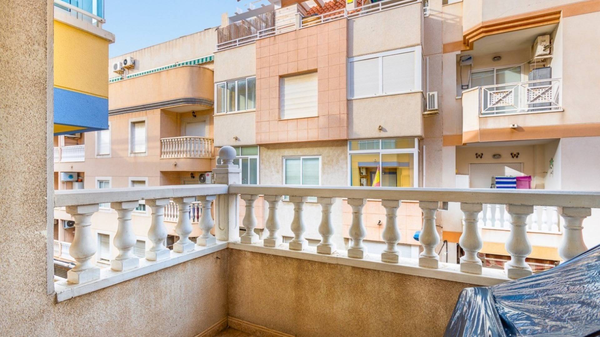 Presentamos este precioso y luminoso apartamento en segunda planta , ubicado en el corazón de Torrevieja , uno de los pueblos costeros más populares de la Costa Blanca . A tan solo 850 metros del mar y a poca distancia de todos los servicios esenciales, como supermercados, restaurantes, farmacias y transporte público, esta vivienda es ideal para vivir todo el año o para disfrutar de unas vacaciones en el Mediterráneo. El apartamento cuenta con 2 dormitorios , 1 baño completo , cocina americana y un acogedor salón-comedor con acceso directo a la terraza , ideal para relajarse al aire libre. Se vende completamente amueblado y equipado, listo para entrar a vivir. El complejo residencial también cuenta con piscina comunitaria , ideal para disfrutar del agradable clima de la zona durante más de 300 días al año. Su céntrica ubicación permite un fácil acceso a las playas de Los Locos y del Cura , dos de las más famosas de Torrevieja, así como al paseo marítimo y al puerto deportivo. En los alrededores encontrará centros comerciales como Habaneras y La Zenia Boulevard , así como campos de golf de renombre como Villamartín Golf , Las Ramblas y La Marquesa Golf . El Aeropuerto Internacional de Alicante-Elche está a solo 45 minutos en coche y ofrece rápidas conexiones con el resto de Europa. No pierda esta oportunidad de adquirir una vivienda en el corazón de Torrevieja con una ubicación excelente, perfecta para inversión o como segunda residencia. Contáctenos hoy mismo y visítenos.