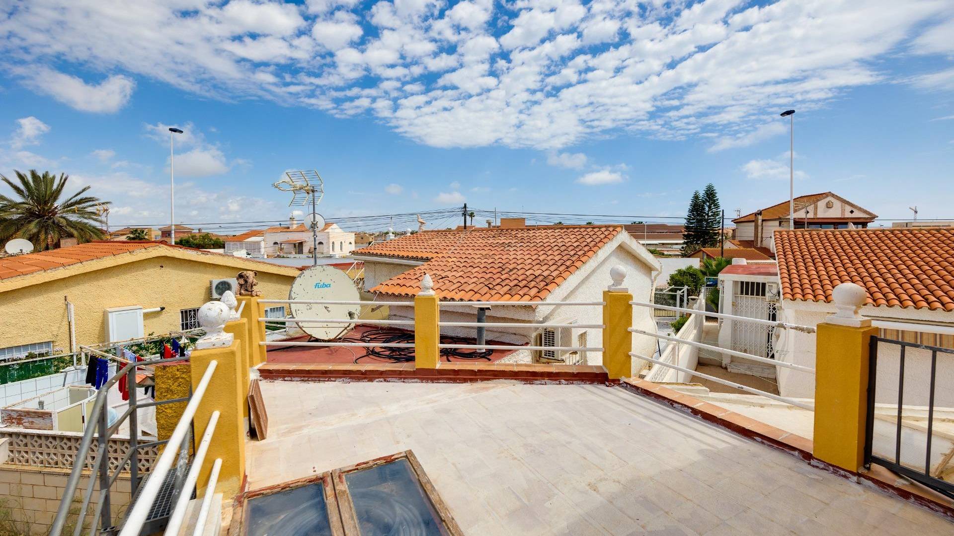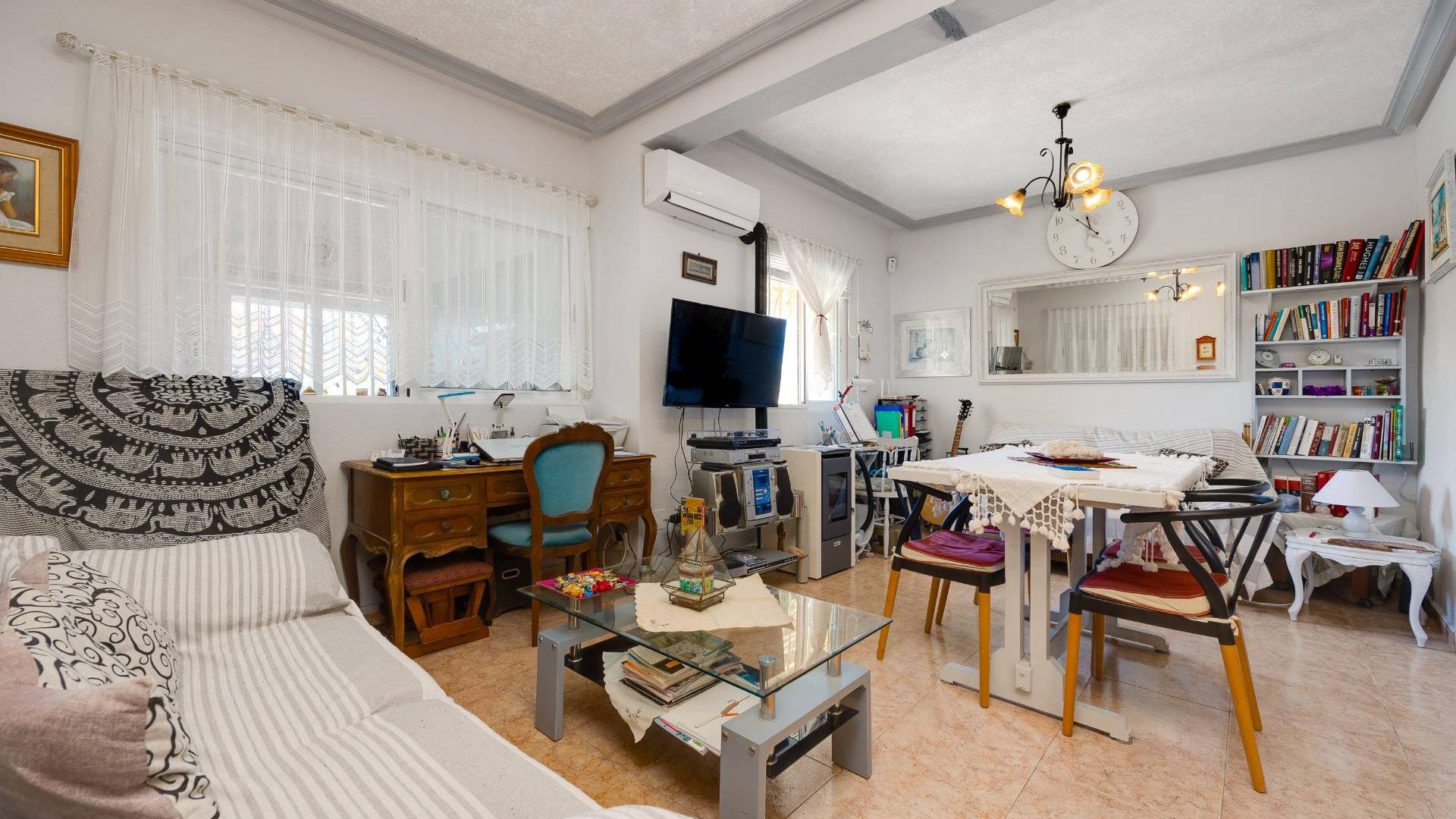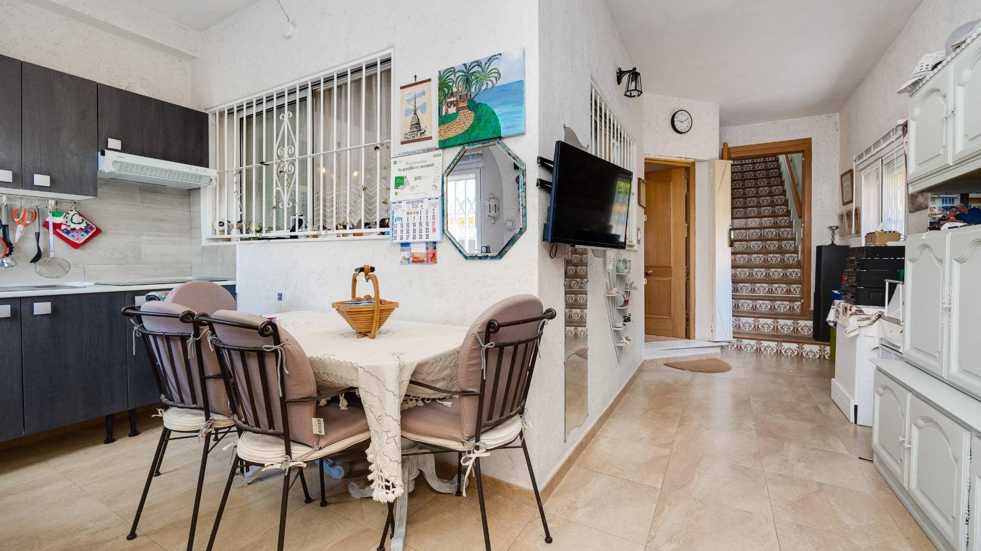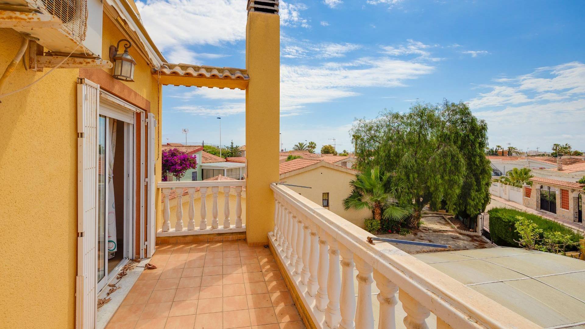Descubre este espectacular chalet independiente situado en Aguas Nuevas, ( Urb. Casa de la Primavera )una de las zonas más buscadas de Torrevieja. Este inmueble es perfecto tanto para residir durante todo el año como para disfrutar de unas vacaciones inolvidables. Su ubicación privilegiada te coloca a un paso del centro y rodeado de todos los servicios esenciales: colegios, supermercados y parques se encuentran al alcance de tu mano, además la playa está muy cerca. La propiedad cuenta con una amplia parcela de 248 m² sin gastos comunitarios y con potencial para construir tu propia piscina privada. En su distribución encontramos en planta baja dos dormitorios acogedores, un salón que incluye chimenea ideal para crear momentos especiales junto a tus seres queridos; también dispone de una terraza acristalada perfecta para aprovechar incluso en invierno. Además hay trasteros útiles e instalaciones adecuadas tras días disfrutando del sol o realizando barbacoas al aire libre gracias a un baño exterior adicional disponible. Por otro lado, la planta alta ofrece otros dos amplios dormitorios luminosos acompañados por un segundo baño completo y maravillosas terrazas donde podrás deleitarte con vistas panorámicas impresionantes hacia el entorno natural que lo rodea. ¡No pierdas esta oportunidad única! Contáctanos hoy mismo si deseas agendar tu visita.