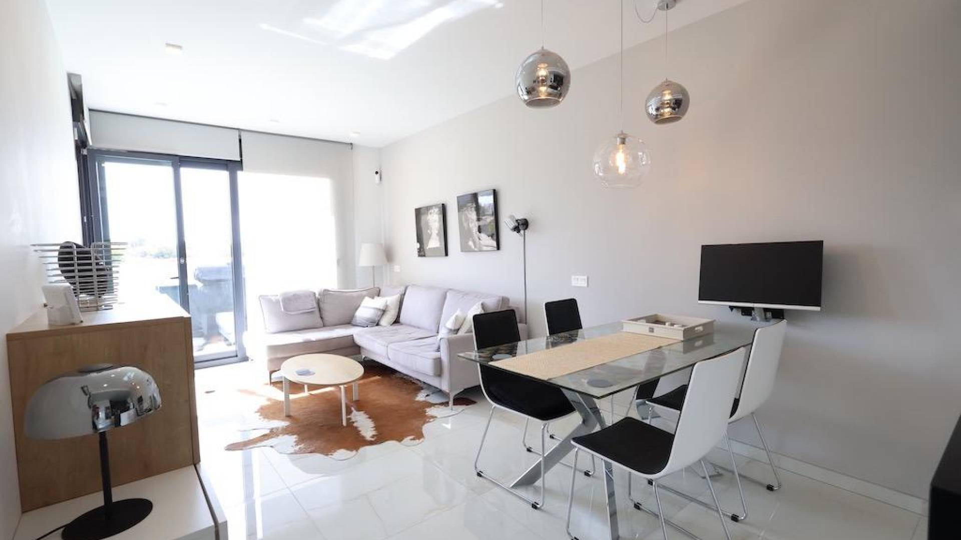 Presentamos este luminoso y moderno apartamento en la segunda planta del exclusivo Residencial Amanecer 3. Con una ubicación privilegiada, frente a la piscina comunitaria y rodeado de amplias zonas verdes, este apartamento es ideal para disfrutar de un entorno tranquilo y acogedor, cerca de todos los servicios y bien comunicado.. . La vivienda cuenta con 76,6 m2 , distribuidos en dos dormitorios, dos baños completos con suelo radiante, un espacioso salón comedor con cocina americana y una amplia terraza de 21 m2 orientada al sur, equipada con toldos y perfecta para disfrutar de los días soleados. . . Entre las características destacadas de este apartamento se incluyen alarma, ventanas con mosquiteras, aire acondicionado y una barbacoa en la terraza, lo que garantiza un hogar cómodo y funcional. Además, se vende semi-amueblado y completamente equipado.. . El apartamento dispone de dos plazas de garaje subterráneas, con instalación eléctrica para coches eléctricos, lo que ofrece una gran comodidad y modernidad.. . Este hogar es perfecto tanto para ser residencia habitual como para inversores que buscan una excelente oportunidad de alquiler con alta rentabilidad. ¡No pierdas la oportunidad de conocer este apartamento único en el mercado!.