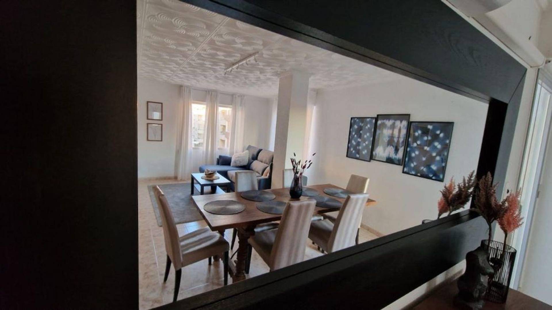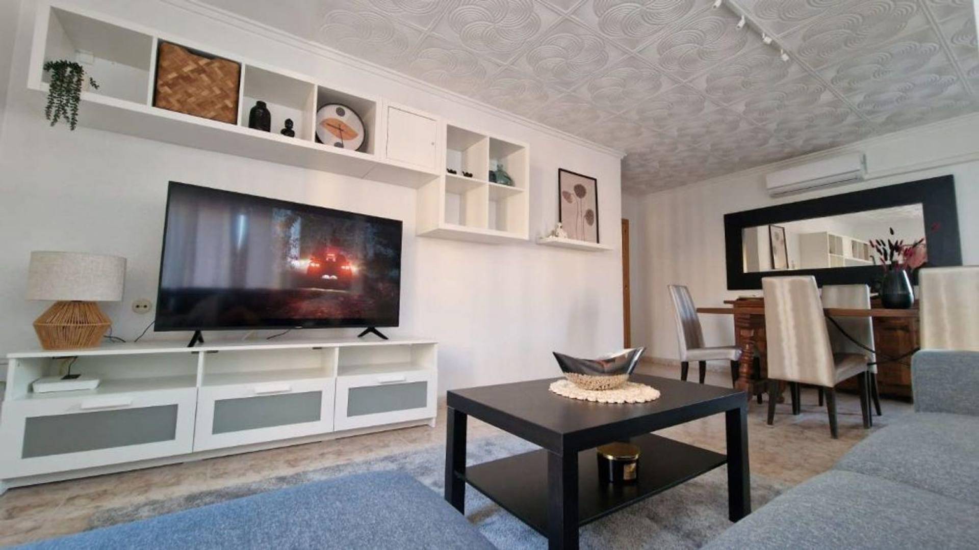 El espacioso apartamento de 100 m² cuenta con: 3 dormitorios 1 dormitorio con cama de matrimonio, aire acondicionado y Smart TV 2 camas individuales, aire acondicionado y Smart TV 1 cama individual de 100 x 200 cm, aire acondicionado y Smart TV Salón-comedor Muy espacioso con una gran mesa Aire acondicionado Amplia cocina con mesa de comedor pequeña y sillas Totalmente equipada (lavavajillas, frigorífico con congelador y microondas) Baño n. º 1 Con ducha Aseo Lavadero Lavadora Termo Posibilidad de guardar la plancha y el material de playa. Esta habitación es muy luminosa y espaciosa. El apartamento goza de una ubicación privilegiada, a solo 180 metros de la playa de Los Locos, la más bonita de la ciudad. Encontrará una hermosa arena dorada. En el paseo marítimo se encuentran algunos de los mejores restaurantes de la ciudad con preciosas vistas al mar. El apartamento está rodeado de todos los servicios, como bares, restaurantes y tiendas.