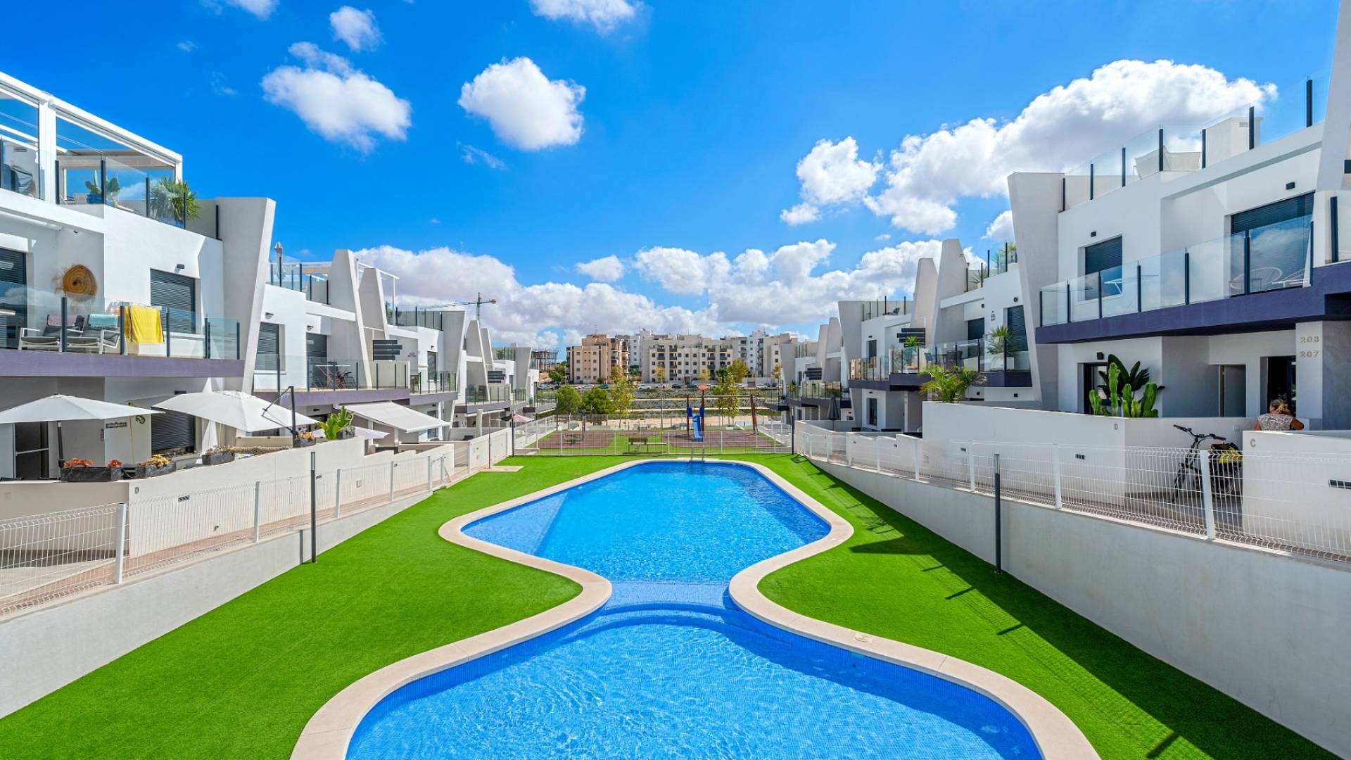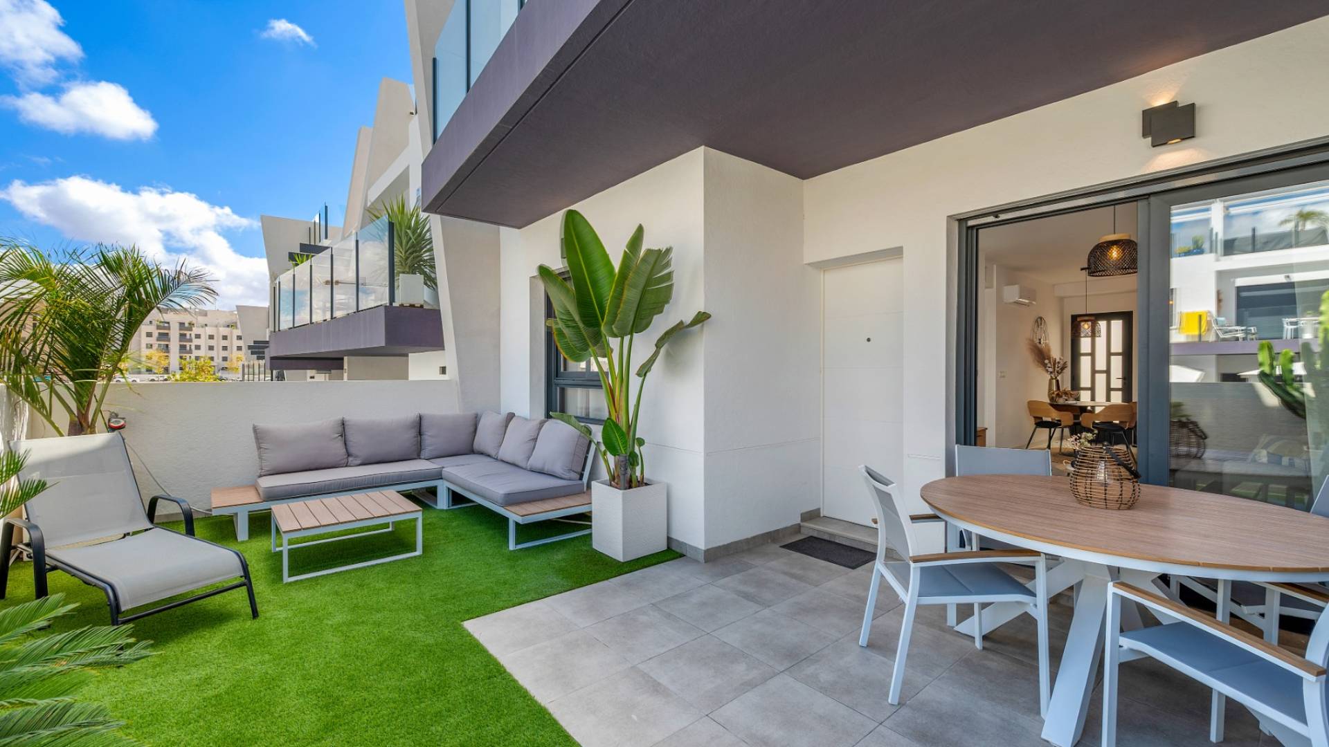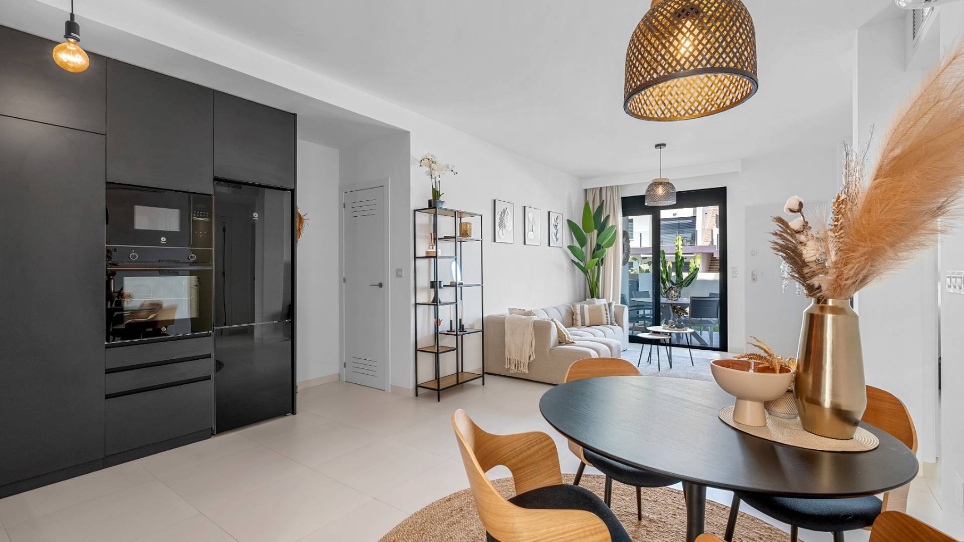 Descubre este fantástico apartamento en la tranquila urbanización Saoco en San Miguel de Salinas. Entra a vivir de inmediato o consíguelo como una excelente inversión. La vivienda se entrega totalmente amueblada, equipada con electrodomésticos de alta calidad y decorada con un estilo elegante. La casa cuenta con un diseño moderno y funcional, con cocina abierta y un amplio y luminoso salón que da acceso directo a una gran terraza con vistas a la piscina comunitaria. En la parte trasera, un espacio exterior privado ofrece infinitas posibilidades. El apartamento dispone de dos amplios dormitorios, uno de ellos una suite principal con baño privado y armarios empotrados. Todas las estancias están equipadas con persianas, cortinas y ventiladores de techo para mayor comodidad. Los dos baños están en perfecto estado y cuentan con accesorios y acabados modernos. San Miguel de Salinas es un pueblo lleno de vida e historia, con mucho por descubrir: desde sus fascinantes cuevas hasta los prestigiosos campos de golf situados a pocos minutos. Tanto si buscas relajarte como si prefieres aventura, aquí lo encontrarás.