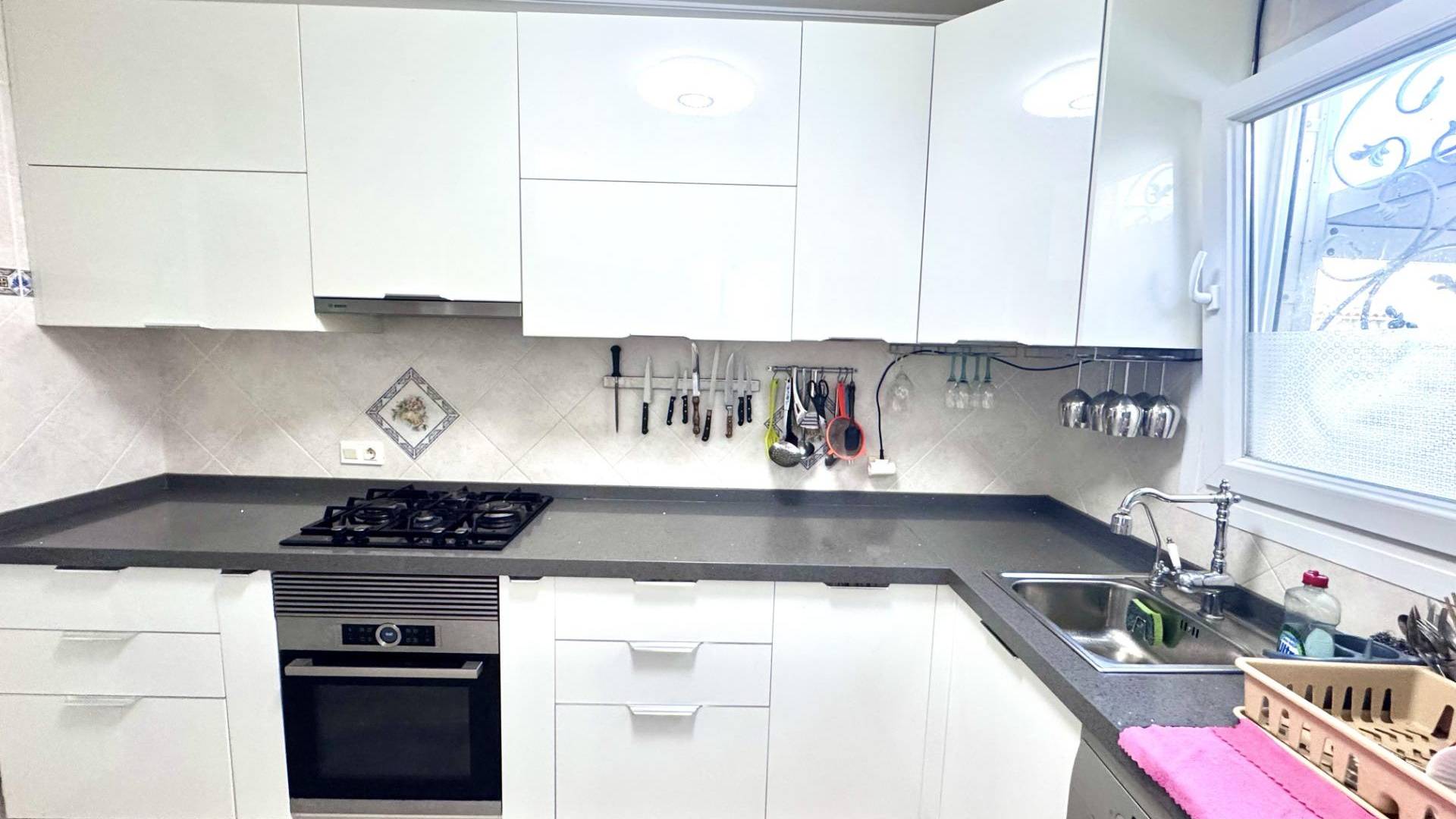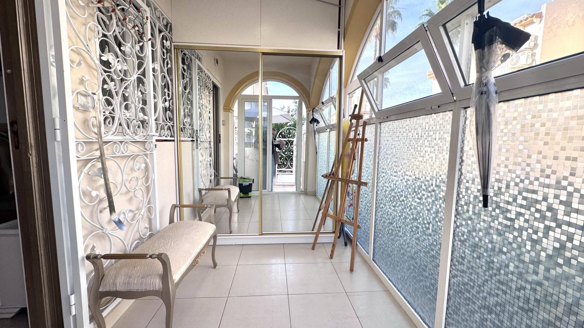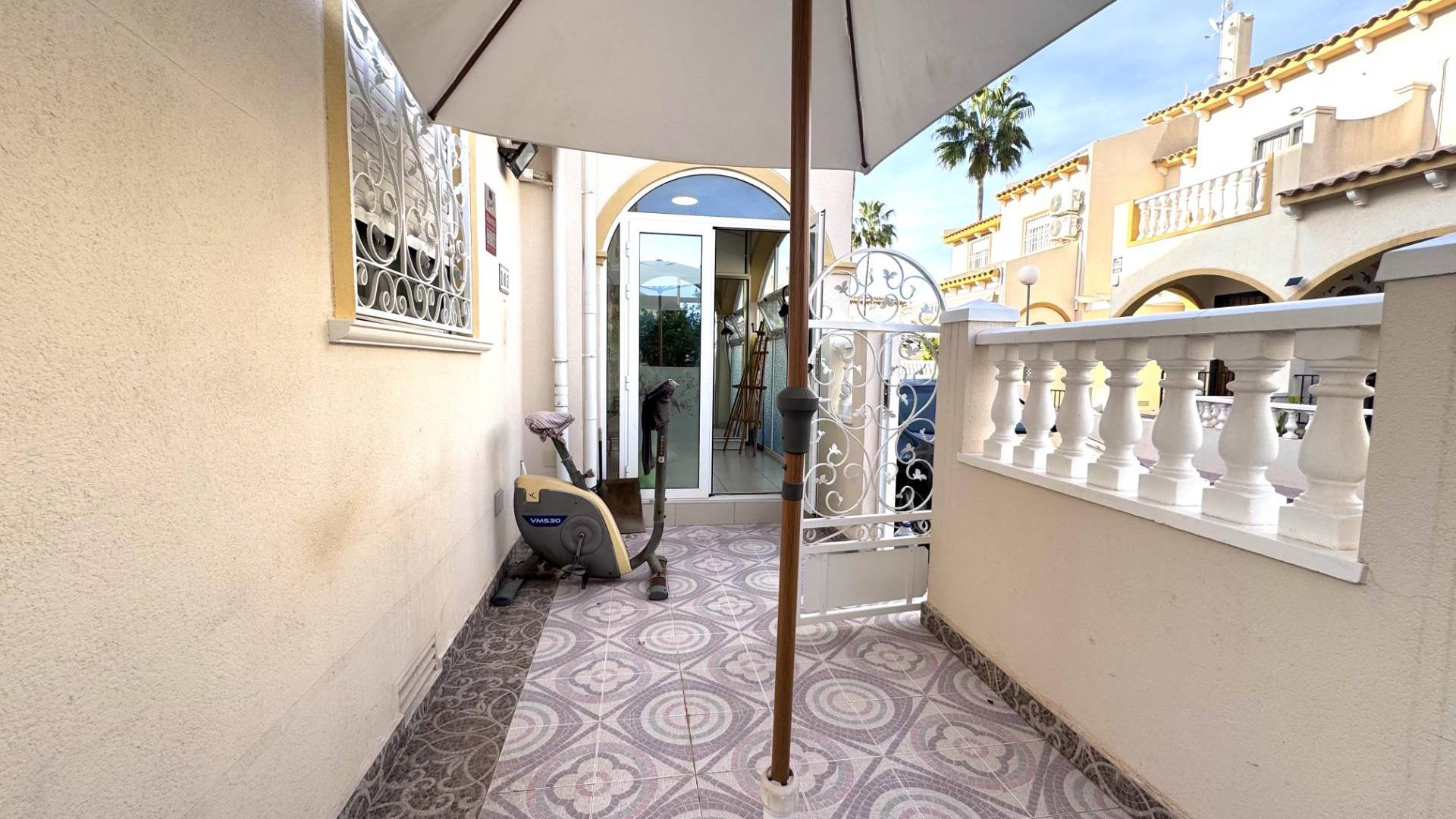 Adosado en Playa Flamenca – 210.000 € (5 Dor. +2 Baños) Ubicación ideal cerca de La Zenia Boulevard y las playas de Orihuela Costa Les presentamos este amplio adosado en Playa Flamenca, situado junto a la conocida zona del mercadillo de los sábados y a tan solo 600 metros del centro comercial La Zenia Boulevard. Una vivienda perfecta para disfrutar del clima mediterráneo todo el año, con amplias estancias, terrazas y zonas exteriores privadas. ????️ Distribución y características principales 3 dormitorios dobles principales 2 dormitorios adicionales o espacios multifuncionales (perfectos como despacho, sala de juegos o dormitorios extra) 2 baños completos (uno con ducha y otro con bañera) Cocina independiente, completamente equipada y reformada Galería de lavandería + cuarto adicional de almacenamiento o taller Entrada acristalada amplia con armario empotrado Jardín privado con entrada para coche Piscina comunitaria con zonas verdes ???? Descripción detallada La vivienda dispone de una terraza exterior ideal para barbacoas y reuniones familiares, una entrada acristalada que aporta luminosidad y confort, y un salón-comedor amplio con aire acondicionado. En la planta baja encontramos un dormitorio doble y un baño completo con ducha, además de una cocina independiente totalmente equipada, con acceso a una galería de lavandería y un cuarto adicional ideal como trastero o zona de trabajo. En la segunda planta, se ubican dos dormitorios amplios, uno de ellos con terraza privada con vistas a la piscina, además de otra terraza cerrada de gran tamaño, que puede utilizarse como sala de juegos, despacho o dormitorio adicional. El baño principal dispone de bañera y ventana exterior. La tercera planta cuenta con un solárium privado y un espacio cerrado y acristalado que ofrece múltiples posibilidades: dormitorio, gimnasio, estudio o zona de relax. Ubicación y entorno A 2 km de las playas de Playa Flamenca y sus paseos marítimos. A 600 m de La Zenia Boulevard, el centro comercial más grande del sur de la Costa Blanca. Cerca de colegios, tiendas, supermercados, parques y zonas verdes ideales para familias y mascotas. Fácil acceso a las principales carreteras y a pocos minutos de campos de golf y puertos deportivos. Detalles adicionales Más de 130 m² construidos + terrazas y solárium. Ventanas de PVC nuevas. Aire acondicionado instalado. Orientación ideal para disfrutar del sol todo el año. Una vivienda ideal para familias o como inversión Este adosado ofrece amplitud, confort y versatilidad, perfecto para vivir todo el año, vacaciones familiares o como inversión rentable para alquiler en la zona más demandada de Orihuela Costa.