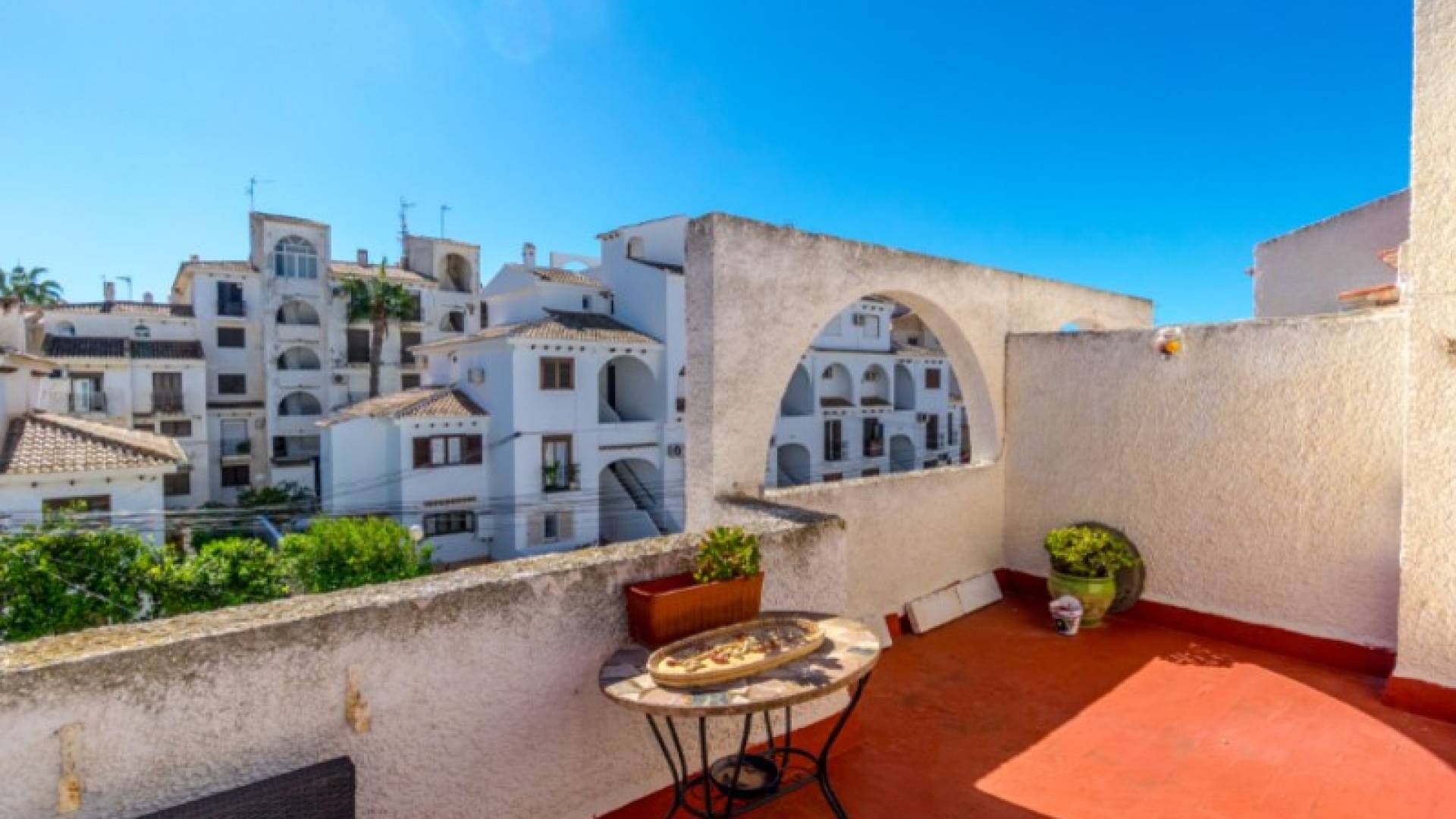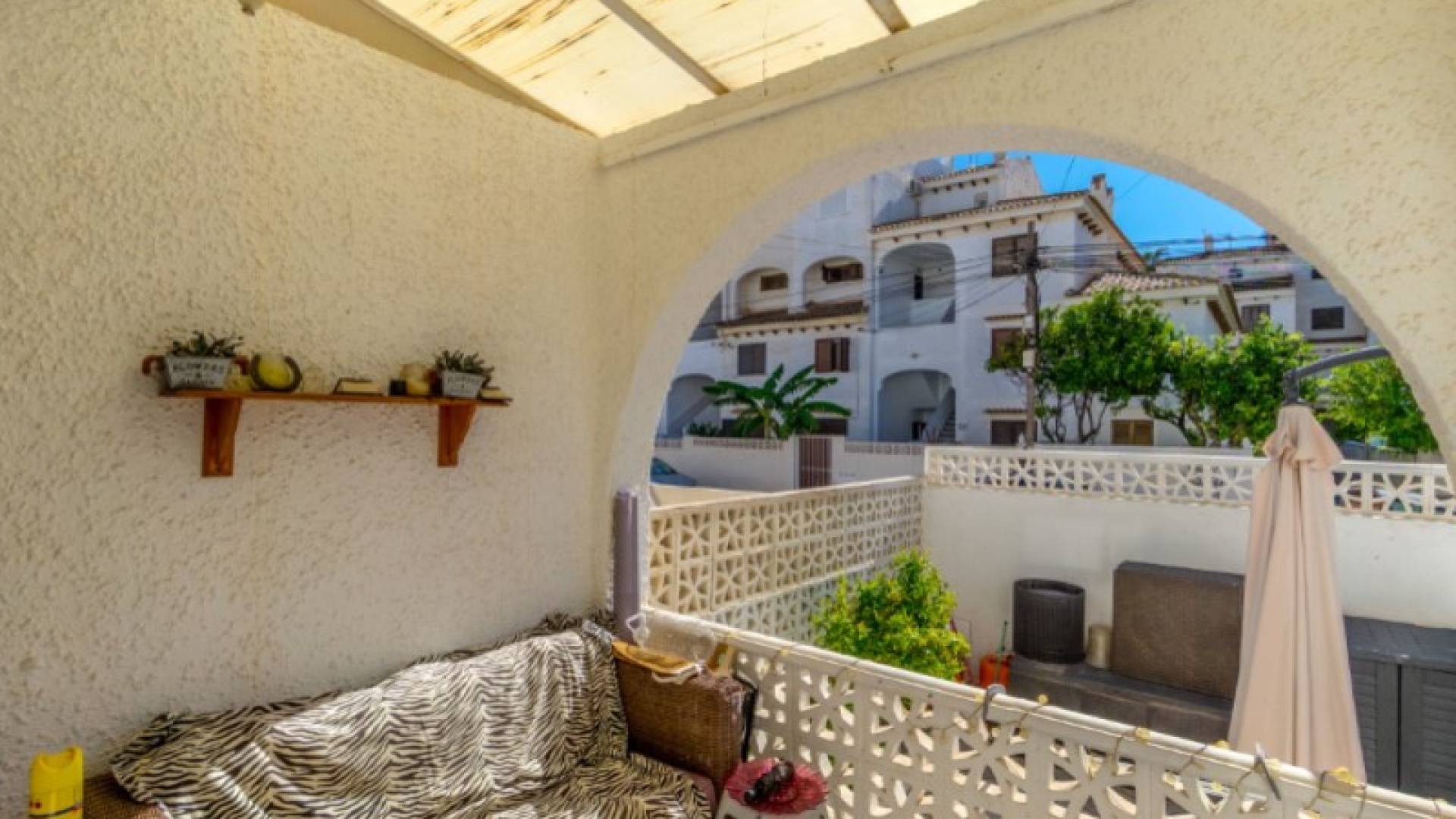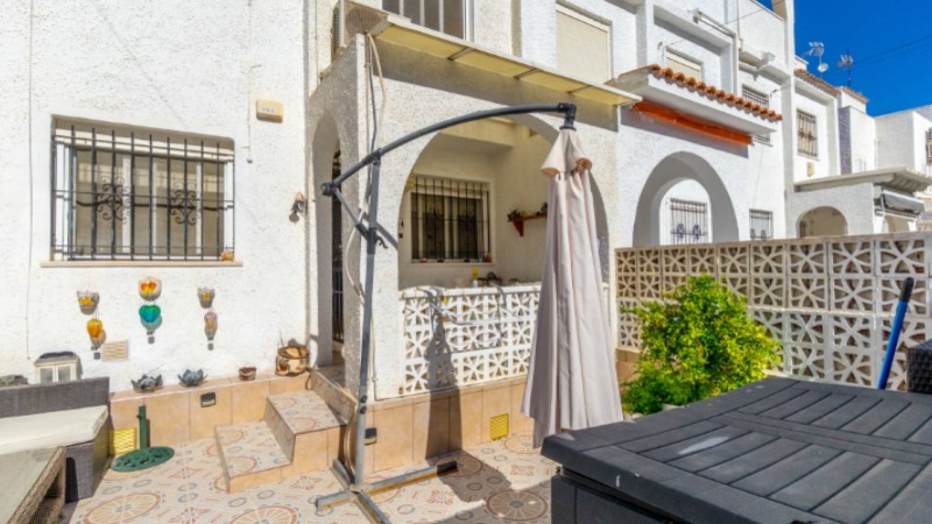 Estupenda casa adosada en la popular Calas Blancas, cerca de la playa y del centro.Bienvenido a esta encantadora casa adosada en la codiciada urbanización de Calas Blancas, una zona que combina las comodidades modernas con el verdadero estilo de vida español. Aquí vive a solo unos minutos a pie de la hermosa Playa de Los Locos, mientras que tiene el animado centro de Torrevieja al alcance de la mano, perfecto para aquellos que desean paz y proximidad a todo.Un hogar con todo lo que necesitasLa propiedad ofrece un plano de planta luminoso y abierto en la planta baja, donde la sala de estar y la cocina fluyen naturalmente juntas y crean un ambiente agradable tanto para la vida cotidiana como para las reuniones sociales.En la segunda planta encontrará dos cómodos dormitorios y un baño, ideal para familias o como casa de vacaciones. En la cima, le espera un soleado solárium, donde podrá disfrutar del sol todo el día, el lugar perfecto para relajarse, hacer una barbacoa o tomar una copa de vino al atardecer.Instalaciones y ubicaciónCalas Blancas es conocida por su entorno verde, varias piscinas comunitarias, instalaciones deportivas e incluso una iglesia ortodoxa, un barrio seguro y agradable adecuado tanto para residentes como para turistas.La propiedad se vende completamente amueblada, a excepción de las pertenencias personales, por lo que puede mudarse directamente y comenzar a disfrutar de todo lo que Torrevieja tiene para ofrecer.Información prácticaIBI: 226,19 € al añoTasa de basura: 55,93 € x 2 al añoGastos de comunidad: 180 € al añoEsta casa adosada es una visita obligada para aquellos que sueñan con una casa cerca del mar, con todas las comodidades cerca.Póngase en contacto con el agente inmobiliario hoy mismo para concertar una visita, ¡y experimente por qué Calas Blancas es una de las zonas más atractivas de Torrevieja!