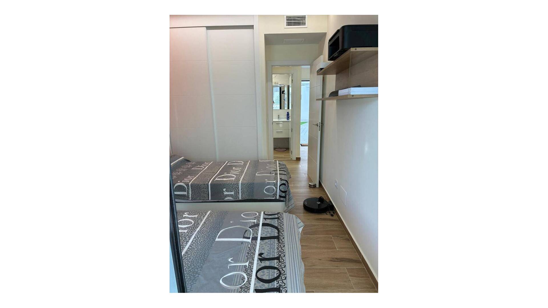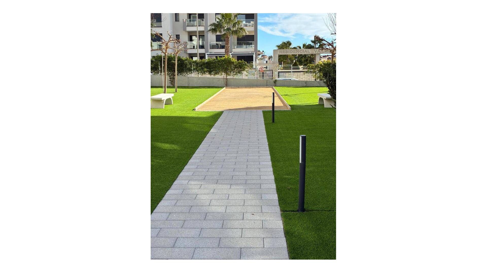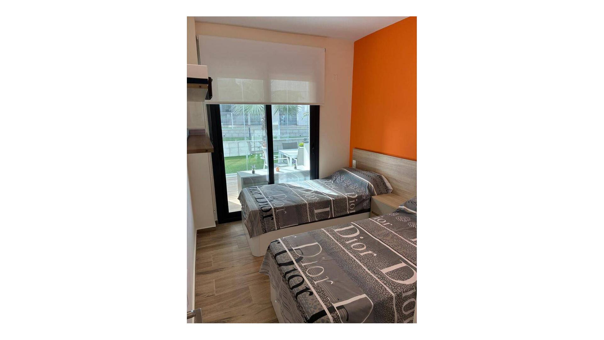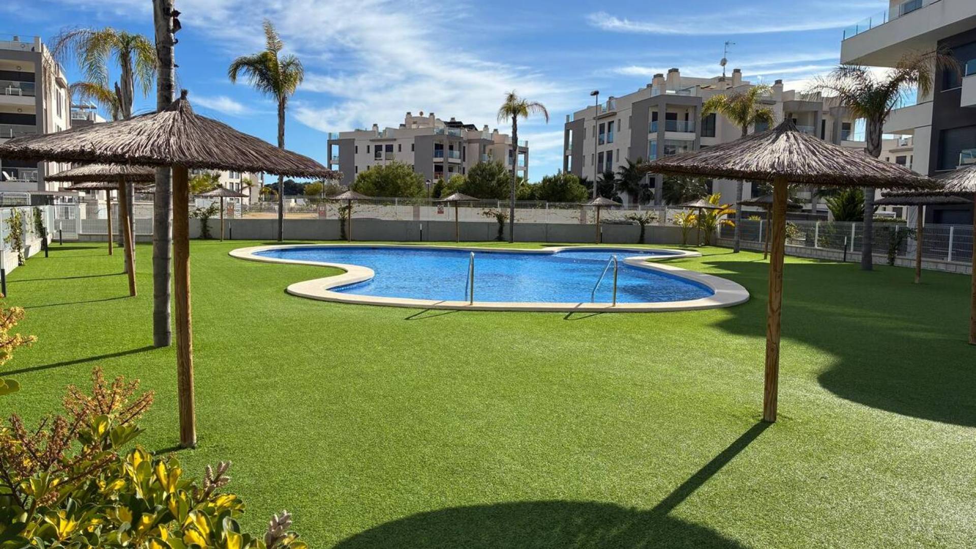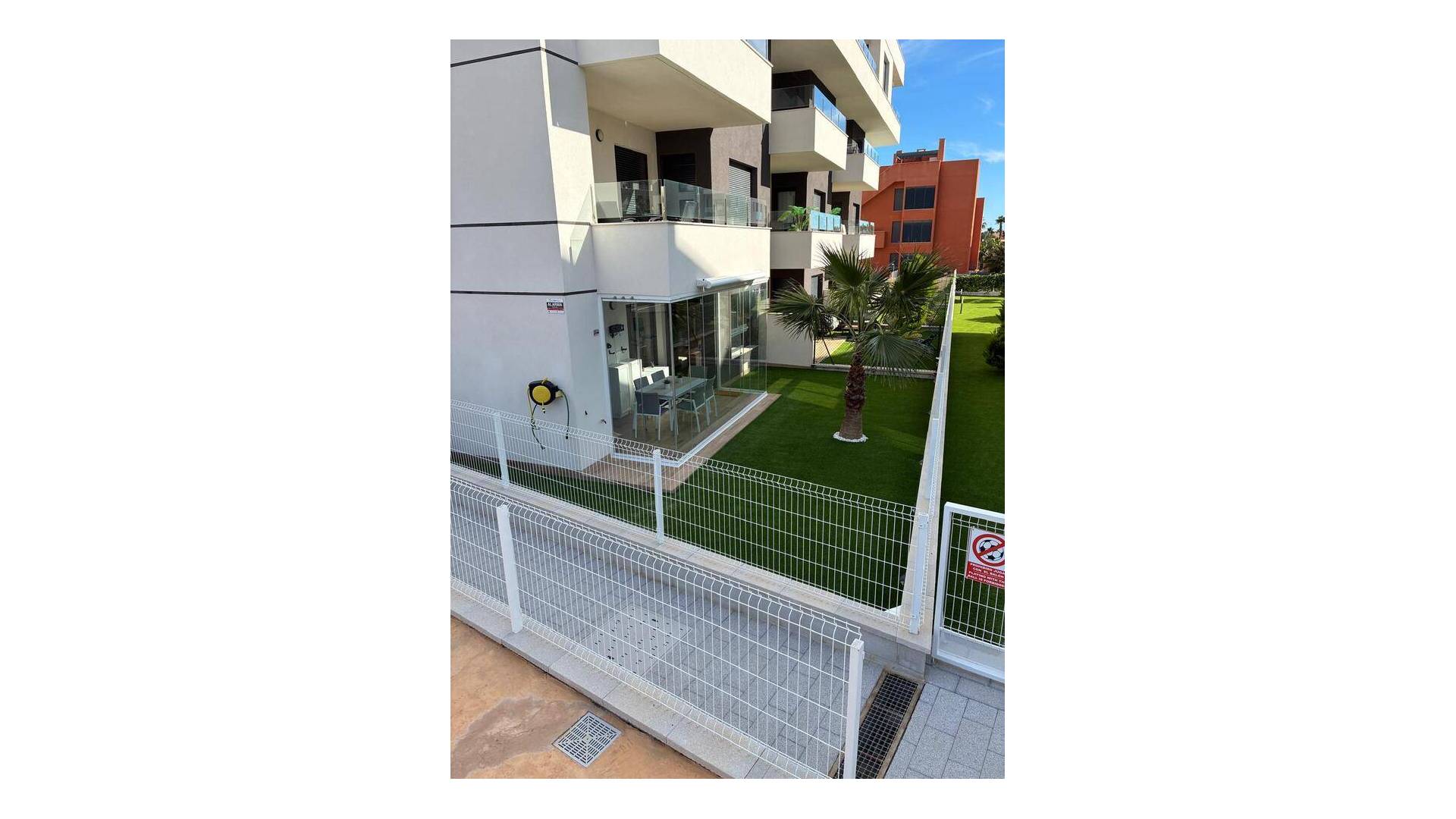 Exclusivo apartamento en planta baja en Valentino Golf III – VillamartínEste elegante apartamento en planta baja, prácticamente nuevo y entregado en 2024, se encuentra en el prestigioso residencial Valentino Golf III en Villamartín. La vivienda dispone de un jardín privado con orientación suroueste y una elegante terraza de 12 m², donde el confort y la privacidad son protagonistas y donde podrá disfrutar del estilo de vida mediterráneo al aire libre durante todo el año.El interior ofrece dos amplios dormitorios y dos baños de diseño, uno de ellos en suite. El luminoso salón se integra perfectamente con una cocina moderna totalmente equipada con zona de comedor. El apartamento cuenta con aire acondicionado central, persianas eléctricas y se vende completamente amueblado y decorado con gusto. Además, el interior ha sido pintado profesionalmente y equipado con extras exclusivos como un sistema de aire acondicionado de 7 kW, placa de inducción, lavadora de 8 kg, un avanzado sistema de alarma con cámaras y cortinas de cristal en la terraza, lo que permite disfrutar del jardín como un espacio habitable también durante los meses de invierno.Incluye una plaza de aparcamiento privada al aire libre dentro del recinto cerrado.El residencial, seguro y cuidadosamente mantenido, ofrece excelentes instalaciones, entre ellas una elegante piscina comunitaria con piscina infantil, jardines paisajísticos con palmeras, zonas chill-out, pista de petanca, gimnasio y un parque infantil.La ubicación es excelente: a poca distancia a pie de Villamartín Plaza, cerca de todos los servicios, a solo 3 km de las playas de Orihuela Costa y a 2 km del exclusivo centro comercial Zenia Boulevard.