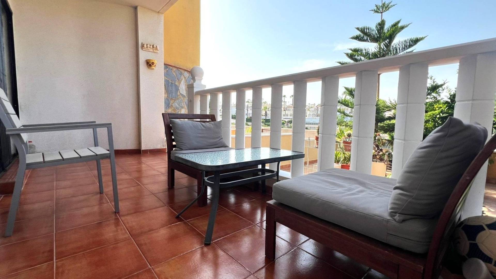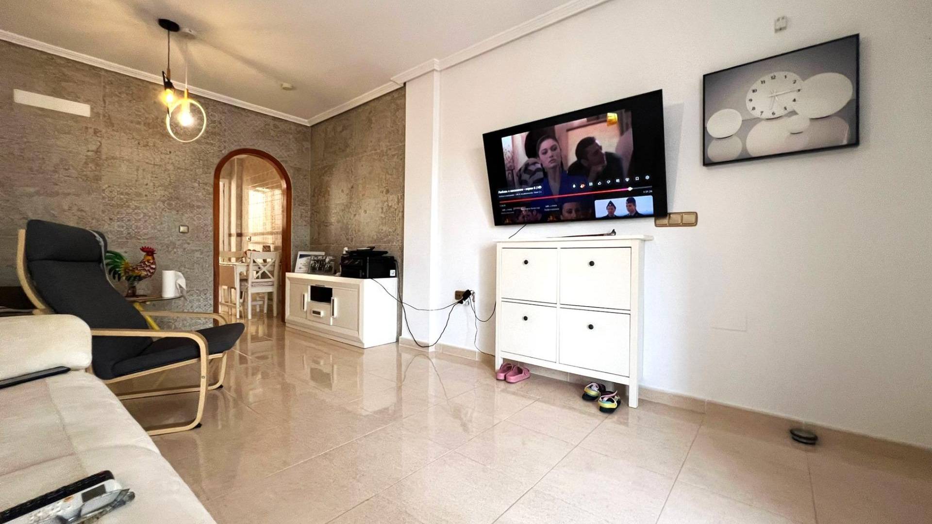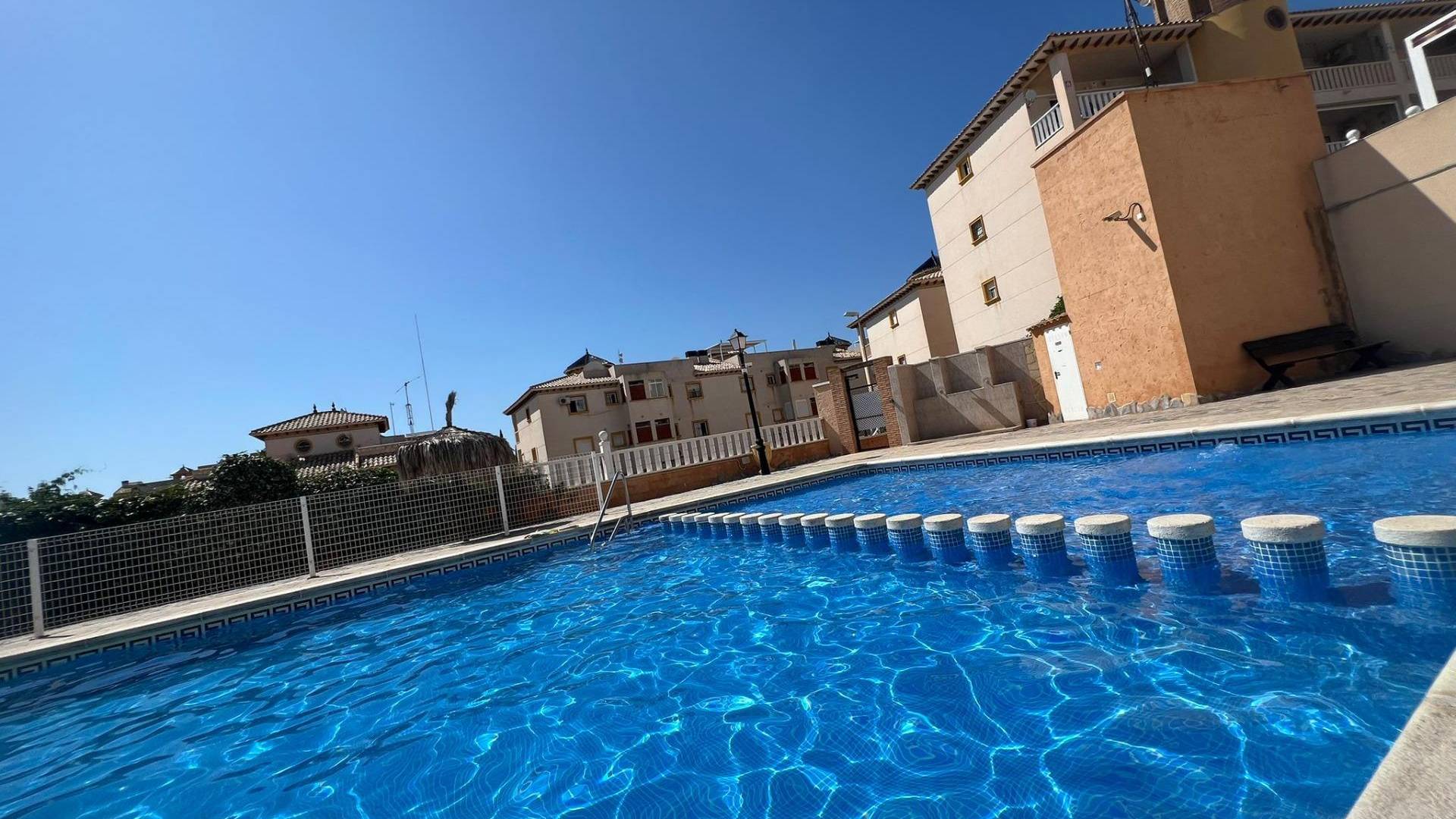 Maravilloso apartmento entreplanta de 2 dormitorios con patio, terraza y piscina en Los Dolses En una tranquila urbanización, encontramos este encantador apartamento en entreplanta que combina comodidad, espacio exterior y una reforma reciente que realza cada rincón. Al llegar, nos recibe un jardín privado de 37 m², perfecto para disfrutar del aire libre. Unos pocos escalones nos conducen a una acogedora terraza de 10 m². Desde aquí, accedemos a la vivienda, donde nos espera un luminoso y amplio salón-comedor, totalmente reformado, que invita a compartir momentos en un ambiente moderno y funcional. La propiedad cuenta con dos dormitorios espaciosos, un cuarto de baño equipado con bañera y una cocina independiente que sorprende con su acceso directo a un gran patio trasero de 50 m², un espacio versátil para disfrutar de comidas al aire libre o simplemente relajarse. A tan solo cinco minutos a pie se encuentra la piscina comunitaria, un lugar perfecto para refrescarse en los días de verano. Además, la urbanización dispone de parking comunitario, garantizando comodidad y seguridad para el vehículo. Este bungalow es una oportunidad única para quienes buscan una vivienda reformada, con amplias zonas exteriores y en un entorno tranquilo pero bien comunicado. UBICACIÓN: Los Dolses se encuentra en una exclusiva zona residencial del sur de la Costa Blanca, bellamente diseñada en torno a varios campos de golf bien establecidos, uno de los cuales es uno de los más emblemáticos de España. La urbanización cuenta con agradables plazas, centros comerciales y restaurantes donde podrá disfrutar de una amplia variedad gastronómica. La playa está a sólo 10 minutos. Cabo Roig y Playa Flamenca ofrecen playas de bandera azul, arena dorada y aguas cristalinas. El hospital más cercano es el Hospital Universitario de Torrevieja (a 4 km), y el Hospital Quirónsalud Torrevieja se encuentra a pocos minutos. La ciudad también cuenta con aeropuertos como el Aeropuerto Internacional de la Región de Murcia (a 35 km) y el Aeropuerto de Alicante (a 47 km). DISTANCIA AL MAR: 2500m COMUNIDAD: 300 € IBI: 247 € Si tiene alguna pregunta, no dude en ponerse en contacto con nosotros!