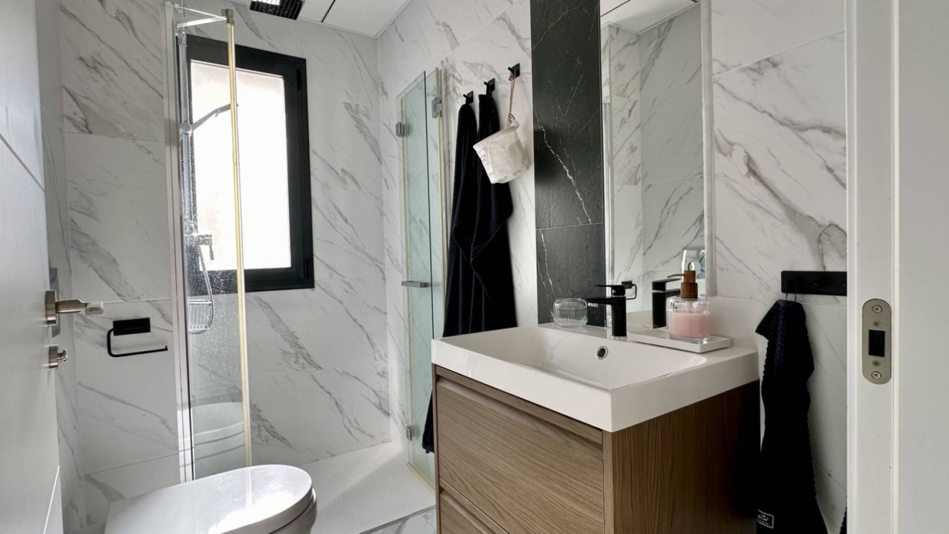 Bienvenido a la casa de tus sueños en el corazón de Lomas de Cabo Roig, una de las zonas residenciales más deseadas de Orihuela Costa. Esta elegante y bien mantenida villa independiente está lista para entrar a vivir, ofreciendo una combinación perfecta de confort, vida moderna y encanto mediterráneo. Tanto si buscas una residencia permanente, una lujosa casa de vacaciones o una inversión rentable, esta propiedad cumple con todas las expectativas. Por qué destaca esta villa: Interiores amplios y luminosos La villa se distribuye en dos niveles con 130 m² de superficie habitable. Dispone de un salón-comedor de planta abierta, una cocina contemporánea totalmente equipada y tres amplios dormitorios, dos de ellos con baño en suite. Todos los dormitorios cuentan con armarios empotrados y mucha luz natural. Vida exterior excepcional En una parcela privada de 189 m², la vivienda ofrece una piscina privada, un gran solárium con vistas abiertas y una terraza totalmente embaldosada con barbacoa, muebles de salón y zona de comedor. Perfecta para tomar el sol, recibir invitados o relajarse en familia. Orientación optimizada El patio orientado al sureste y la terraza con piscina orientada al suroeste ofrecen sol todo el día. La propiedad también incluye aire acondicionado y calefacción individual en todas las habitaciones, garantizando confort durante todo el año. Ubicación privilegiada Situada en una urbanización tranquila y consolidada, a pocos minutos en coche de las playas de Orihuela Costa. Supermercados, restaurantes, centros comerciales, campos de golf y colegios están muy cerca. Resumen de la propiedad: 3 dormitorios, 3 baños 128 m² construidos, parcela de 189 m² Piscina privada, solárium, terraza embaldosada con barbacoa Construida en 2018, en excelente estado Aire acondicionado y calefacción en toda la vivienda Zona tranquila, cerca de todos los servicios Esta villa ofrece la combinación ideal de estilo, comodidad y ubicación. Reserva tu visita privada hoy — esta oportunidad no durará mucho.