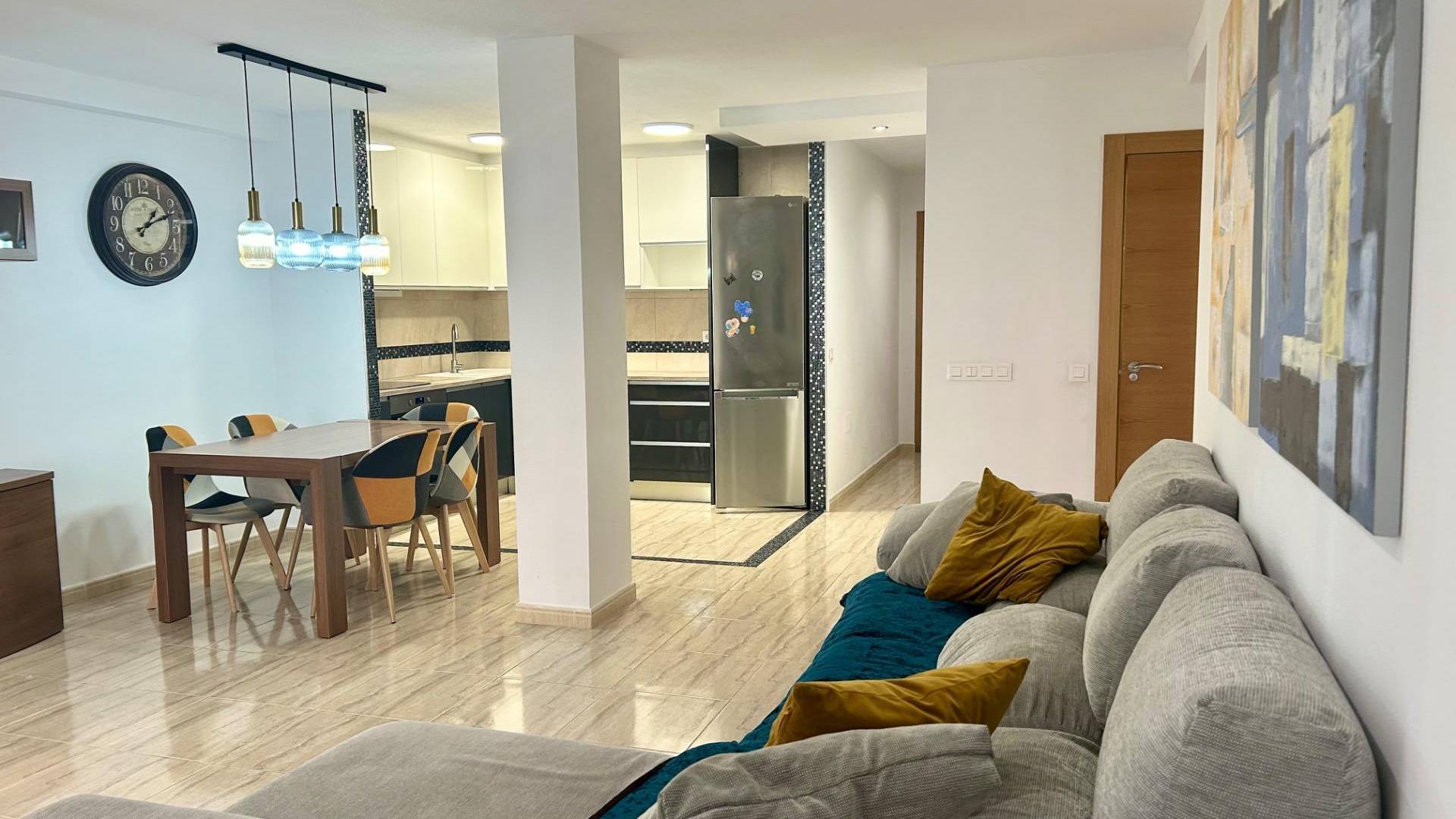 Apartamento a 250 metros de las playas del cura y de los Locos de Torrevieja con licencia turística Magnífico apartamento totalmente reformado en una ubicación inmejorable, cerca de todos las comodidades y servicios como supermercados, farmacias, bares, restaurantes, tiendas, el paseo marítimo, transporte público y las maravillosas playas más concurridas de la ciudad, todo esto a menos de 300 metros. Muy cerca también se encuentran colegios y centros de salud, a los que se puede ir a pie. El apartamento cuenta con 3 dormitorios, dos baños, almacén donde se encuentra la lavadora y calentador de agua, 3 terrazas y un amplio salón comedor con cocina americana. El apartamento se vende totalmente amueblado y equipado, listo para entrar a vivir o alquilar, ya que cuenta con licencia turística y está en la zona más demandada por turistas en la ciudad. No lo dudé y contáctenos para una visita u obtener más información