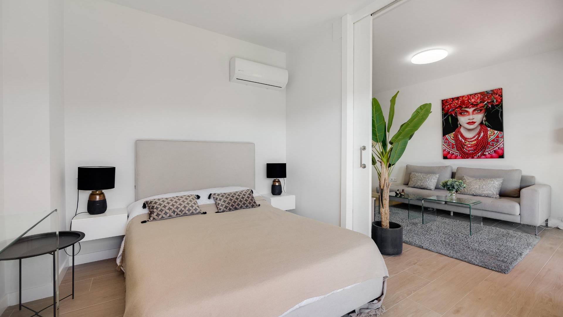 Presentamos esta magnífica propiedad situada en planta baja, ideal tanto como residencia habitual como inversión para alquiler vacacional. El apartamento cuenta con una superficie construida de 106 m² y ofrece un diseño funcional y confortable, distribuido en dos amplios dormitorios y dos baños completos. La vivienda destaca por sus espacios exteriores: dispone de dos terrazas, un luminoso patio interior y un espectacular jardín privado de 79 m², perfecto para disfrutar de momentos al aire libre con privacidad y tranquilidad. Entre sus características, incluye aire acondicionado y calefacción, lo que garantiza el máximo confort durante todo el año. Se entrega completamente amueblado, con una decoración actual y lista para entrar a vivir. La propiedad forma parte de un complejo residencial con ascensor, piscina comunitaria y zonas ajardinadas comunes. Además, cuenta con una plaza de parking subterránea incluida en el precio, lo que aporta un valor añadido y una gran comodidad. En resumen, una vivienda muy completa, bien equipada y ubicada en una zona residencial que combina tranquilidad y buenas conexiones. Ideal para quienes buscan calidad de vida y espacios al aire libre sin renunciar a los servicios modernos.