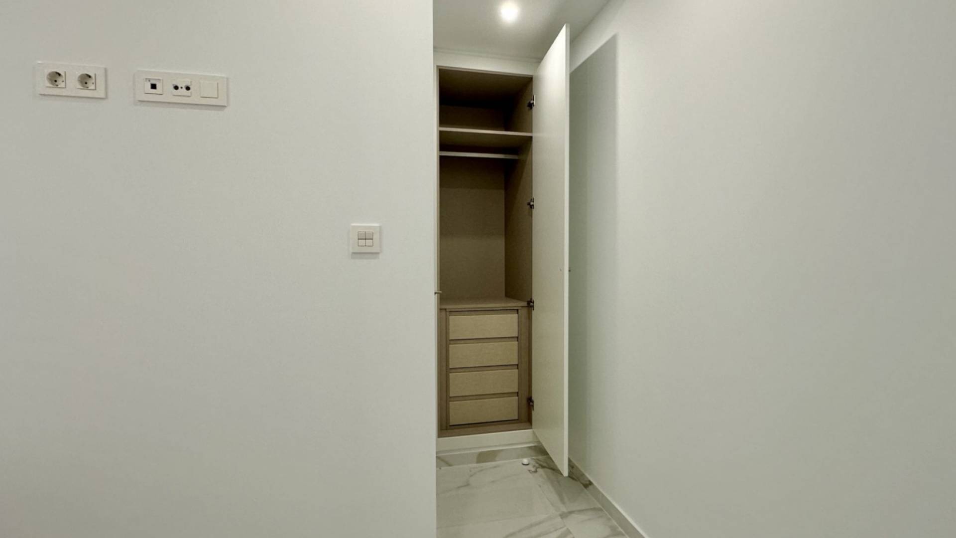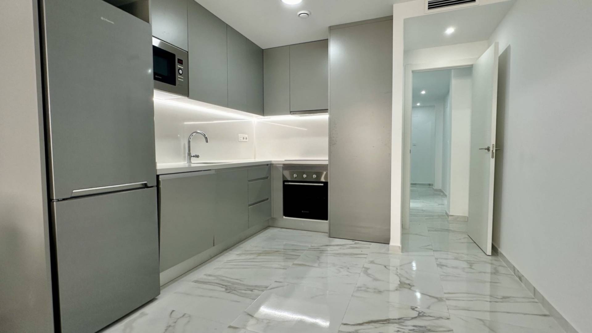 Este moderno e impecable apartamento se encuentra en pleno centro de Torrevieja, a solo 800 metros de la playa. Ubicado en la tercera planta de un edificio reciente, ofrece un ambiente luminoso y cómodo con dos dormitorios dobles, un baño completo y una distribución ideal tanto para vivienda habitual como para uso vacacional. La vivienda dispone de una terraza de 5 m² orientada al oeste, que proporciona luz natural durante las tardes. El interior cuenta con carpintería maciza, cocina totalmente equipada y un estilo contemporáneo listo para entrar a vivir. Entre sus comodidades destacan el aire acondicionado central, ascensor moderno, acceso PMR y una relajante sauna comunitaria. El edificio también ofrece un espectacular solárium comunitario equipado con zona de barbacoa y vistas al mar, un espacio perfecto para disfrutar del estilo de vida mediterráneo. Situado en una ubicación inmejorable, rodeado de supermercados, centros médicos, colegios, tiendas, restaurantes y zonas verdes, este apartamento combina confort y proximidad a todos los servicios.