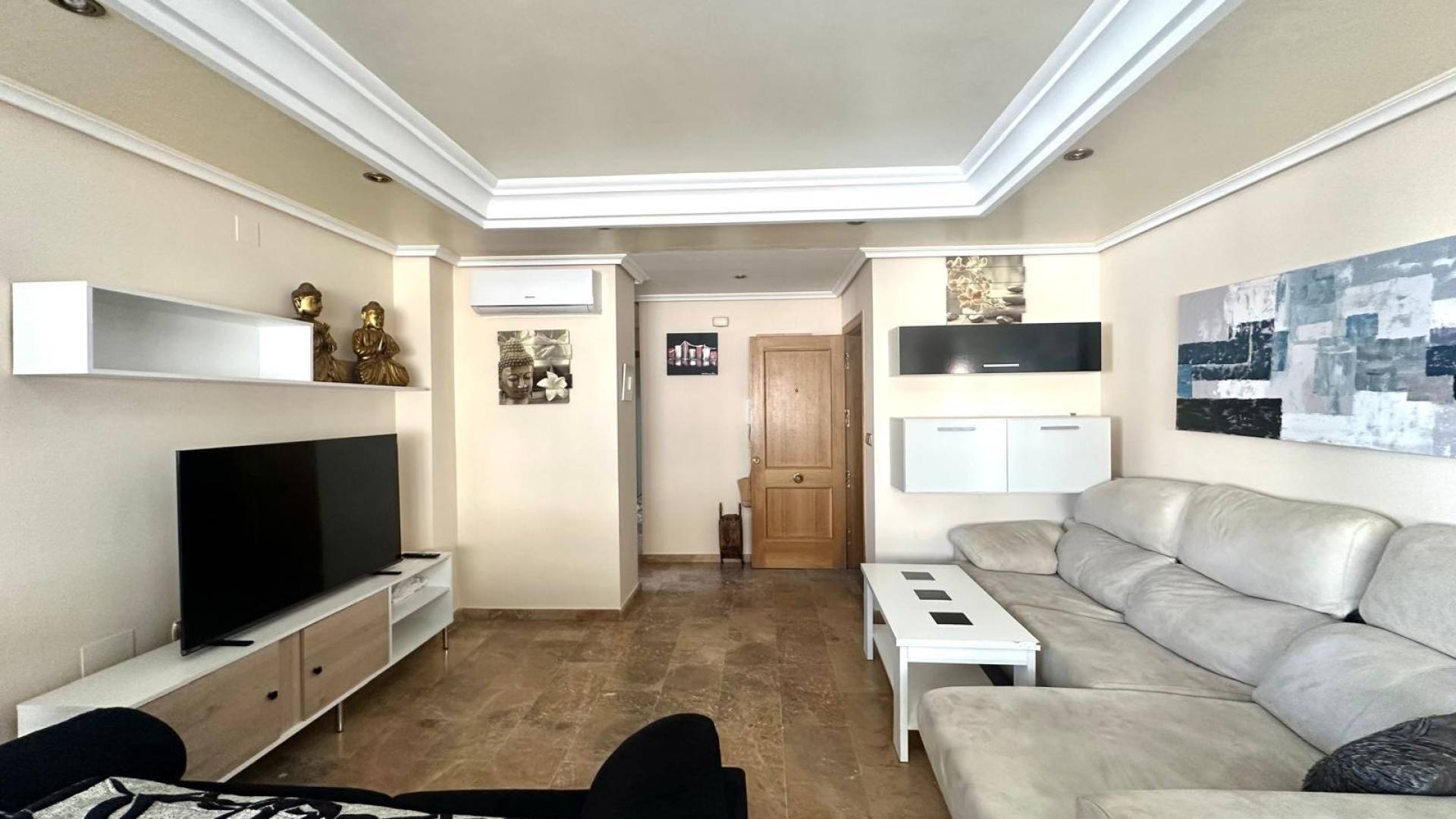Amplio Apartamento en San Julián – 3ª Planta con Terraza y a 450 m del Puerto de Torrevieja Presentamos esta magnífica vivienda situada en la tercera planta de un edificio en una de las zonas más prácticas y bien comunicadas de Torrevieja. A tan solo 450 metros del puerto y del paseo marítimo, este apartamento combina amplitud, ubicación y comodidad. Características principales: 101 m² construidos, bien aprovechados y con excelente distribución. 4 habitaciones, perfectas para familias numerosas, despacho, invitados o como opción para alquiler vacacional. Salón comedor amplio, con buena entrada de luz natural, ideal para momentos de descanso y convivencia. Cocina independiente, práctica y con espacio para almacenamiento. 2 cuartos de baño, uno de ellos integrado en el dormitorio principal, convirtiéndolo en una suite para mayor privacidad y confort. Salida a terraza, un espacio exterior muy valorado donde podrás disfrutar del clima mediterráneo. Ubicación excelente, a pocos pasos del puerto, del centro de Torrevieja, supermercados, colegios, centros médicos, comercios y transporte público. Una oportunidad ideal para vivir todo el año, disfrutar de estancias vacacionales o como inversión por su cercanía al mar y gran tamaño. Contáctanos sin compromiso para más información o concertar una visita. ¡No dejes pasar esta oportunidad!