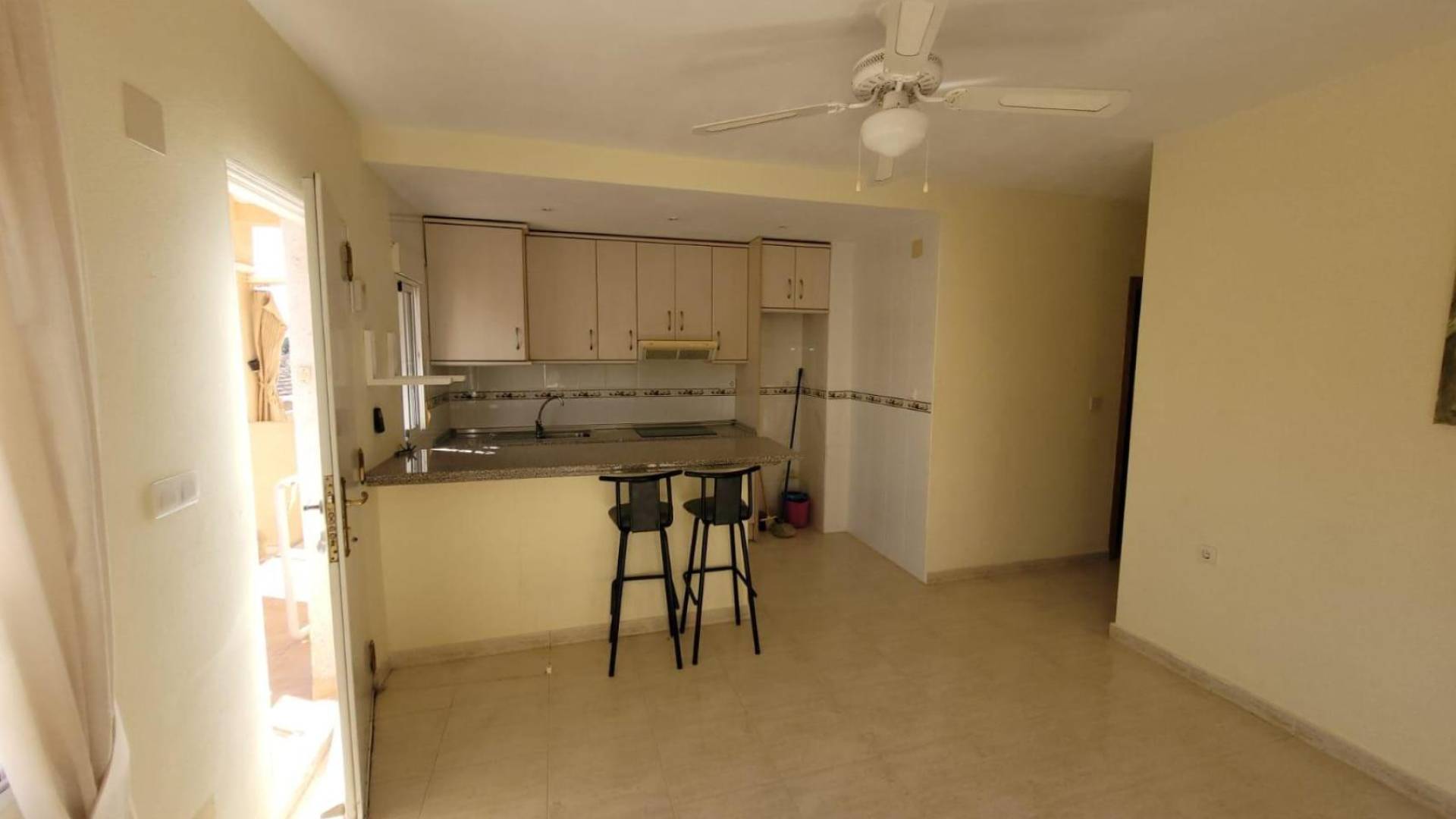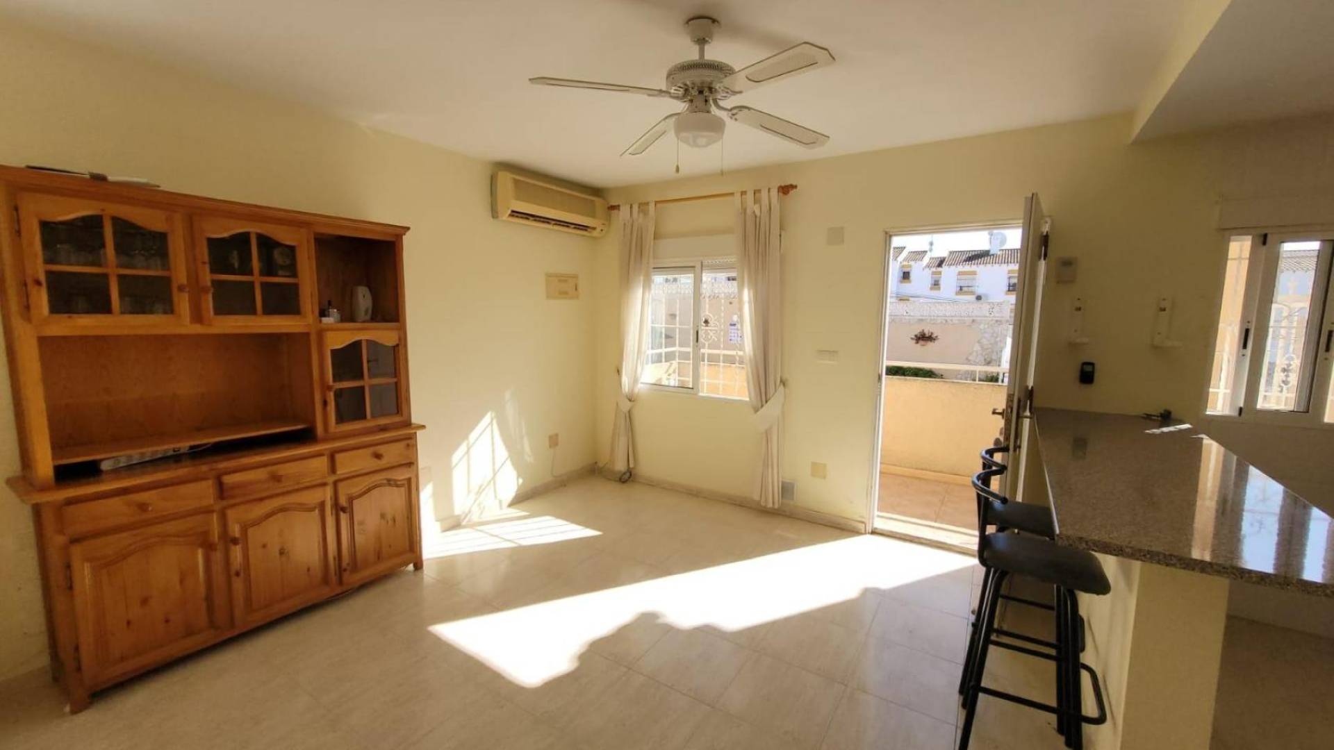 Bungaló en Venta en San Miguel de Salinas - El Galán - Residencial Galán GolfSe vende bungaló en planta alta, orientado al sureste, ubicado en la zona residencial Galán Golf de San Miguel de Salinas. La vivienda cuenta con las siguientes características:Dos dormitorios bien distribuidos.Un baño completo con bañera.Salón-comedor amplio, equipado con aire acondicionado y ventilador de techo.Cocina americana integrada en el salón.El complejo residencial ofrece piscina comunitaria, zona de barbacoa y un área con tumbonas para tomar el sol.La propiedad se vende tal y como se muestra en las fotos, lista para entrar a vivir. Su ubicación es ideal, a solo 1.000 metros de los servicios básicos, 5 km de la playa y 45 km del aeropuerto.Perfecto como residencia permanente o segunda vivienda para disfrutar del clima y la tranquilidad de la zona.Interesados, contactar para más información o visitas.