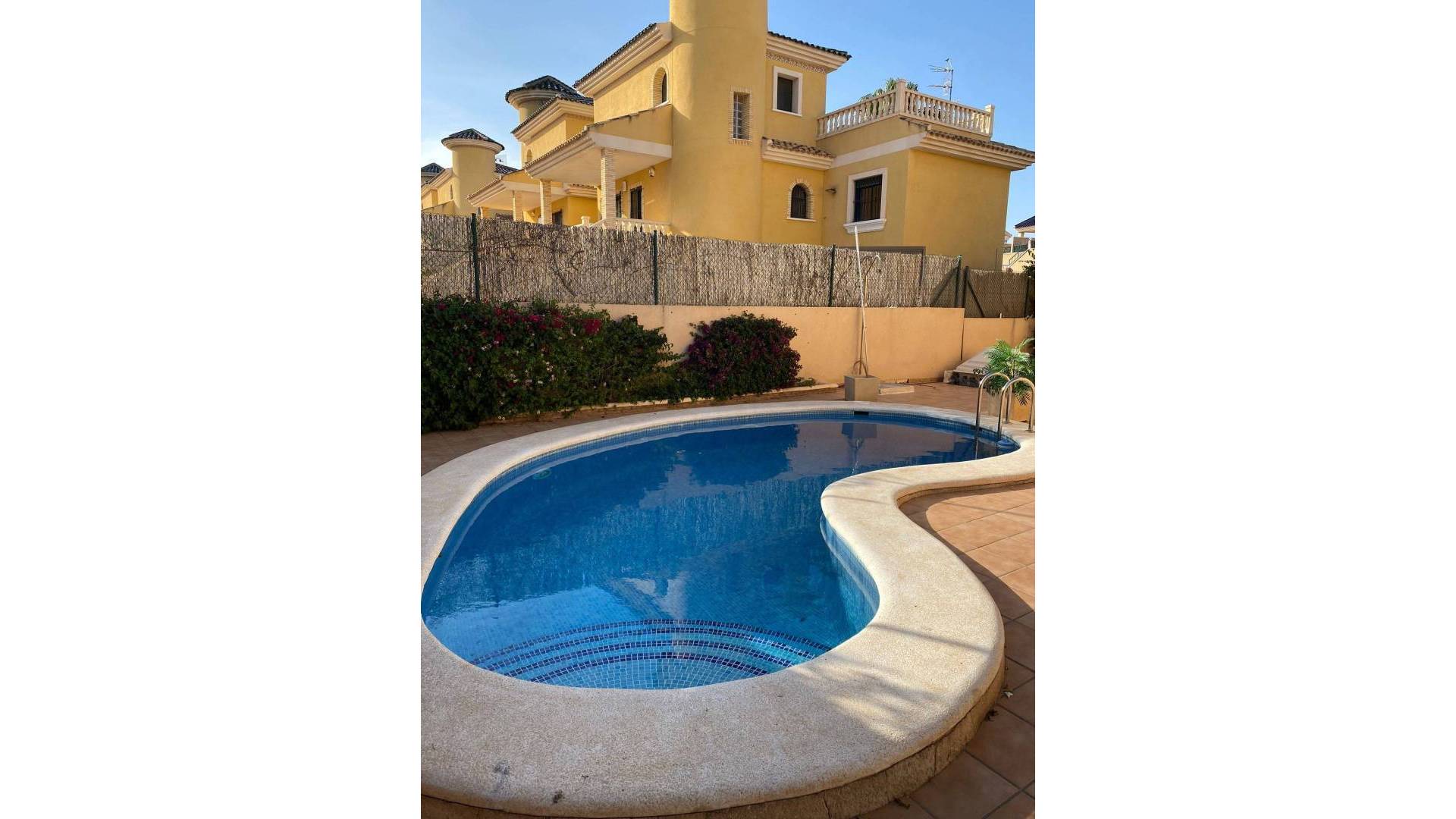 Descubre este magnífico chalet en Orihuela Costa, ubicado en la tranquila zona de Villamartín-Las Filipinas. Con 195 m² de superficie construida y una parcela de 360 m², esta vivienda ofrece todo el espacio y comodidad que necesitas. ✨ Características principales: ✔ 3 habitaciones dobles – Espacios amplios y luminosos. ✔ 2 baños completos – Incluye baño en suite. ✔ Cocina equipada – Con despensa y lavandería. ✔ Salón acogedor – Suelos de gres y parquet, carpintería de madera y grandes ventanales. ✔ Orientación sur – Mucha luz natural durante todo el día. ???? Extras que marcan la diferencia: ✅ Piscina privada – Relájate en tu propio oasis. ✅ Solárium y terraza – Perfecto para disfrutar del sol. ✅ Jardín y barbacoa – Espacio ideal para reuniones al aire libre. ✅ Armarios empotrados – Más almacenamiento y orden. ✅ Puerta blindada y sistema de vigilancia 24h – Seguridad y tranquilidad. ✅ Parking incluido – Para mayor comodidad. ???? Ubicación inmejorable: Situado en una zona céntrica con acceso a todos los servicios: ???? Centros comerciales | ???? Centros médicos | ???? Colegios | ???? Golf | ???? Costa | ???? Parques | ???? Supermercados ???? Gastos de comunidad: 400 €/año. Si buscas un hogar listo para entrar a vivir, en una ubicación privilegiada y con todas las comodidades, ¡este chalet es para ti! ????✨ ???? Contáctanos para más información o para concertar una visita.