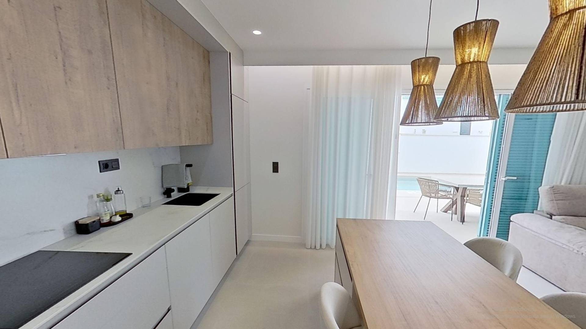 Descubre este espectacular y moderno bungalow en planta baja, ubicado en una de las mejores zonas de El Pilar de la Horadada, ¡a tan solo 400 metros de la playa! Un auténtico lujo para disfrutar del Mediterráneo a pocos pasos de casa. La vivienda ofrece una distribución funcional y luminosa: cuenta con 3 dormitorios (uno doble y dos individuales), 2 baños completos con plato de ducha, y un amplio salón-comedor con cocina americana, abierta e integrada para mayor comodidad y estilo. En el exterior, dispone de una amplia terraza con jardín privado, perfecta para relajarse, disfrutar de la zona chill out o darse un chapuzón en la piscina privada. Además, en la entrada encontrarás una segunda terraza ajardinada, ideal como rincón de bienvenida o para disfrutar del desayuno al aire libre. La propiedad incluye también plaza de garaje, un valor añadido para mayor confort y seguridad. Situada cerca de todos los servicios necesarios (supermercados, restaurantes, farmacias, etc.), esta vivienda es perfecta tanto como residencia habitual, vacacional o como inversión.