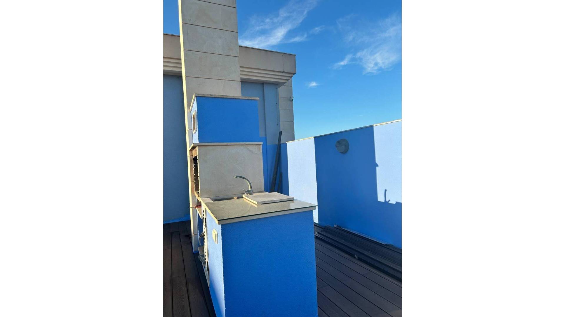 Felices de presentarles este fantástico ático situado en Torreblanca, Torrevieja, a menos de 500 metros del mar. La propiedad consta de 2 dormitorios dobles, 1 baño, amplio salón comedor con acceso a una gran terraza, cocina americana totalmente amueblada y equipada. En la planta de arriba, encontramos un gran solárium con cocina de verano y barbacoa. Esta zona nos ofrece unas maravillosas vistas al mar. Torreblanca es una urbanización en la zona norte de Torrevieja, situada entre Aguas Nuevas y La Mata. Es una de las áreas más populares para quienes buscan viviendas de segunda mano cerca del mar, con buenas conexiones y un ambiente tranquilo. Contacte para más información.