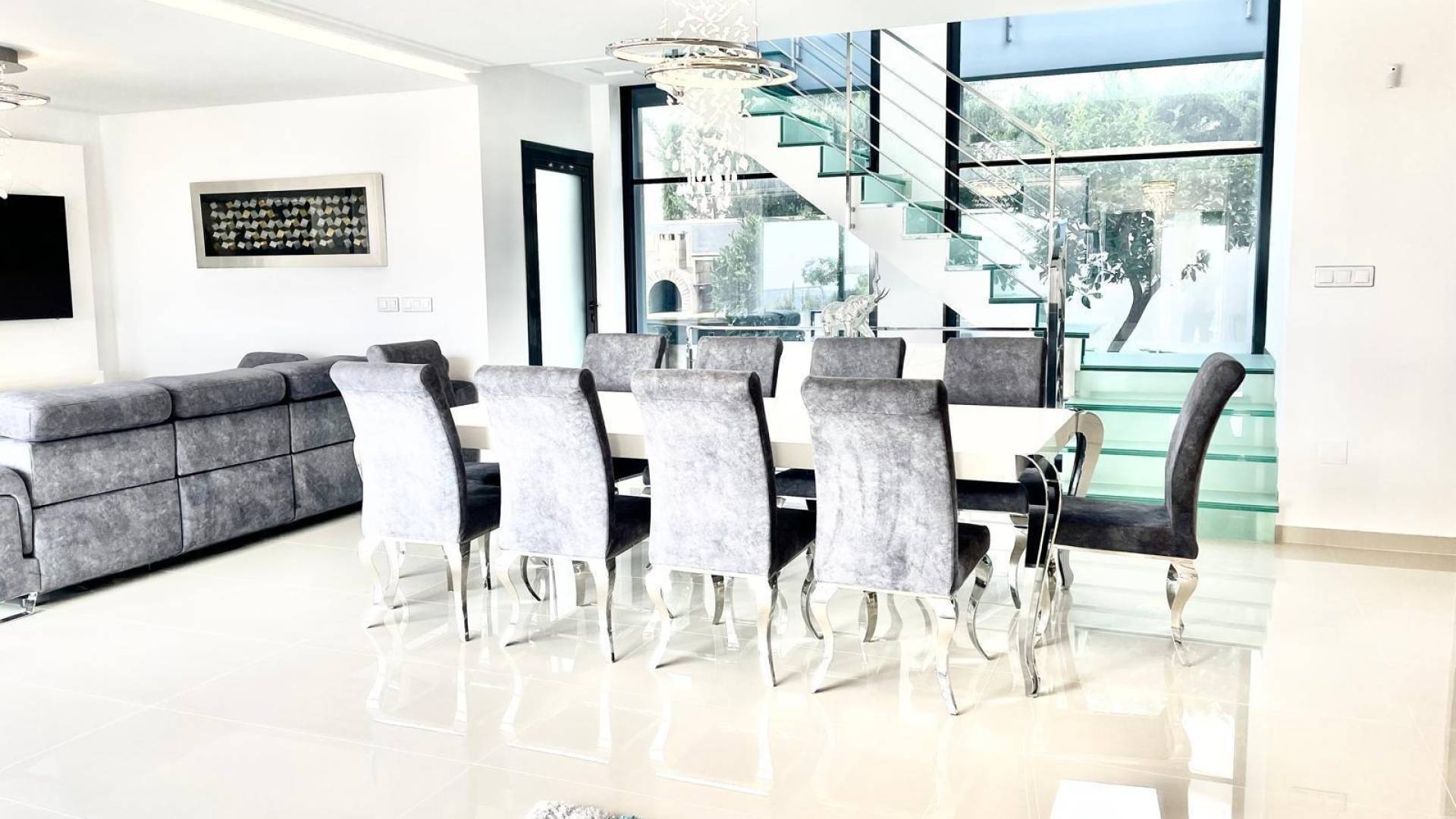 Increíble villa de ensueño en la demandada localidad de San Miguel de Salinas, situada en la parte alta, nos brinda unas increíbles vistas al mar. A menos de 3 minutos en coche de la población. Esta villa de moderna construcción, consta de 5 dormitorios y 4 baños, distribuidos en dos plantas y sótano, con un práctico ascensor que comunica todas las plantas de la casa, junto con una imponente escalera de cristal iluminada. Gran salón-comedor con cocina abierta e isla central, habitación principal con baño en suite. En el sótano encontramos un gran salón de juegos, sala de celebraciones y sala de cine. Dos grandes terrazas con impresionantes vistas panorámicas y un jardín con piscina privada, cascada y jacuzzi. Dispone de aire acondicionado, parking privado para varios vehículos, calefacción por suelo radiante en toda la villa. Se vende completamente amueblada y equipada, lista para entrar a vivir. Esta es sin duda, la casa de mis sueños... ¿Es también la tuya? Contacte para más información.