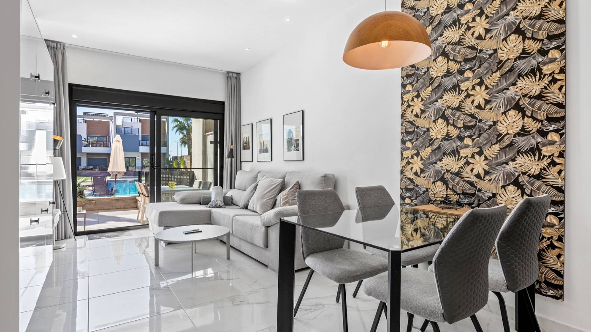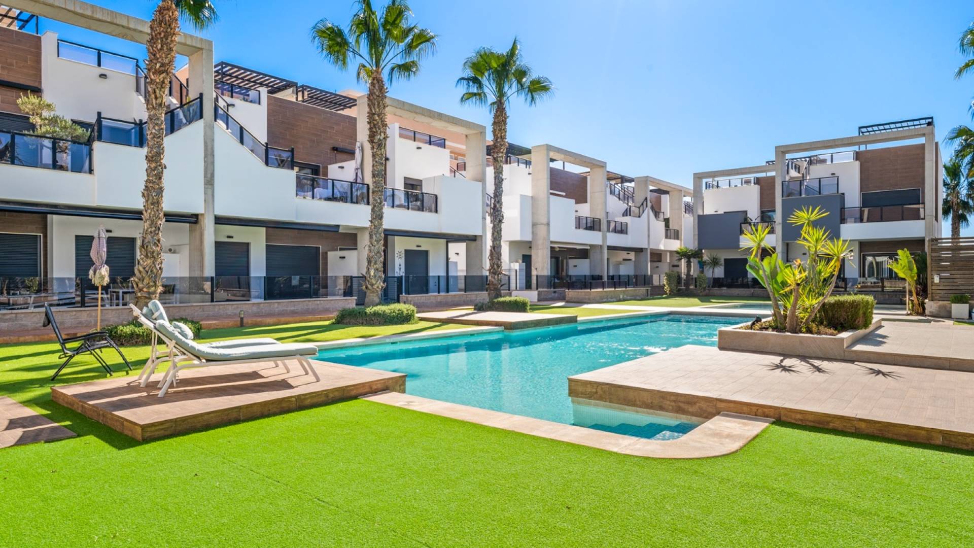 Apartamento en planta baja en El Raso, Guardamar del Segura Este precioso apartamento en planta baja con orientación sur se encuentra en un moderno complejo residencial en El Raso , Guardamar del Segura. La propiedad cuenta con dos dormitorios , dos baños y un amplio salón-comedor con cocina integrada, que da a una hermosa terraza orientada al sur con vistas a la piscina. El complejo residencial está diseñado pensando en la comodidad y la relajación , ofreciendo servicios como piscina , estacionamiento subterráneo y áreas verdes . La zona es tranquila y está rodeada de naturaleza, a poca distancia de un centro comercial , bares y restaurantes . Vivir en Guardamar del Segura El Raso forma parte de Guardamar del Segura , un encantador pueblo costero conocido por su belleza natural y amplia oferta de servicios . Ubicado en la Costa Blanca Sur , Guardamar ofrece más de once kilómetros de playas naturales , rodeadas de un extenso pinar . El pueblo cuenta con un puerto deportivo con actividades durante todo el año, un polideportivo con pistas de pádel y tenis, campos de fútbol y una piscina climatizada . También encontrará una moderna biblioteca con wifi gratuito y ordenadores, ideal para quienes buscan combinar relax y comodidad. Excelente accesibilidad Gracias a su ubicación estratégica, a tan solo 20 kilómetros del Aeropuerto de Alicante-Elche (El Altet), Guardamar es fácilmente accesible. El aeropuerto ofrece conexiones diarias con numerosas ciudades europeas, lo que la convierte en una ubicación especialmente atractiva para compradores y turistas internacionales .