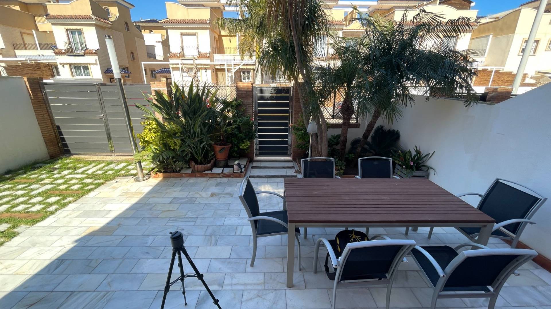 ¿Quieres mudarte sin reformas y empezar a disfrutar desde el primer día? Este pareado totalmente mejorado es ideal para familias que buscan comodidad, luz natural y un agradable espacio exterior privado para todo el año. Distribuido en tres plantas: En la planta baja encontrarás un amplio salón-comedor con salida directa al jardín, cocina moderna completamente equipada con electrodomésticos de primeras marcas, baño reformado con ducha, zona de lavandería y un dormitorio. Además, dispone de trastero independiente. En la primera planta cuenta con tres dormitorios luminosos, todos con armarios empotrados vestidos y aire acondicionado, y un segundo baño completo reformado. En la planta superior, un fantástico solárium privado con pérgola, perfecto para relajarte o disfrutar en compañía. Destaca por sus múltiples mejoras: suelos nuevos, cocina y baños reformados, carpintería PVC con climalit, cinco equipos de aire acondicionado, puertas de seguridad, nuevas barandillas, aparcamiento privado y jardín acondicionado con iluminación, mobiliario exterior y barbacoa. Se vende completamente amueblada y equipada, tal y como se muestra en las fotos. Lista para entrar a vivir. Sin reformas. Sin esperas. Solo disfrutar.