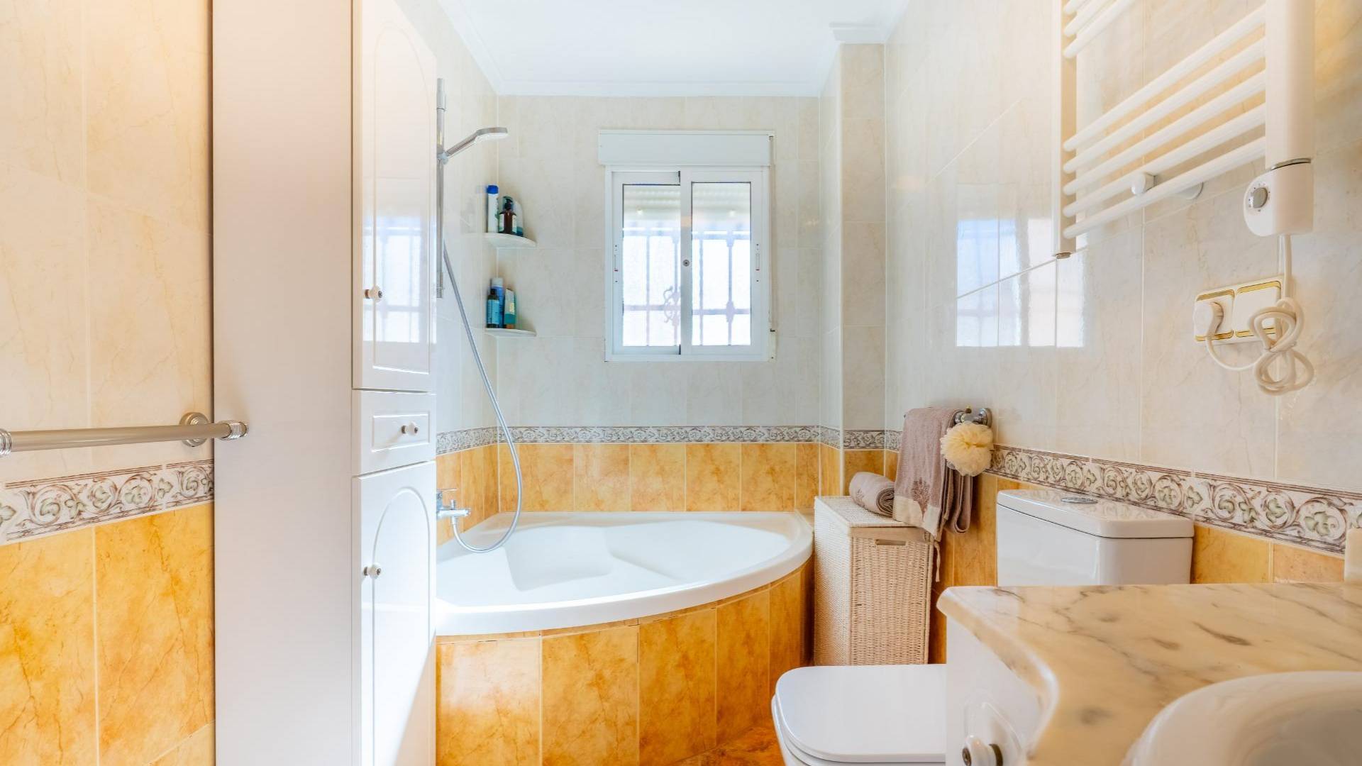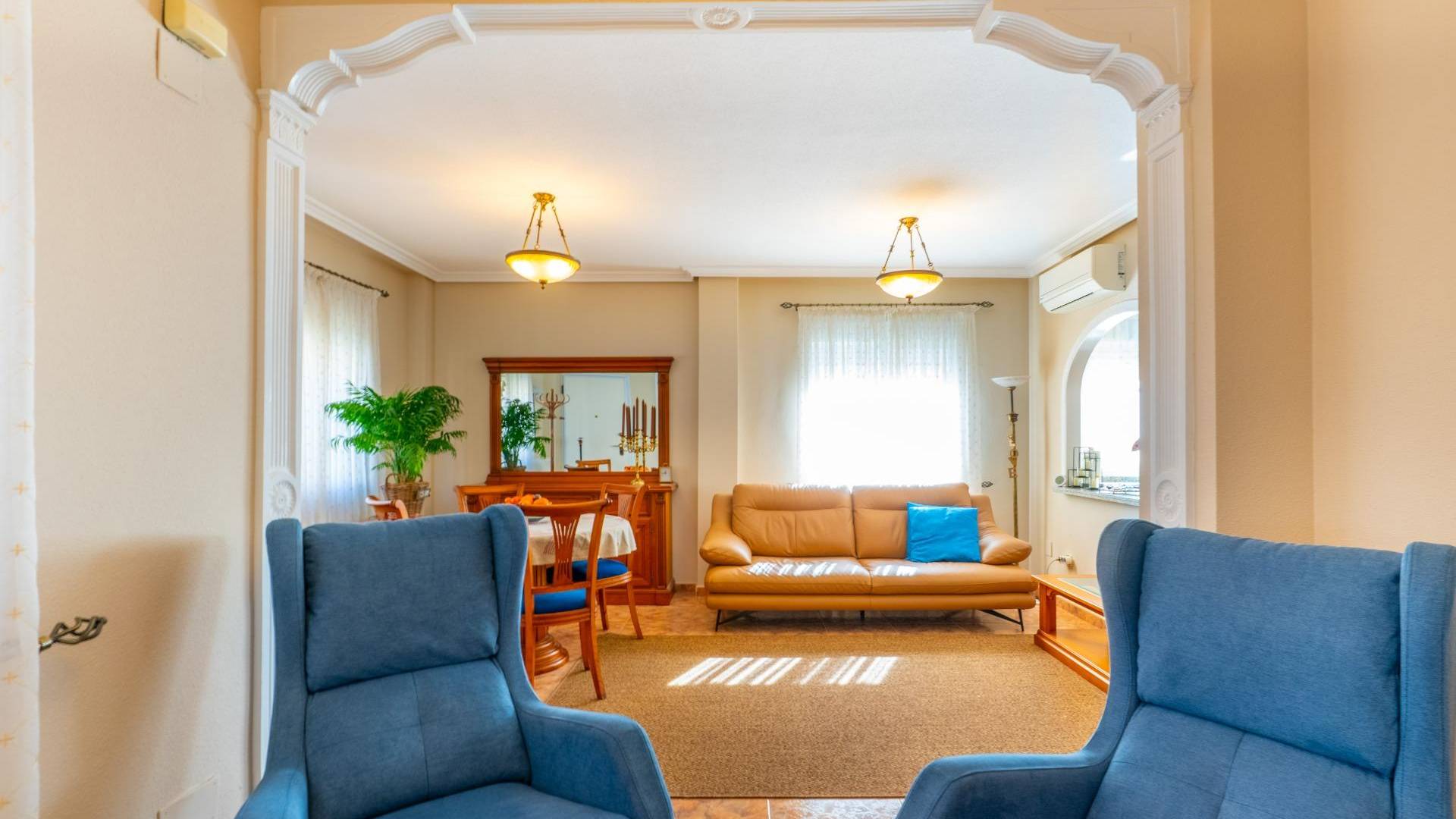Os invitamos a visitar esta encantadora Casa dúplex en el Residencial Vista Azul, en Orihuela Costa, una de las zonas más demandadas de la Costa Blanca. Ubicada en un entorno residencial muy valorado, permite disfrutar del clima mediterráneo con tranquilidad y un estilo de vida activo y saludable. La vivienda ofrece una distribución cómoda en dos plantas más solárium. Cuenta con un amplio y luminoso salón amueblado con chimenea, cocina moderna de concepto abierto totalmente equipada, 2 dormitorios y 2 baños completos. Dispone además de una luminosa terraza con zona de descanso y un jardín cuidado con espacio de descanso y aparcamiento dentro de la parcela. Incluye trastero privado. Una cosa por destacar de esta villa son sus placas solares. Se encuentra en Residencial Vista Azul y dispone de piscina comunitaria y zonas ajardinadas. Se encuentra a aproximadamente 1km del mar y a 1700m del Centro Comercial La Zenia Boulevard, con todos los servicios esenciales cercanos: supermercados, restaurantes, tiendas y farmacias. Una ubicación ideal por su tranquilidad, buenas playas y excelente clima, perfecta tanto como residencia habitual como inversión.