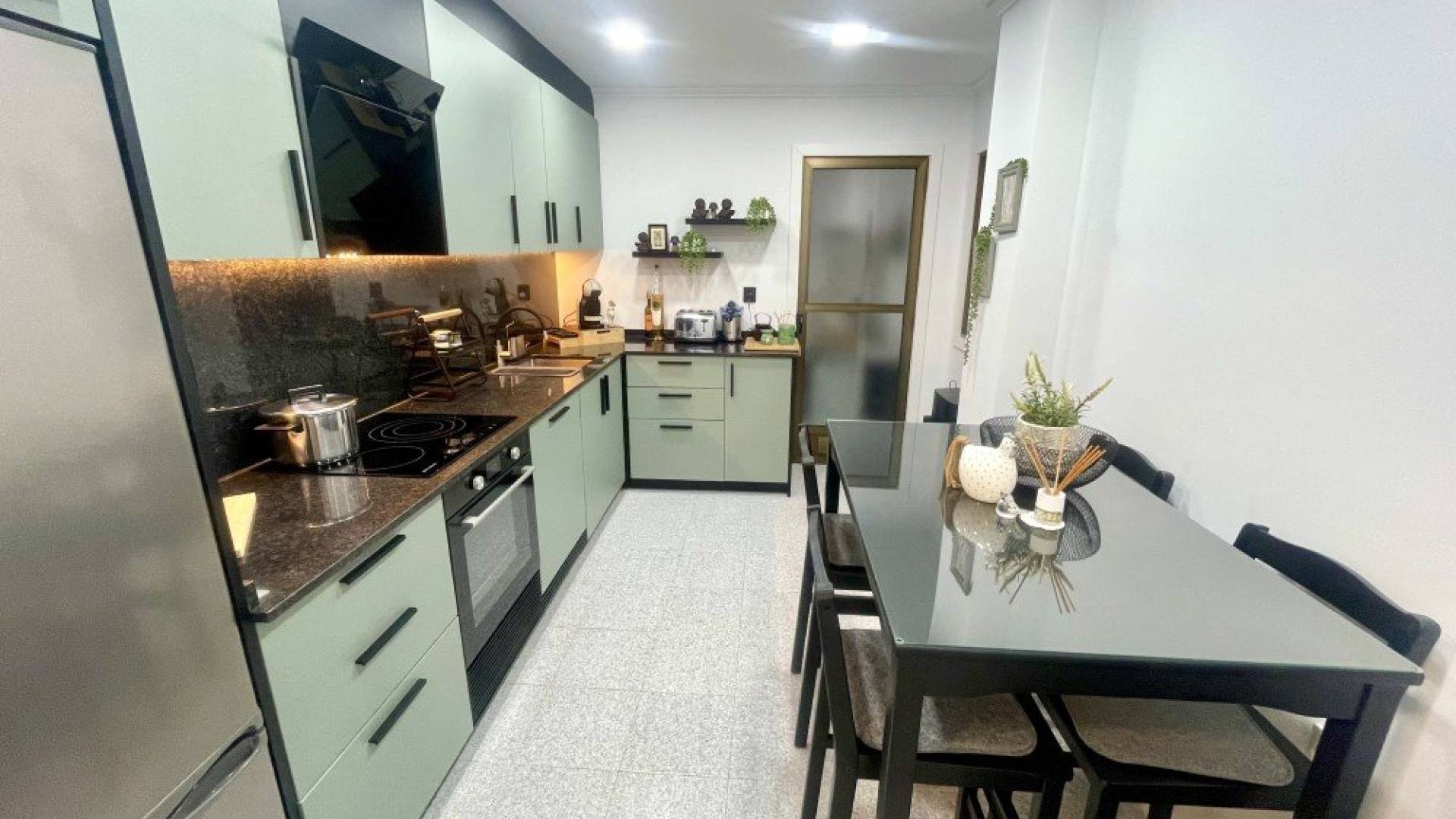 wp:paragraph We are delighted to present this beautifully refurbished ground-floor apartment located in Torremendo, Orihuela, a charming and peaceful village with local shops and few minutes walking from the Public Pool. The property is situated on the ground floor, with no need for a lift, and has been fully renovated, ready to move into. It offers bright and spacious living areas, including a large and luminous living room, a dedicated dining area with a generous table and chairs, and a large window providing access to a balcony, perfect for enjoying daily meals. The separate kitchen is brand new and fully equipped, and benefits from a spacious utility/laundry room, ideal for storage as well as household tasks. The apartment features two large bedrooms, both with built-in wardrobes, a modern fully fitted bathroom, and an additional room currently used as an office, which can easily be adapted to other uses. There is also a large walk-in dressing room with a big window leading to a lovely terrace, ideal for outdoor dining with friends and family while enjoying the tranquillity of the area. From this space, there is access to a large independent studio, offering a wide range of possibilities: a gym, professional workspace (beauty salon, yoga studio, hairdresser, etc.), or it could be renovated and converted into a separate guest accommodation. All rooms are equipped with ceiling fans and electric radiators. The living room and master bedroom have air conditioning, while the bathroom and office are fitted with heaters. The property is sold furnished, excluding personal belongings and some appliances such as the washing machine and tumble dryer. A municipal swimming pool is located just a few metres from the building, and there is ample on-street parking available nearby. This is a unique opportunity to purchase a property where no work is required — simply bring your suitcases and start enjoying your new home. /wp:paragraph