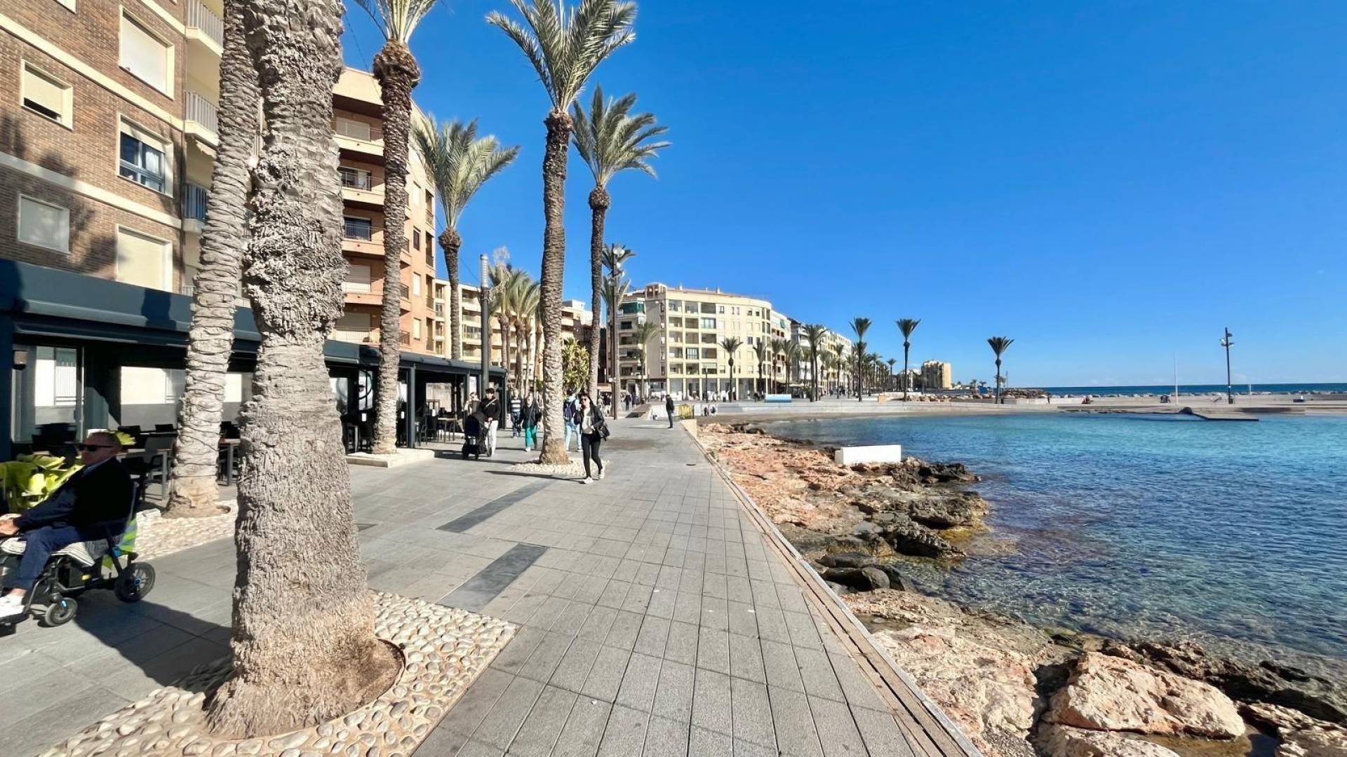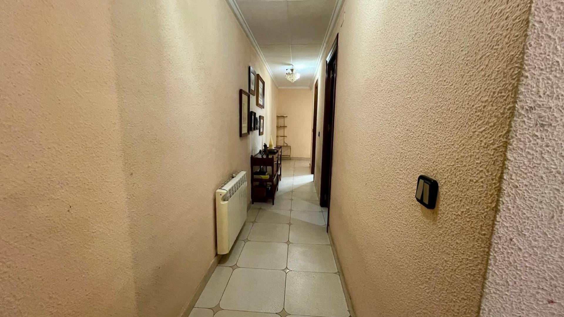 Se vende amplio apartamento en el centro de Torrevieja Apartamento de 112 m² ubicado en pleno centro de Torrevieja, a tan solo 300 metros de las conocidas piscinas naturales, uno de los lugares más apreciados de la ciudad para disfrutar del mar con zonas de baño tranquilas y paseo marítimo. La vivienda cuenta con: 4 habitaciones amplias 2 baños completos Salón luminoso con aire acondicionado Cocina independiente Solárium privado situado en otra planta, perfecto para disfrutar del sol y del buen clima durante todo el año. Además, el apartamento se encuentra a un paso de la Plaza de la Ermita, una zona céntrica con vida durante todo el año, rodeada de comercios, cafeterías, servicios y todo lo necesario para el día a día. La vivienda está situada en una tercera planta sin ascensor. Una excelente oportunidad tanto para vivir todo el año, como para invertir o disfrutar de vacaciones junto al mar, gracias a su ubicación privilegiada cerca de todos los servicios y a pocos minutos andando de la costa.