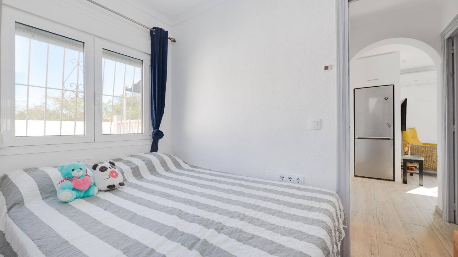 Bonita casa independiente con piscina privada situada en la tranquila y demandada urbanización La Marina. La vivienda cuenta con 51 m² construidos sobre una amplia parcela de 257 m², ofreciendo privacidad, comodidad y espacios exteriores ideales para disfrutar del clima mediterráneo. Se trata de un modelo Rosa ampliado, que dispone de 2 dormitorios y 1 baño, y que ha sido recientemente reformado, presentando un aspecto moderno, acogedor y listo para entrar a vivir. Uno de sus grandes atractivos es su sistema de energía solar, compuesto por 14 paneles solares con batería física de 7,5 kW, lo que proporciona un estilo de vida más eficiente, sostenible y con un importante ahorro energético. En el exterior encontramos una fantástica piscina privada, perfecta para disfrutar durante todo el año, además de una gran zona de almacenamiento bajo la terraza, muy práctica para guardar herramientas, bicicletas o mobiliario exterior. La propiedad está muy bien ubicada, cerca de todas las comodidades de la urbanización: centro médico, comercios, bares, restaurantes y supermercados, y a tan solo 4 km de las hermosas playas de la zona. Una excelente oportunidad tanto como vivienda habitual, casa de vacaciones o inversión en una de las zonas más populares de la Costa Blanca.