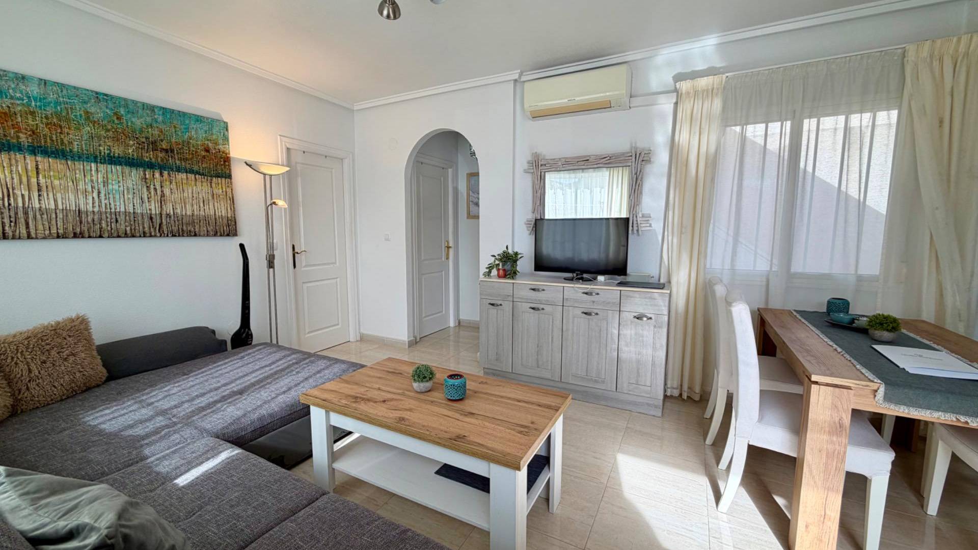 Encantadora casa adosada completamente renovada en Ciudad Quesada Bonita vivienda adosada en Ciudad Quesada, completamente reformada con mucho cuidado y atención a los detalles. La propiedad fue renovada por los propietarios para ellos mismos, lo que se refleja en la calidad y el confort de toda la vivienda. La casa se vende totalmente amueblada y está lista para entrar a vivir. Gracias a su orientación suroeste, disfruta de mucha luz natural durante todo el día. Características principales: •2 dormitorios •2 baños •Amplio salón con cocina abierta •Varias zonas de almacenamiento / trasteros •Plaza de aparcamiento •Piscina comunitaria en la urbanización •Solárium privado con bonitas vistas a las montañas y a la famosa laguna rosa Ubicada cerca de restaurantes, tiendas y todos los servicios, y a pocos minutos en coche de las playas de la Costa Blanca. Una vivienda ideal tanto para vivir como para disfrutar de vacaciones.
