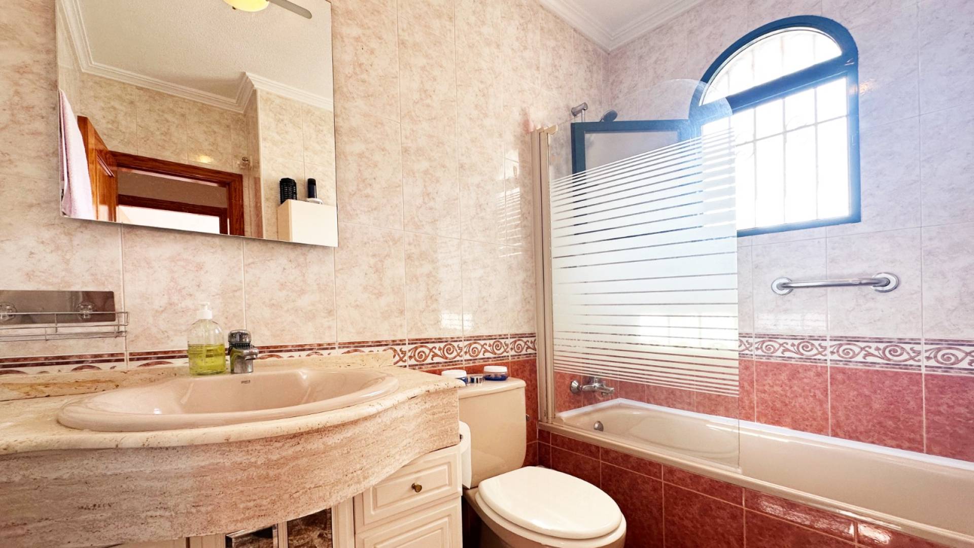 Esta encantadora casa adosada ofrece una combinación ideal de espacio, comodidad y proximidad a la costa, perfecta para quienes buscan un estilo de vida tranquilo pero práctico en la Costa de Orihuela. Interior: Con una superficie de 100 m², esta espaciosa vivienda cuenta con 3 dormitorios y 2 baños, lo que ofrece un amplio espacio habitable para familias o para quienes buscan espacio adicional para invitados. Uno de los baños dispone de bañera, mientras que la planta baja cuenta con un práctico aseo para mayor comodidad. Salón: Un amplio salón ofrece un espacio cómodo para relajarse y recibir invitados, con luz natural que inunda la estancia desde la terraza delantera. Cocina: La cocina semiindependiente con zona de comedor integrada está totalmente equipada y ofrece acceso al jardín trasero/patio, ideal para almacenamiento adicional al aire libre o como un refugio tranquilo. Espacio exterior: Disfrute de la vida al aire libre con una terraza delantera, perfecta para cenar al aire libre o relajarse. La propiedad también cuenta con un amplio jardín trasero y aparcamiento privado dentro de la comunidad cerrada y segura, así como acceso a una gran piscina comunitaria para su comodidad. La propiedad incluye un solárium cerrado, lo que la convierte en el lugar perfecto para relajarse y recibir invitados, además de un práctico espacio para un 4º dormitorio. Orientación: orientada al sureste, lo que garantiza un ambiente soleado y confortable durante todo el día. Amueblado: La propiedad se vende amueblada, por lo que está lista para que te mudes y empieces a disfrutar de tu nuevo hogar. Calefacción: Calefacción y aire acondicionado en toda la propiedad. Ubicación: La propiedad se encuentra a solo unos minutos a pie de una amplia gama de servicios locales, incluyendo supermercados, bancos, farmacias y una gran variedad de bares, restaurantes y líneas de autobús. Este dúplex ofrece la combinación ideal de comodidad y relajación en una ubicación privilegiada cerca del mar, lo que lo convierte en una excelente inversión para cualquiera que busque un estilo de vida costero. Esta es una oportunidad fantástica para adquirir una preciosa vivienda en una de las zonas más codiciadas de la Costa Blanca. ¡No se lo pierda: concierte una visita hoy mismo!