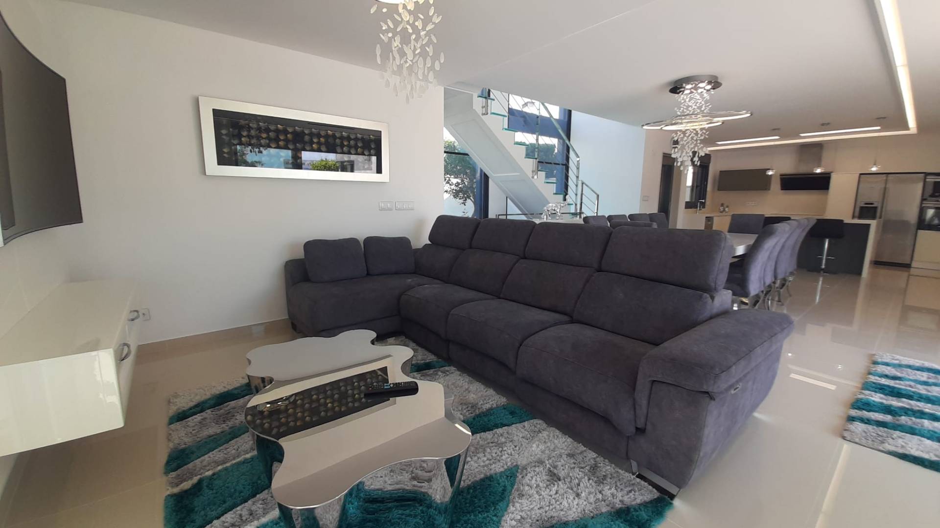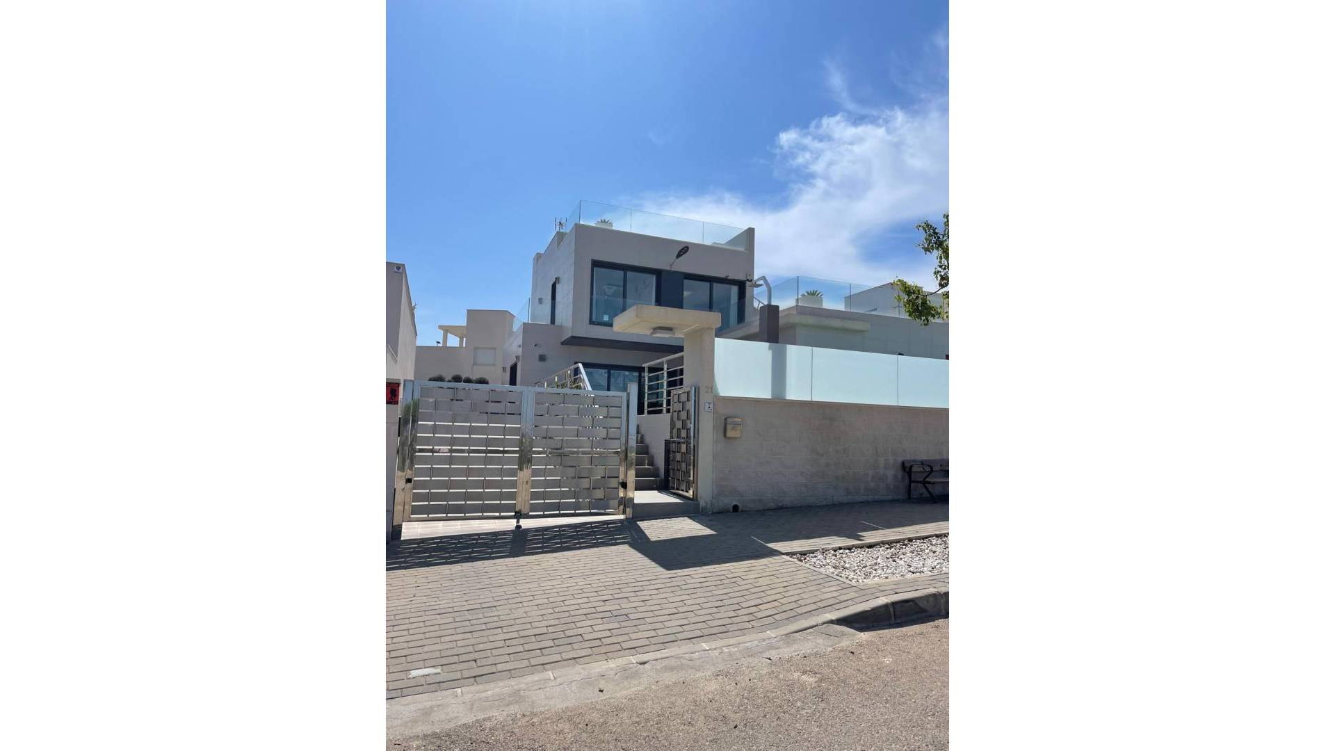 Descubre esta espectacular villa de lujo con increíbles vistas al mar y a la naturaleza. Ubicada en la parte alta de la Ciudad de las Comunicaciones, esta propiedad de 316m² construidos sobre una parcela de 434m², fue construida en 2017. A solo 2,7 km de servicios y a 7 km de la playa, tendrás acceso rápido a todo lo que necesitas. El centro de San Miguel de Salinas, con sus tiendas y restaurantes, está a poca distancia en coche, y el aeropuerto se encuentra a 40 km. Para los amantes del golf, el campo está a solo 3,6 km. Esta moderna villa cuenta con cinco dormitorios y cuatro baños, distribuidos en dos plantas y un sótano. Un ascensor conecta todos los niveles, complementado por una elegante escalera de cristal. Disfruta de un salón de concepto abierto con cocina con isla central y un dormitorio principal con baño en suite. El sótano ofrece sala de juegos, espacio para celebraciones y sala de cine. En el exterior, dos terrazas te brindan vistas panorámicas. El jardín privado incluye una piscina con cascada y jacuzzi. La propiedad dispone de aire acondicionado, suelo radiante y garaje privado con espacio para varios vehículos. Se vende amueblada y equipada, lista para entrar a vivir. Tasa Ibi: 910€ al año.