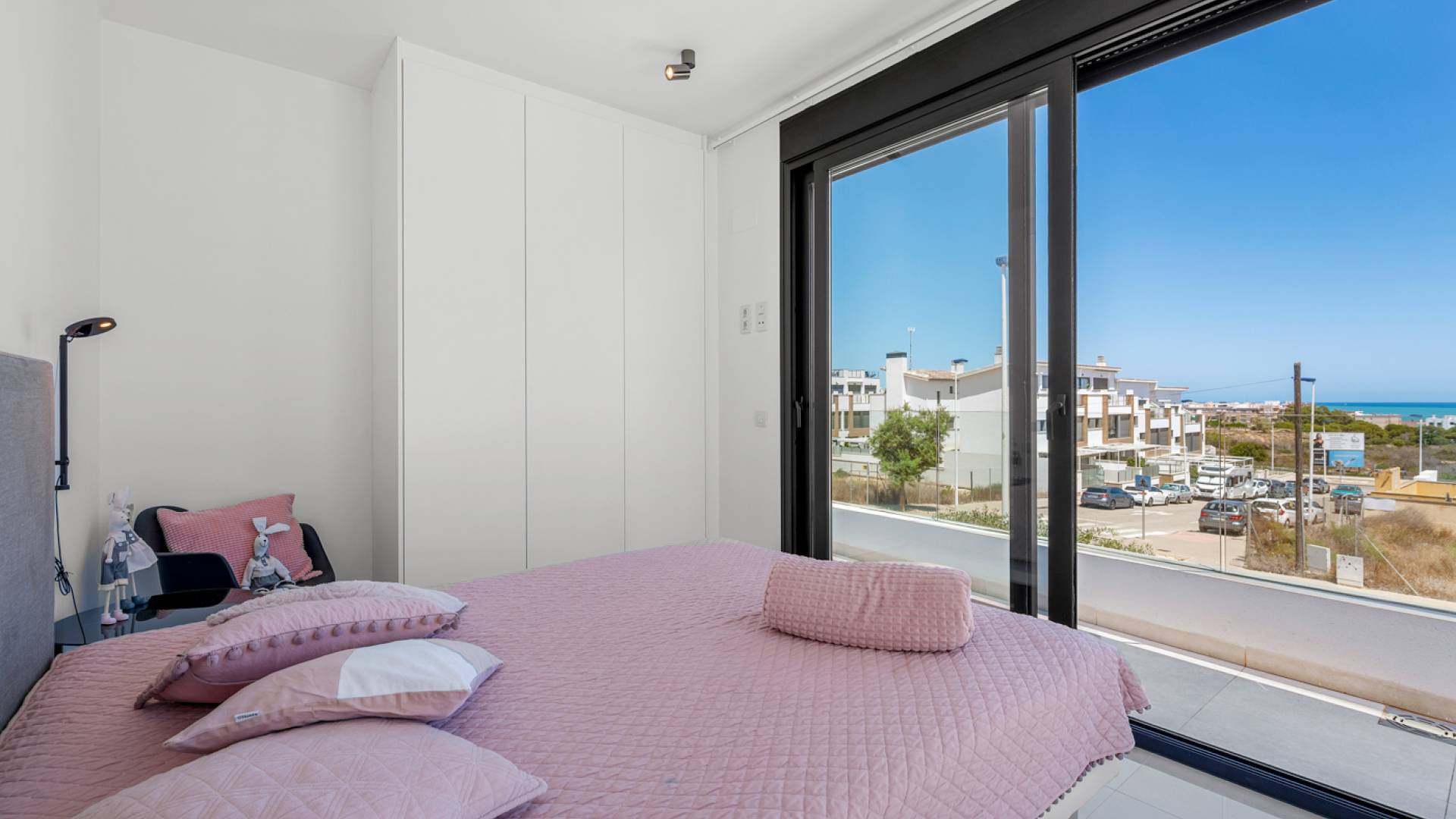 Ubicada en una parcela de 347m², esta villa contemporánea —construida en 2019— ofrece una combinación equilibrada entre diseño moderno y comodidad. Con una superficie de 194m² distribuidos en tres niveles, la vivienda cuenta con cuatro amplios dormitorios y tres baños, en una distribución pensada para ofrecer privacidad y funcionalidad. La cocina de estilo abierto se integra con el comedor y el salón, formando un espacio luminoso y amplio con acceso directo al jardín y a la terraza a través de grandes puertas correderas de cristal. La entrada principal se sitúa en el lado norte de la propiedad, mientras que el jardín y la zona de la piscina disfrutan de orientación sur. En el exterior, la piscina privada de 36m² destaca como elemento central, rodeada de un paisajismo moderno y zonas de descanso y comedor. Una pérgola ofrece sombra para disfrutar de comidas al aire libre y la terraza cubierta amplía el espacio habitable. El solárium en la azotea ofrece vistas abiertas y un espacio perfecto para relajarse, incluyendo vistas parciales al mar. En la planta superior, la suite principal dispone de vestidor y acceso a un balcón privado. Dos dormitorios adicionales con armarios empotrados completan esta planta. Un cuarto dormitorio se encuentra en la planta baja, ideal para invitados o como espacio flexible. La vivienda incluye además cuarto de lavado independiente, trastero y aparcamiento privado en la parcela. Con un diseño cuidado, acabados de calidad y excelente ubicación, esta villa representa un estilo de vida moderno a pocos minutos del mar.