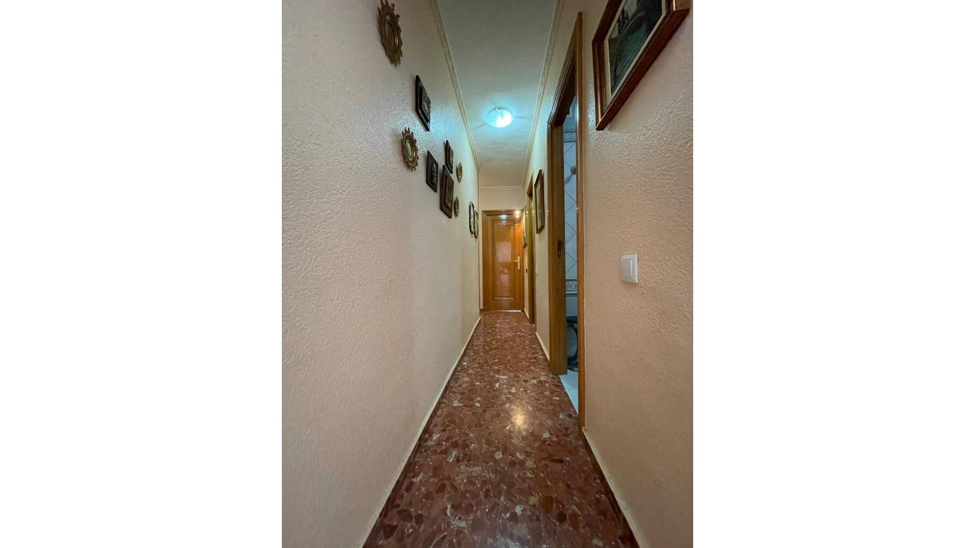 Exclusiva vivienda en primera línea del Paseo Juan Aparicio – Torrevieja Descubre esta magnífica propiedad situada en pleno corazón de Torrevieja, en primera línea del emblemático Paseo Juan Aparicio, con impresionantes vistas abiertas al mar Mediterráneo. Con 160 m² construidos, esta vivienda destaca por su amplitud y excelente distribución, ideal tanto como residencia habitual como para inversión. Dispone de 4 dormitorios y 3 baños, ofreciendo espacio y comodidad para toda la familia o para quienes buscan una propiedad versátil junto al mar. El amplio y luminoso salón-comedor se abre a una agradable terraza con vistas panorámicas al mar, un espacio perfecto para relajarse y disfrutar de inolvidables atardeceres. La cocina es independiente y cuenta con galería, aportando funcionalidad y practicidad al día a día. La vivienda incluye además armarios empotrados, trastero y plaza de garaje, un valor añadido clave en esta zona tan demandada. Ubicada en una 4ª planta, se encuentra en buen estado de conservación, con gran potencial de actualización para adaptarla a un estilo más contemporáneo y aumentar su valor. Gastos: IBI: 607 €/año Comunidad: 815 €/año Una oportunidad única de adquirir una propiedad en una de las ubicaciones más cotizadas de la Costa Blanca, rodeada de todos los servicios, restaurantes y zonas de ocio, con acceso directo al paseo marítimo. Ideal tanto para vivir todo el año como para obtener una alta rentabilidad como inversión