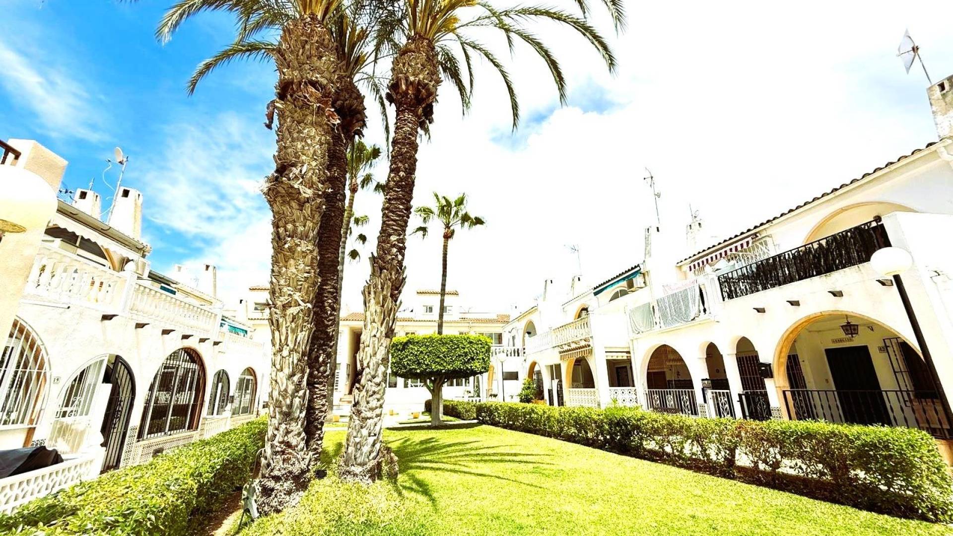 Adosado de 2 dormitorios con piscina en el Chaparral,Torrevieja PROPIEDAD: Este adosado se encuentra dentro de la urbanización cerrada distribuido en 2 plantas. Una vez dentro de la vivienda nos encontramos con un porche/terraza cerrado con chimenea donde se puede hacer la barbacoa. En la misma planta encontramos un lavadero y un aseo. En la planta baja hay 2 dormitorios, uno de los cuales tiene acceso a la amplia terraza con vistas a la red y a la piscina. También hay una sala de descanso en la planta baja. Es esencial decir que puede haber una piscina de red y una zona verde a su alrededor donde se puede tomar el sol y relajarse. El coche se puede aparcar fuera de la calle. UBICACIÓN: Torrevieja se encuentra en la provincia de Alicante (Costa Blanca). Es famosa por su clima mediterráneo y su costa. No podemos olvidar sus paseos marítimos donde podemos encontrar algunos restaurantes a lo largo de las playas de arena fina. Además, cuenta con excelentes playas como la Playa de los Náufragos, la Playa de los Locos y la Playa de la Mata. Por lo tanto, se considera una localidad turística destacable donde el medio ambiente ocupa un lugar importante como reclamo turístico. Además, podemos encontrar numerosos centros comerciales (Habaneras, La Zenia Boulevard), campos de golf, centros deportivos, hospitales (como el Hospital Universitario de Torrevieja) y aeropuertos como el Aeropuerto de Alicante (a 35 km) y el Aeropuerto Internacional de la Región de Murcia (a 43 km). DISTANCIA A LA PLAYA: 3KM DISTANCIA A LOS SERVICIOS:300M