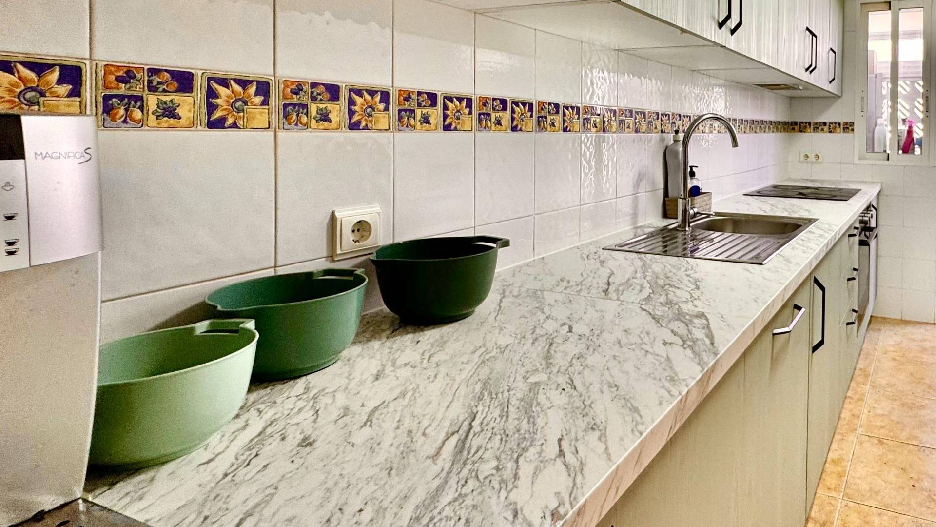 casa con solárium y vistas abiertas a la naturaleza entra en esta casa de 3 dormitorios y 2 baños, situada en una urbanización agradable y bien cuidada que ofrece un equilibrio perfecto entre estilo de vida y comodidad. en la planta baja encontrarás una amplia terraza, perfecta para comer al aire libre y relajarse. en la planta superior, la vivienda cuenta con un solárium privado en la azotea, donde parte de la estructura ha sido reforzada, ofreciendo la opción ideal para instalar un jacuzzi y disfrutar del sol y de las vistas abiertas. la cocina ha sido recientemente renovada, aportando un estilo fresco y moderno, mientras que el resto de la vivienda ofrece una base sólida con mucho potencial para personalizar. uno de los grandes puntos fuertes es la vista abierta a un área natural protegida, lo que garantiza que el entorno y las vistas se mantendrán siempre despejados y tranquilos. la comunidad ofrece excelentes instalaciones como gimnasio, pistas de pádel y tenis, y una bonita piscina comunitaria, creando un entorno de vida muy completo. todos los servicios diarios como supermercados, bares, restaurantes y tiendas están a poca distancia a pie, facilitando un estilo de vida cómodo y sin necesidad de coche. una gran oportunidad para quienes buscan una vivienda bien ubicada con amplios espacios exteriores, buenas instalaciones comunitarias y valor a largo plazo.