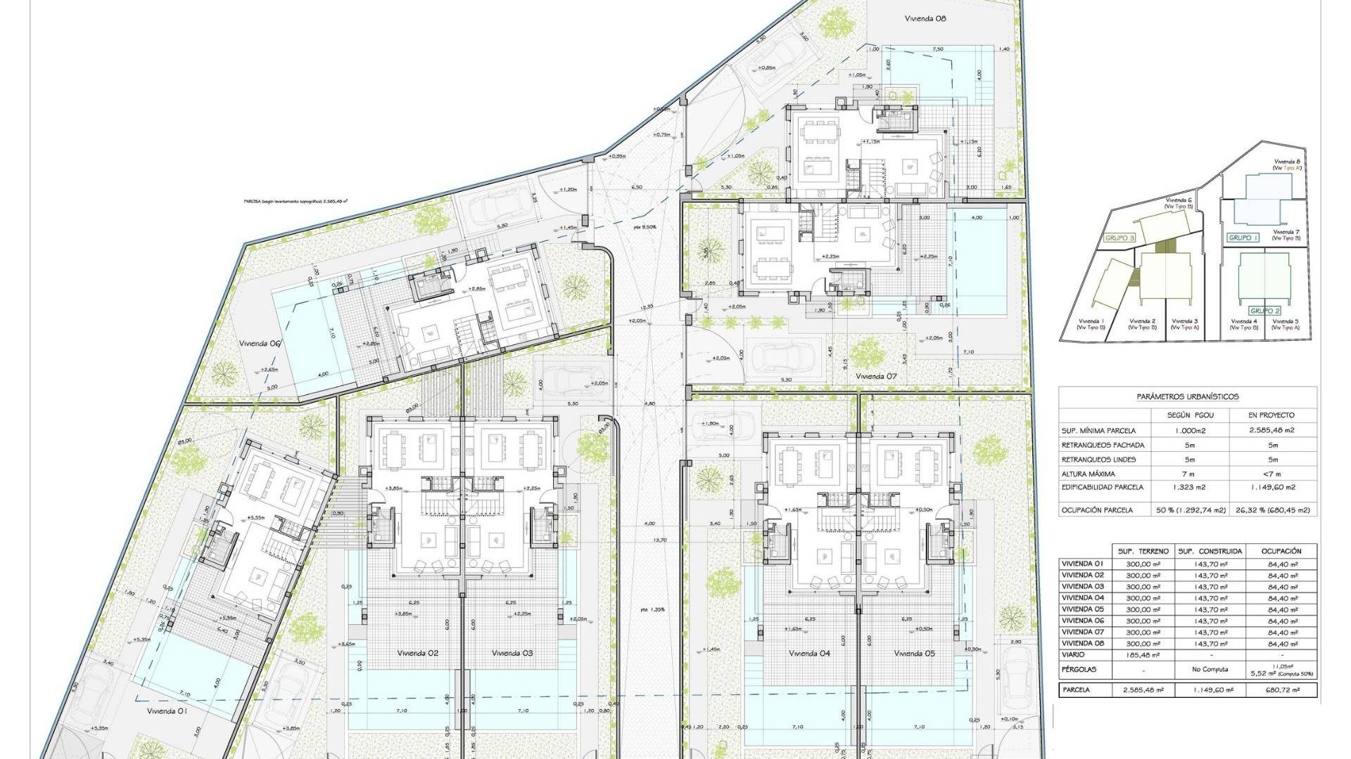 Modernas villas adosadas con piscina privada en Las Filipinas-Orihuela Costa Exclusivas villas de nueva construcción en una ubicación privilegiada de la Costa Blanca Descubra esta promoción boutique de ocho modernas villas adosadas situadas en Las Filipinas, Orihuela Costa, una de las zonas residenciales más codiciadas del sur de la Costa Blanca. Este barrio bien consolidado ofrece un excelente acceso a los servicios cotidianos, como supermercados, restaurantes, farmacias e instalaciones de ocio, todo ello a poca distancia. Con una ubicación ideal entre algunos de los mejores campos de golf de la zona, como Villamartin Golf, Campoamor Golf, Las Ramblas Golf y Las Colinas Golf, estas villas ofrecen un estilo de vida excepcional para los amantes del golf y los compradores internacionales. Las hermosas playas de Orihuela Costa se encuentran a solo 6 km, lo que convierte a esta zona en un lugar ideal tanto para residencias permanentes como para casas de vacaciones. Diseño contemporáneo con distribuciones amplias Cada villa está construida en una parcela privada de aproximadamente 300 m² y ofrece unos 140 m² de superficie habitable moderna distribuida en dos plantas. Las propiedades cuentan con tres dormitorios dobles, dos cuartos de baño completos con lavabos dobles, incluido uno en suite, y un aseo adicional para invitados. La planta baja cuenta con una luminosa y elegante sala de estar con una pared decorativa acabada en piedra natural, lo que crea un ambiente cálido y elegante. Los grandes ventanales dan acceso directo a la terraza exterior y a la piscina privada, que incluye elementos decorativos de agua. En la parte trasera de la propiedad, una cocina italiana de diseño con isla central e iluminación LED se abre a un amplio comedor con acceso al jardín y a la zona de aparcamiento privado. Elegantes dormitorios y vida al aire libre La primera planta incluye dos dormitorios de invitados con armarios empotrados y un cuarto de baño familiar. El dormitorio principal destaca por su sofisticado diseño, con un cabecero de roble que va del suelo al techo, detalles en espejo y un lujoso cuarto de baño en suite, además de vistas a la zona de la piscina. También existe la opción de añadir un solárium en la azotea o un semisótano, lo que ofrece espacio adicional y posibilidades de personalización. Características de alta calidad y comodidad moderna Estas villas están construidas con materiales de alta calidad y la última tecnología para garantizar la comodidad y la eficiencia. Las características incluyen preinstalación para aire acondicionado por conductos, sistema aerotérmico para agua caliente, calefacción por suelo radiante en los baños y persianas eléctricas. Otras especificaciones incluyen un sistema de alarma, videoportero y puerta de acceso automatizada para vehículos, lo que garantiza tanto la comodidad como la seguridad. Ubicación privilegiada cerca de playas y campos de golf Las Filipinas ofrece una ubicación estratégica con excelentes conexiones. Las playas de Orihuela Costa se encuentran a unos 6 km, mientras que el Aeropuerto Internacional de Murcia está a 50 km y el de Alicante a 55 km. Varios campos de golf de primer nivel se encuentran en un radio de entre 2 y 5 km. Oportunidad de inversión ideal en la Costa Blanca Estas modernas villas ofrecen una combinación perfecta de diseño, ubicación y estilo de vida, lo que las convierte en una excelente inversión o segunda residencia en la Costa Blanca. Póngase en contacto con nosotros hoy mismo para obtener más información o concertar una visita y asegurarse su nueva villa en Orihuela Costa.