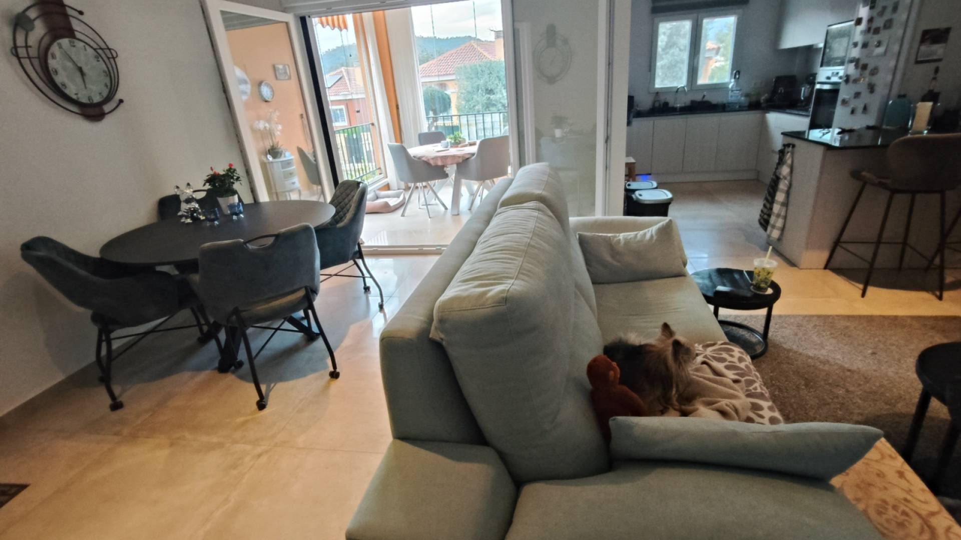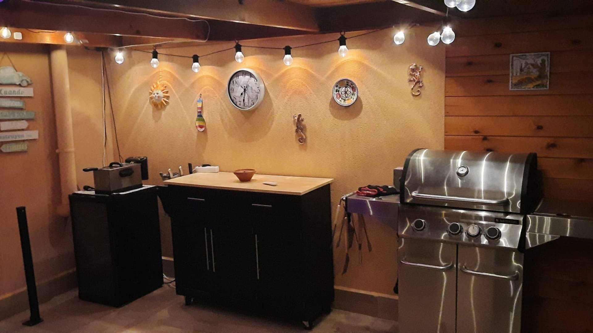 Nos complace presentar esta encantadora propiedad ubicada en La Romana, Alicante: una excelente opción para quienes buscan comodidad, un entorno precioso y disfrutar del aire libre. El exterior cuenta con una bonita pérgola y zonas ajardinadas bien cuidadas con plantas maduras, creando un ambiente acogedor y tranquilo. El luminoso y confortable salón conecta con una magnífica terraza que puede cerrarse completamente con puertas correderas de cristal, permitiendo disfrutar del espacio durante todo el año. La cocina es amplia y funcional, y la vivienda incluye dos acogedores dormitorios y un baño moderno. Uno de los mayores atractivos de esta casa es su amplio sótano , que ofrece una generosa cantidad de espacio adicional. Esta área brinda muchas posibilidades: se puede usar como sala de pasatiempos, trastero, taller, sala de entretenimiento, gimnasio o adaptarla a sus necesidades personales. La propiedad está equipada con paneles solares , lo que ayuda a reducir los costos de energía y hace que la casa sea más eficiente y respetuosa con el medio ambiente. En la azotea encontrará un amplio solárium con preciosas vistas panorámicas: un lugar perfecto para relajarse, disfrutar del sol o pasar tiempo al aire libre. Los residentes también tienen acceso a una piscina comunitaria muy bien mantenida , ideal para refrescarse y socializar.