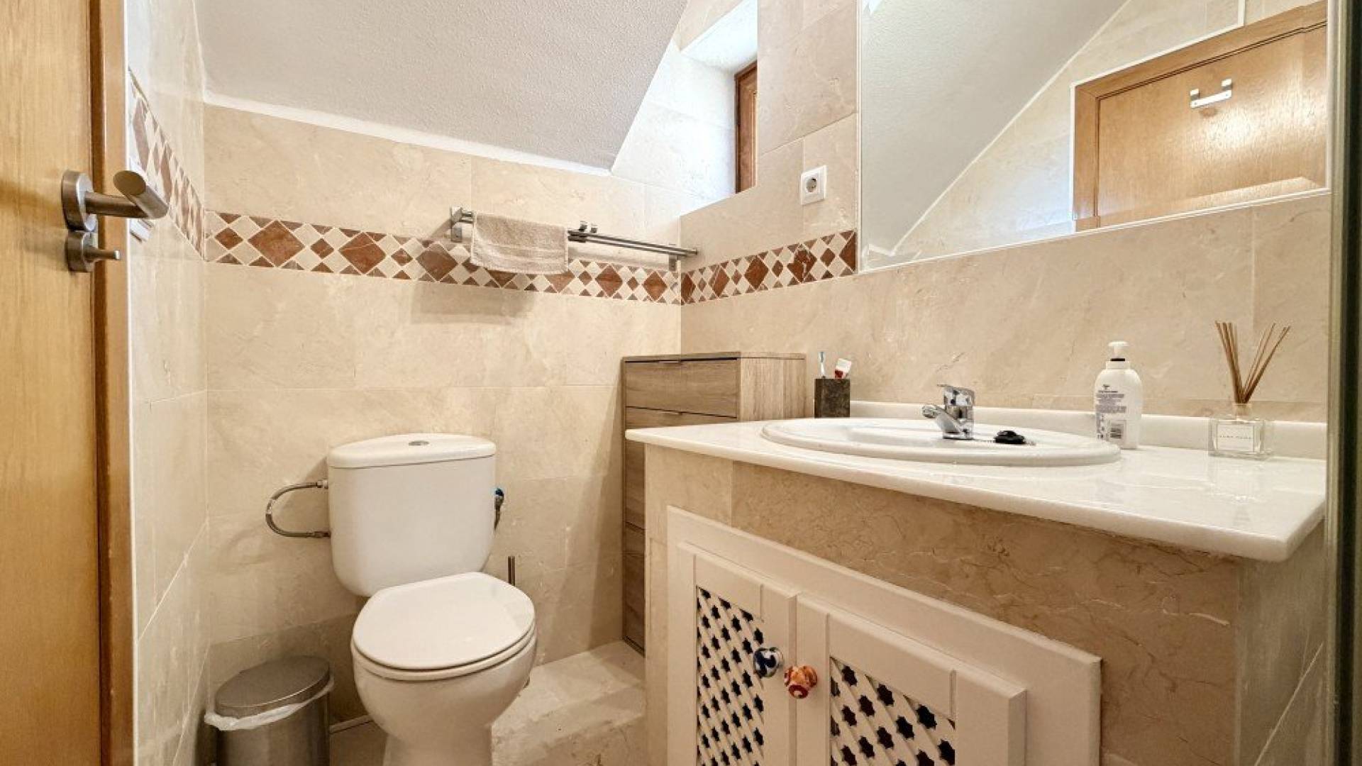 This elegant bungalow is located in the exclusive urbanisation of La Finca Golf, within the municipality of Algorfa, one of the most sought-after residential areas on the Costa Blanca, renowned for its tranquillity, security and privileged natural surroundings.The property boasts an excellent location, just a one-minute walk from the La Finca Golf commercial centre, where you will find a wide range of restaurants, cafés, supermarkets and essential services, ensuring convenience and a high quality of life all year round.The bungalow features two spacious bedrooms, designed to offer maximum comfort, and two fully fitted bathrooms, one of them en suite, providing both privacy and practicality. The layout has been carefully designed to maximise natural light, creating bright and welcoming living spaces.Externally, the property offers a large terrace, ideal for enjoying the Mediterranean climate, as well as a nice solarium fully furnished with a chill-out area and a large awning, perfect for relaxing, entertaining guests or simply enjoying the open views.The development includes a well-maintained communal swimming pool surrounded by landscaped gardens, along with allocated parking space, adding both convenience and security.For golf enthusiasts, the prestigious La Finca Golf course is just a 3-minute drive away, making this property ideal both as a permanent residence and as an investment opportunity. Furthermore, the beautiful beaches of Guardamar del Segura are only 15 minutes away by car, known for their fine sand, crystal-clear waters and extensive pine forests.The area of Algorfa and La Finca Golf perfectly combines the peace of a residential setting with close proximity to all amenities and coastal attractions, offering a relaxed, healthy lifestyle with a high standard of living.In summary, a property that brings together location, comfort and surroundings, ideal for enjoying the true Mediterranean lifestyle!!