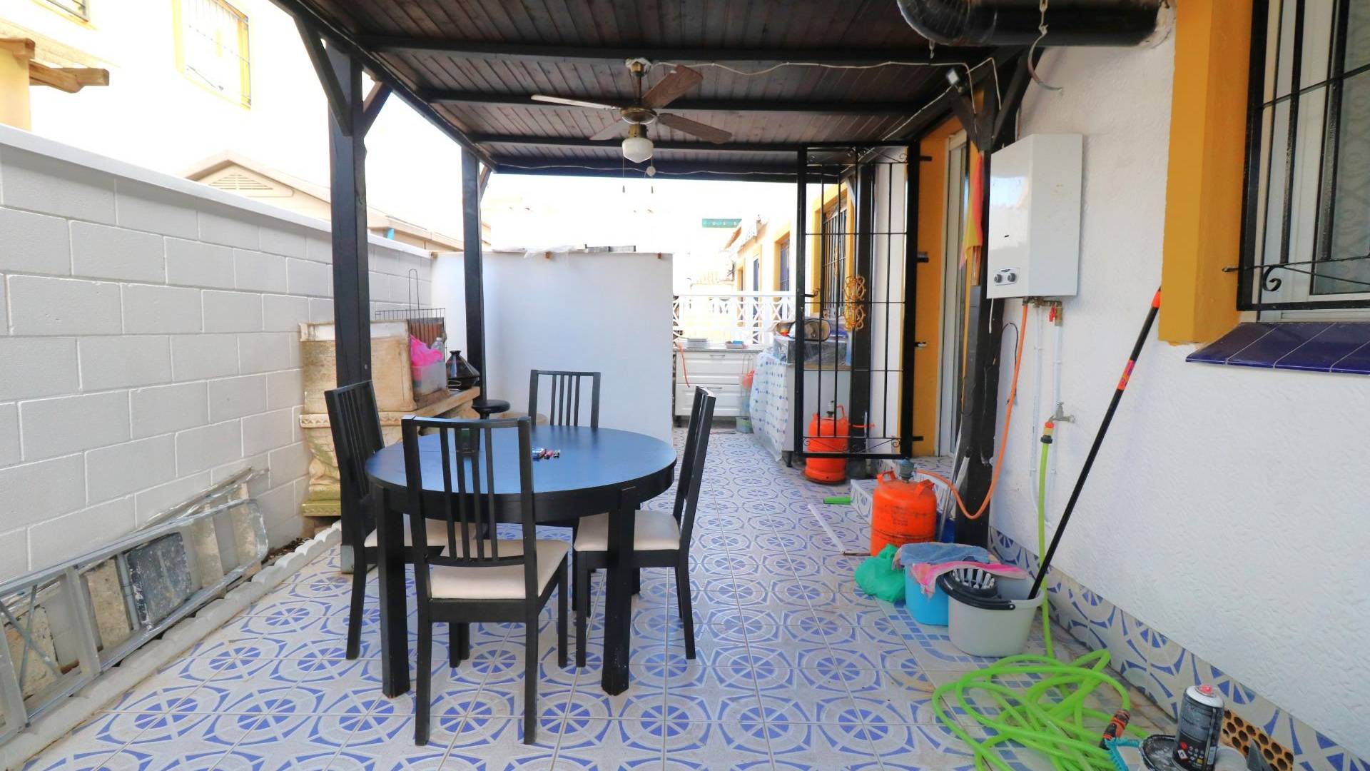 Descubre este impresionante quad ubicado en la popular zona de Carrefour, Torrevieja. Esta propiedad reformada cuenta con una superficie de 85 m². Disfruta del confort que ofrecen sus tres dormitorios dobles y dos baños completos. La orientación noreste proporciona luminosidad a todos los espacios del hogar, complementado por su amplio jardín perfecto para disfrutar al aire libre. Este encantador inmueble no solo tiene acceso a una hermosa piscina comunitaria sino también incluye un sótano diáfano con múltiples posibilidades: ideal como sala familiar o espacio creativo adicional según tus necesidades personales. La ubicación es inmejorable; se encuentra a tan solo 2800 metros del mar y está rodeado por árboles frondosos que brindan privacidad y tranquilidad. Además tendrás fácil acceso a centros comerciales cercanos así como colegios en el área. No pierdas la oportunidad de adquirir esta magnífica propiedad dotada además con parking privado dentro urbanización segura! Perfecta tanto para vivir todo el año como opción vacacional.