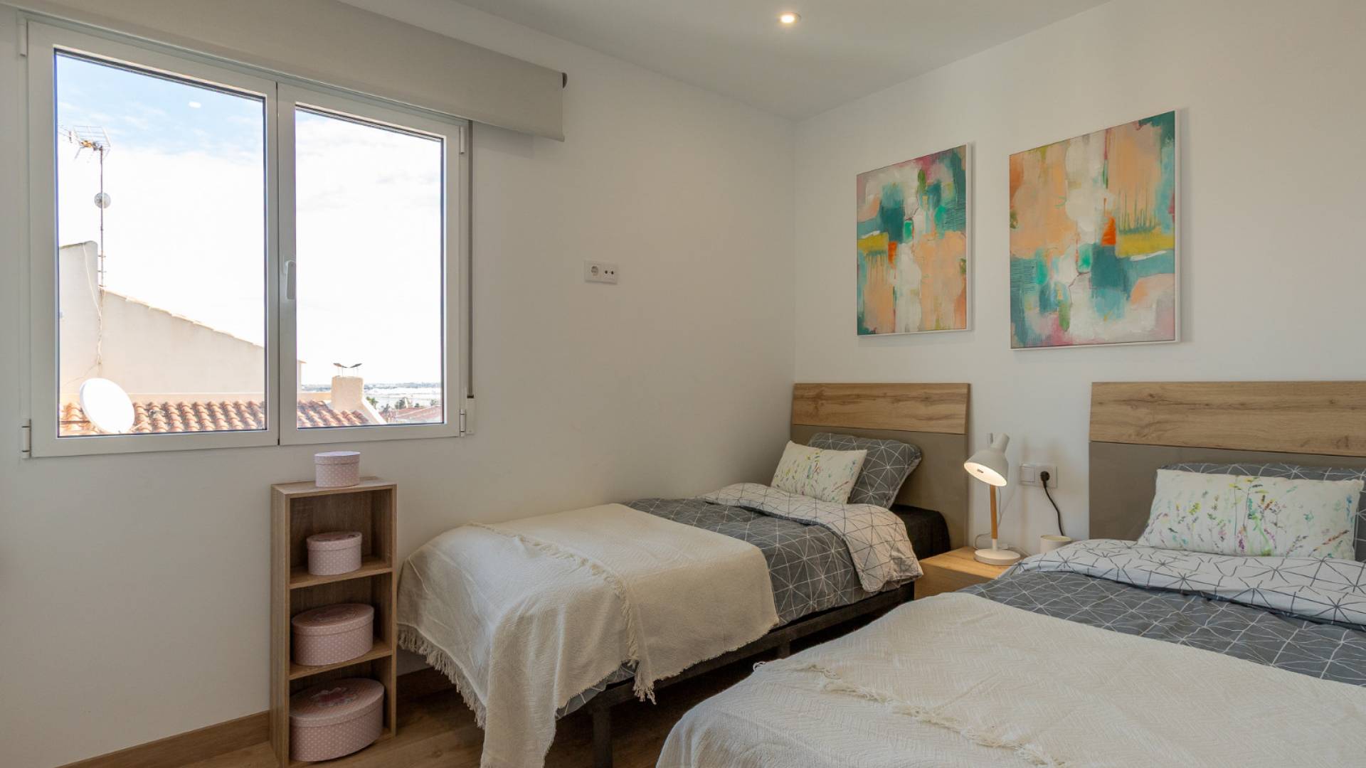 ¿Busca una casa moderna y única en Torrevieja? Esta propiedad en la tranquila zona de Los Balcones podría ser la casa que busca. Esta espaciosa villa independiente fue completamente renovada hace tan solo un par de años y ofrece todas las comodidades modernas. En la planta baja encontrará un amplio dormitorio con vestidor, un salón-comedor abierto con cocina totalmente equipada y un espacioso baño con lavadora y secadora. Desde el comedor se accede a la zona de relax en el patio trasero, donde podrá disfrutar del sol, hacer barbacoas y nadar en su propia piscina climatizada. También hay una sauna de leña en el patio. En el jardín delantero hay una plaza de aparcamiento tras una puerta eléctrica, así como un garaje cerrado. En la planta superior hay 3 o 4 dormitorios y dos baños modernos. El dormitorio principal cuenta con un amplio vestidor, así como un moderno estudio con su propia zona de relax con sofá y televisión, además de una pequeña cocina. Desde el dormitorio principal se accede a un balcón orientado al oeste con escaleras que bajan a la piscina y a la zona de relax. En la azotea hay una terraza privada con césped artificial y un sistema de paneles solares de 11 paneles, que reduce considerablemente el consumo energético. Restaurantes y un supermercado a tan solo 500 metros.La playa de arena de Los Náufragos está a menos de 3 km.El centro de Torrevieja se encuentra a unos 5 km.El aeropuerto de Alicante está a unos 45 minutos del apartamento. Impuesto sobre bienes inmuebles: 592 €/año. Sin gastos de comunidad.