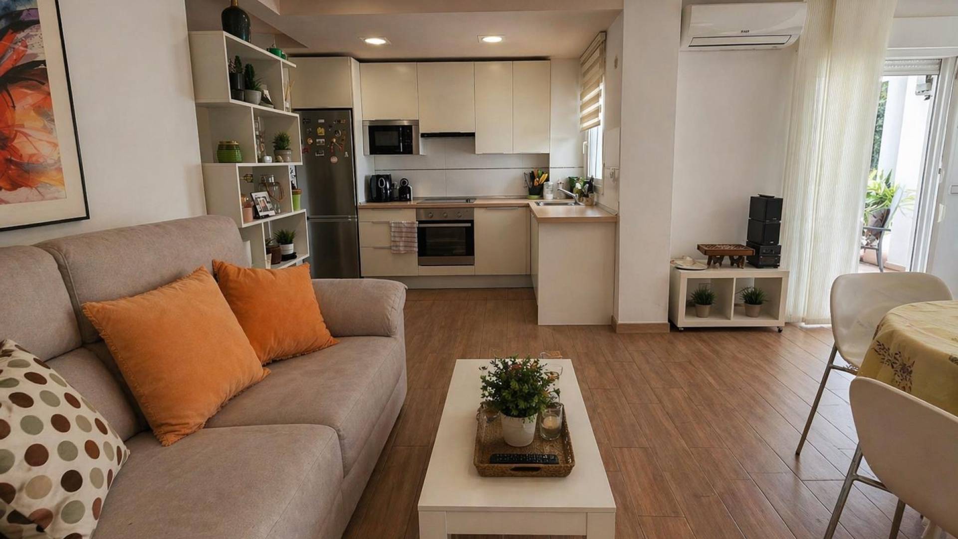 Apartamento en venta en una de las localizaciones más demandadas en Jávea El Puerto, cerca del mar y de todos los servicios. Subimos al apartamento mediante un ascensor y al entrar, somos bienvenidos por un hall de entrada, una moderna cocina, perfecta para preparar nuestros mejores platos y abierta al luminoso salón-comedor con salida a un balcón con toldo, ideal para disfrutar del clima mediterráneo. La zona de descanso se compone de dos dormitorios con armarios empotrados y un baño equipado con ducha italiana y mueble de baño con dos lavabos. La vivienda esta equipada con aire acondicionado f/c y ventanas de doble acristalamiento con persianas. En el exterior, podemos disfrutar de un cuidado jardín y un parking cerrado comunitario. Este apartamento es perfecta para vivir todo el año o para disfrutar de las vacaciones, gracias a su magnifica ubicación.