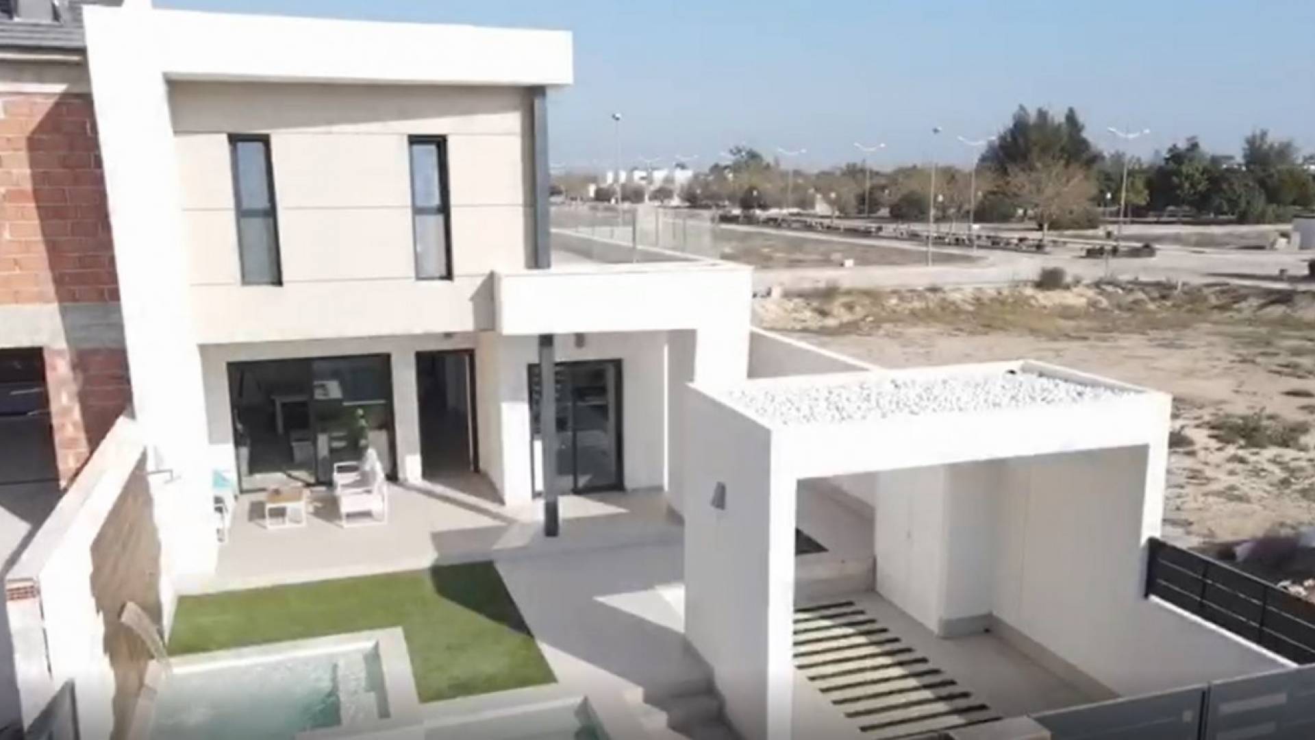 MAISON JUMELÉE MODERNE DANS UNE ZONE URBAINE Maison jumelée moderne dans le nouveau quartier de Dolores, à un jet de pierre du centre ville. La propriété dispose d'un parking sur le terrain et d'une piscine privée. Le rez-de-chaussée dispose d'un grand porche, d'un salon-salle à manger-cuisine, de toilettes et d'une chambre avec salle de bain en suite ; au premier étage, nous avons 2 chambres supplémentaires et une salle de bain, avec accès à une terrasse privée. Quartier calme et paisible, avec plusieurs terrains de golf à proximité et à 15 minutes en voiture des plages de Guardamar.