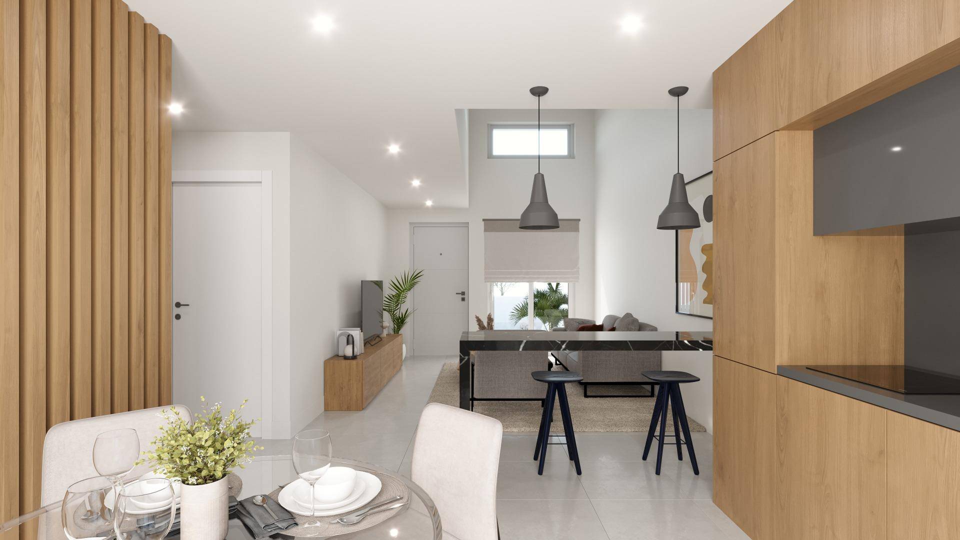 NOUVELLES MAISONS DE VILLE À BALSICAS Magnifique complexe de construction neuve composé initialement de 3 maisons de ville de plain-pied, chacune avec sa propre piscine privée. Toutes les propriétés sont situées au rez-de-chaussée, avec une terrasse et un solarium spacieux, qui permet de profiter de la lumière du soleil tout au long de l'année. Il y a 2 maisons de ville avec 2 chambres, 2 salles de bain et 1 maison de ville avec 3 chambres, 2 salles de bain. Il s'agit de propriétés exceptionnelles dotées de grandes qualités, telles qu'un plafond de salon surélevé et une chute d'eau intégrée dans la piscine. Balsicas est une ville prospère avec de nombreux bars, restaurants et magasins et est très bien desservie par les transports en commun. La gare principale de Balsicas se trouve à 10 minutes à pied de cette propriété, ce qui vous permet d'accéder facilement à Murcie et à Carthagène. Les plages de Mar Menor sont à 15 minutes en voiture et les aéroports de Corvera et d'Alicante à 20 minutes et 1 heure.