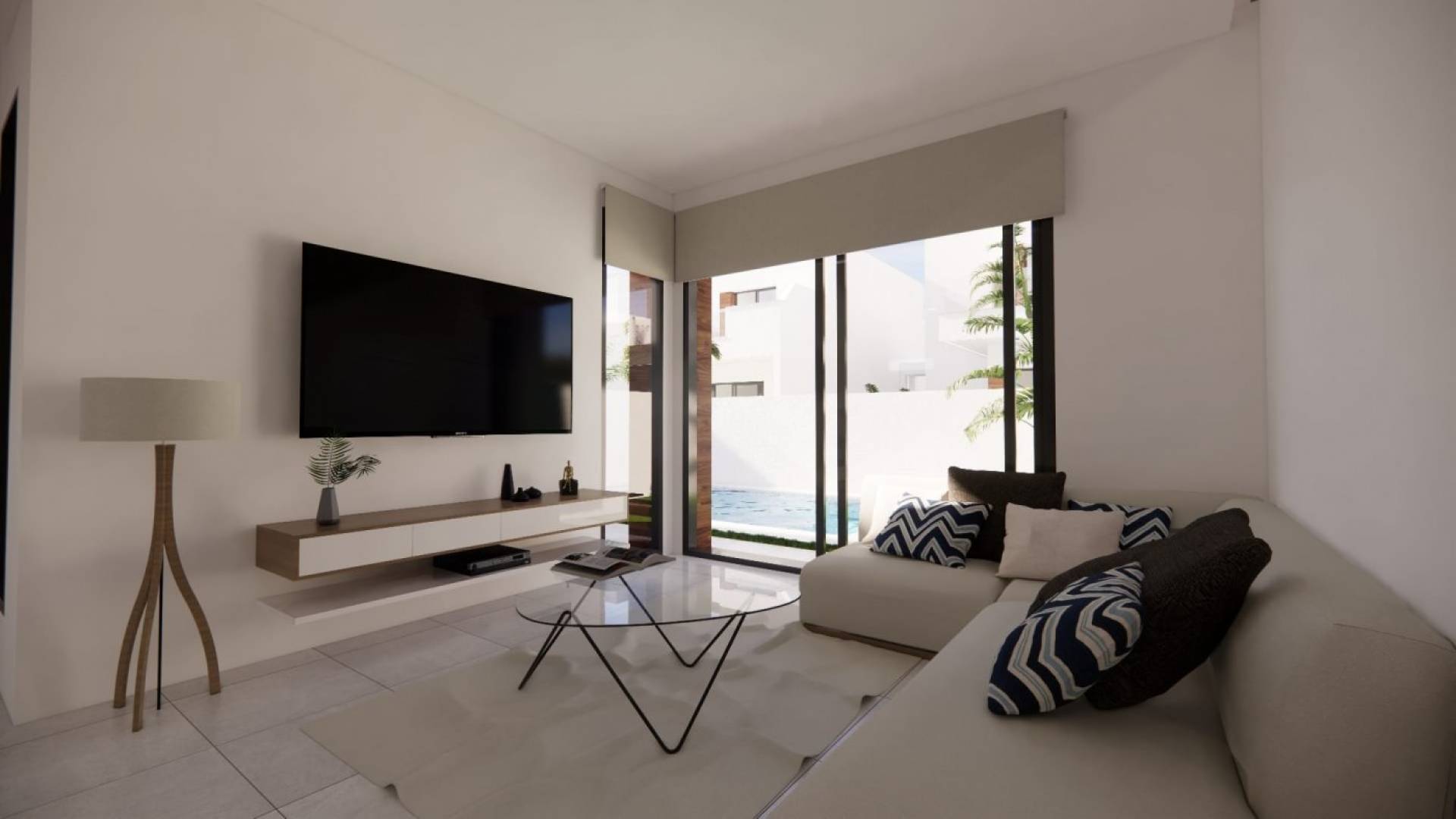 VILLAS DE NOUVELLE CONSTRUCTION À SAN FULGENCIO Nouvelles villas indépendantes situées dans la ville de San Fulgencio. Villas de 130 m2 construites sur des terrains de 180 m2, avec 2/3 chambres à coucher, 2 salles de bain complètes, 1 toilette, cuisine ouverte sur le salon-salle à manger, placards, terrasses, solarium privé, jardin avec piscine privée et parking. Il y a 300 mètres du centre ville avec tous les services, magasins, restaurants, hôtel de ville, banque. La ville de San Fulgencio est située à environ 30 minutes de l'aéroport d'Alicante-Elche, à 6 km du terrain de golf le plus proche et à seulement 7 km de la plage la plus proche.