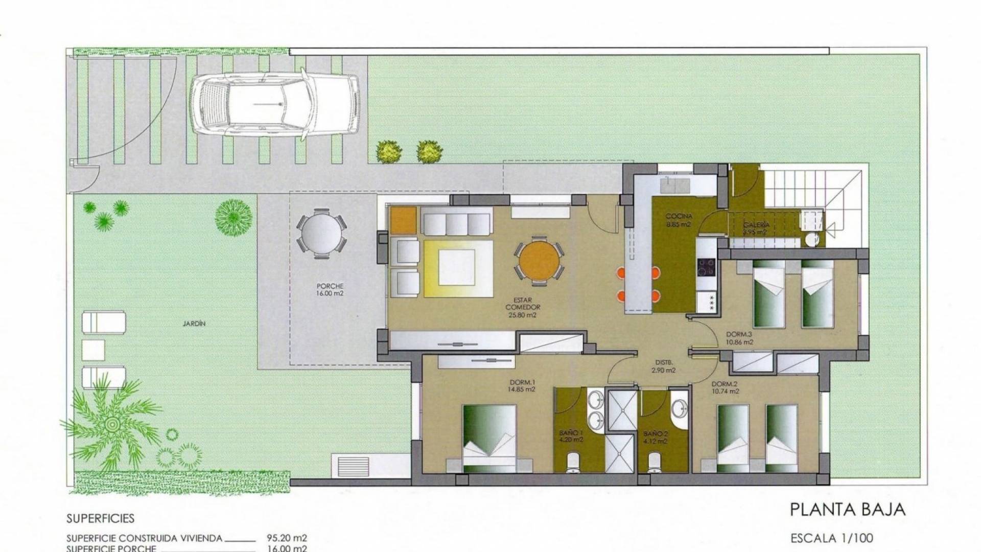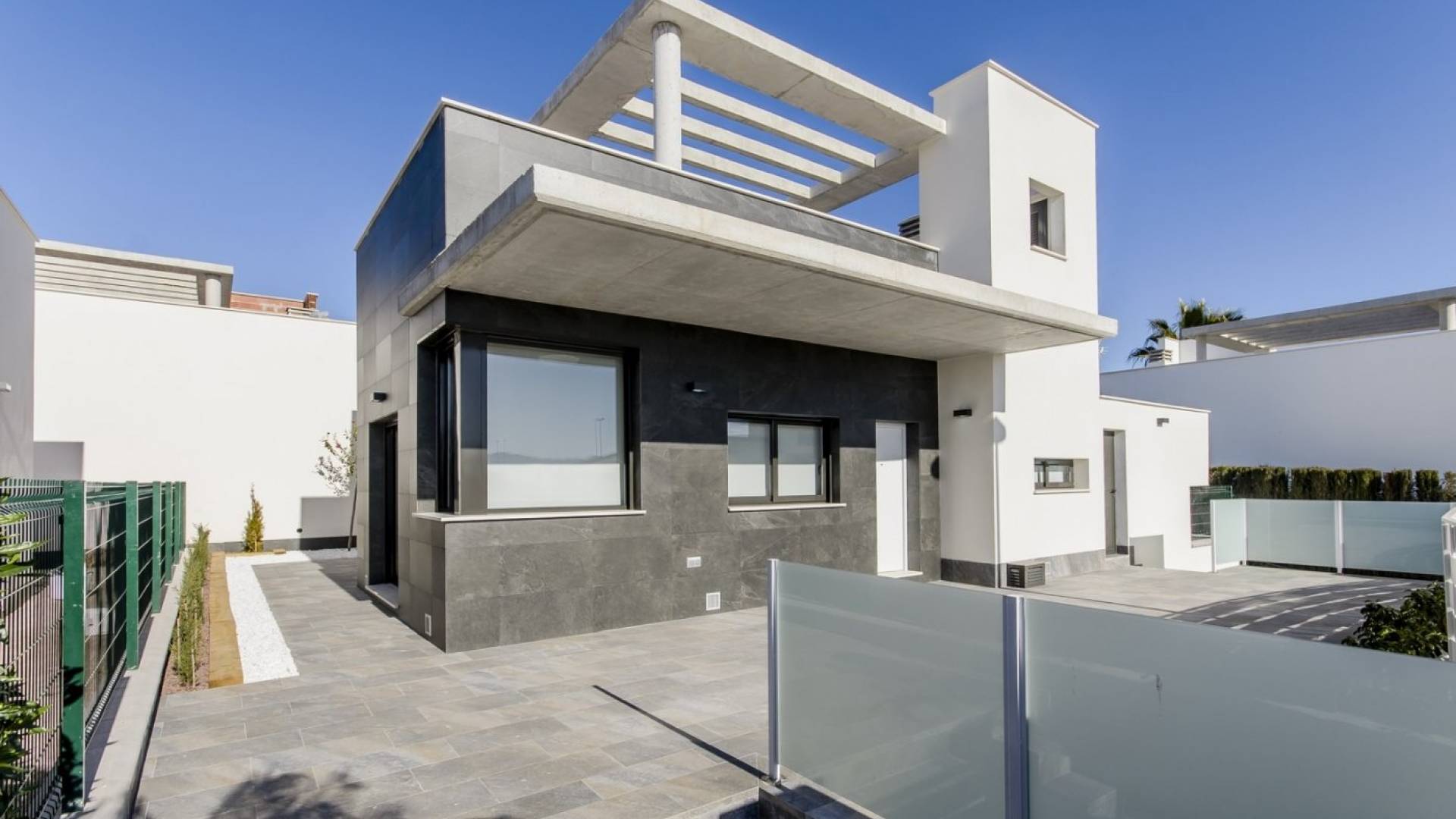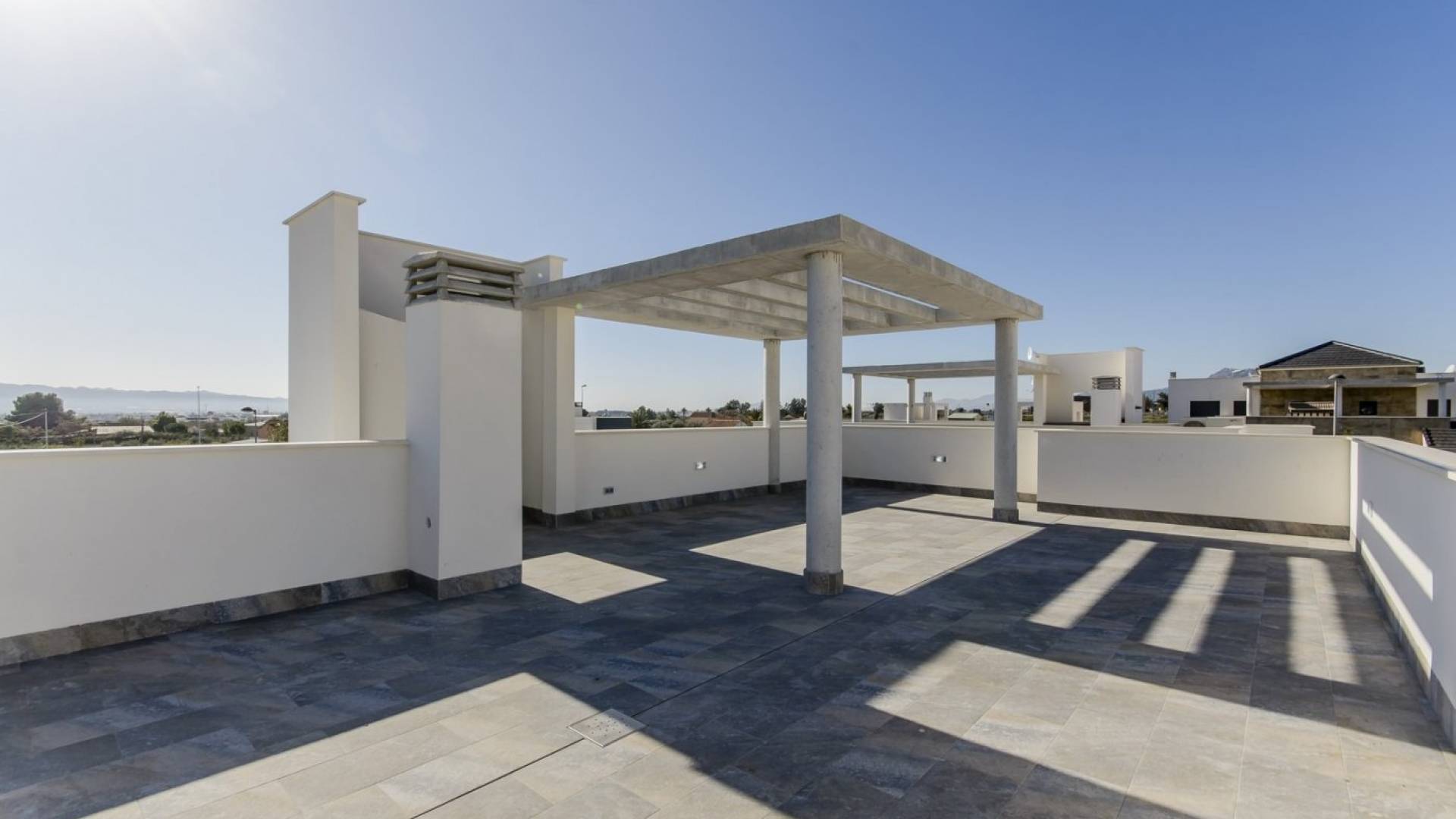VILLAS DE NOUVELLE CONSTRUCTION À LORCA Nouvelle construction résidentielle de villas et de bungalows à Lorca, une ville historique de la région de Murcie, réputée pour sa culture. Urbanisation de villas et d'appartements de plain-pied avec une piscine communautaire et un jardin. Villas privées avec 3 chambres à coucher, 2 salles de bains, cuisine moderne avec accès par escalier au solarium du toit, salon/salle à manger ouvert, menant à un jardin privé avec une place de parking. L'urbanisation dispose d'une piscine commune pour les résidents seulement et de jardins paysagers. Lorca possède une étroite bande de littoral vierge de 9 km située entre les municipalités d'Aguilas et de Mazarron. Des plages et des criques tranquilles, comme l'environnement qui les entoure. Toutes les plages se trouvent dans le parc régional de Cabo Cope et Puntas de Calnegre, elles ne sont donc pas urbanisées, à l'exception de l'ancien village de pêcheurs de Puntas de Calnegre, qui possède un petit centre urbain. Ces plages, peut-être les plus méconnues de la région de Murcie, dégagent une beauté et une sérénité qui invitent à se promener dans ses criques, ses falaises et ses sentiers environnants. Lorca est située à seulement 20 minutes des plages d'Águilas et à moins d'une heure des aéroports.