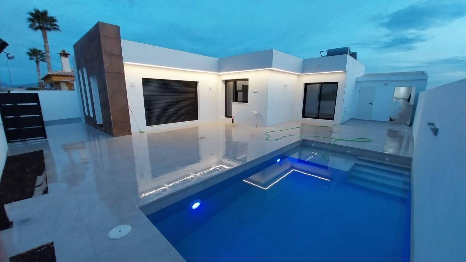 VILLA NOUVELLE CONSTRUCTION !!! Villa moderne de nouvelle construction de plain-pied avec un grand terrain de 800 m2 à Fortuna, près du Balneario de Leana. Piscine privée en supplément. La maison est située dans un environnement rural calme et sans bruit, avec le Spa Leana à 1 km, avec plusieurs hôtels et restaurants aux alentours. La ville de Fortuna est à moins de 3 km pour les achats quotidiens et la ville de Murcie est à 25 km où il y a une large offre gastronomique et de loisirs.