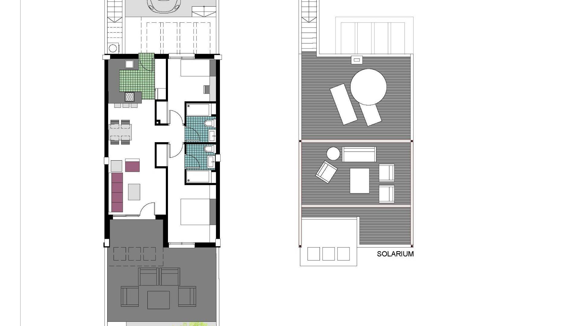 NOUVELLES VILLAS JUMELÉES À MIL PALMERAS Complexe résidentiel de construction neuve composé d'appartements modernes, de bungalows et de villas jumelées, situé dans un cadre privilégié avec des qualités de premier ordre et des vues sur la mer, avec de vastes espaces paysagers, une aire de jeux pour enfants, un parking souterrain et une piscine commune pour adultes et enfants. Les villas modernes jumelées ont 3 chambres à coucher, 2 salles de bains, une cuisine ouverte sur le salon, des armoires encastrées, un sous-sol, une terrasse, un solarium privé, un jardin et une place de parking. Mil Palmeras est situé entre Campoamor et Torre de la Horadada, toutes les commodités dont vous avez besoin tels que les écoles, les restaurants, les installations sportives, etc qui sont ouverts toute l'année. Le village a une petite place et une grande "allée des restaurants" qui est rempli de restaurants internationaux et le parc naturel Lo Monte qui est une réserve spéciale pour les oiseaux. Le parc naturel de Rio Seco est également là pour les amoureux de la nature et de la randonnée. Le terrain de golf 18 trous Lo Romero se trouve à une courte distance en voiture de la ville. Les aéroports de Corvera (Murcie) et d'Alicante sont respectivement à 40 et 55 minutes.