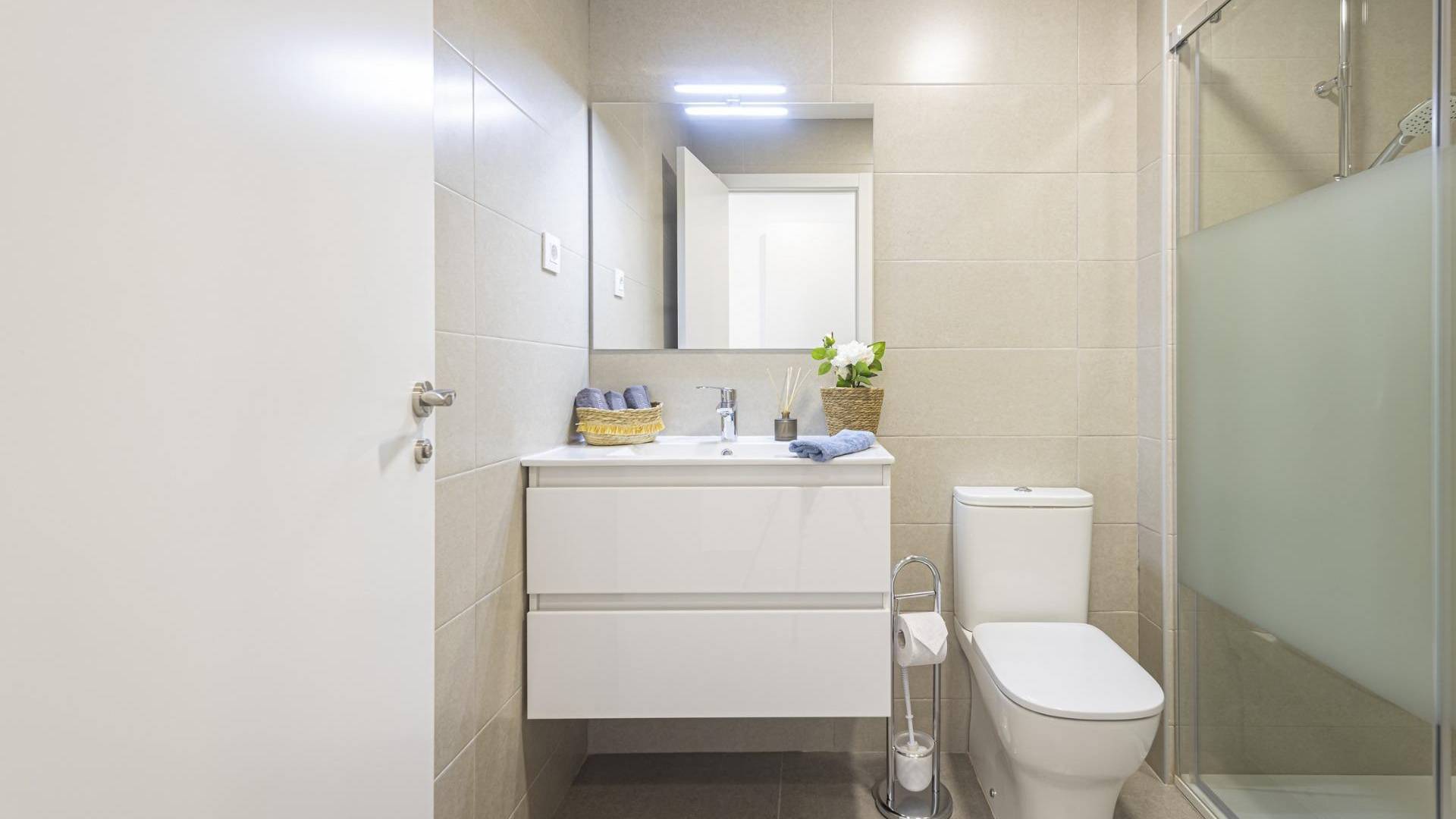 BEL APPARTEMENTS VUE MER A LA MANGA Cette urbanisation est située dans la plus grande zone d'expansion de La Manga. Dans cette nouvelle urbanisation, les maisons ont été conçues pour profiter de chaque coin de la maison, ainsi que du soin apporté au choix des matériaux et de leur conception. Appartements avec porte d'entrée blindée et portes laquées en blanc avec ferrures en acier inoxydable. Stores blancs monoblocs et double vitrage avec chambre à air. Dans la chambre parentale un placard encastré à portes coulissantes, avec une étagère séparatrice en mezzanine, un bar et une commode à trois tiroirs. Cuisine avec meubles hauts et bas, en blanc, poignée de type gola, évier simple avec égouttoir, plaque vitrocéramique, four électrique et hotte aspirante. Pré-installation de la climatisation (froid et chaud) par conduits avec disposition de zonage des pièces. La Manga del Mar Menor est une bande de terre naturelle entourée de deux mers, la Mar Menor et la mer Méditerranée. A cette rareté s'ajoutent les multiples possibilités de loisirs et temps libres, restaurants, supermarchés, centres médicaux, pharmacies, centres de sports nautiques, terrains de golf. La Manga est située sur la côte nord de la Costa Calida et est une destination de vacances populaire pour les touristes. L'étroite bande de terre séparant le lagon chaud et la mer plus froide a un microclimat unique. C'est l'une des régions les plus exotiques d'Espagne. L'aéroport de Corvera est à environ 1 heure de route et l'aéroport d'Alicante à environ 2 heures.