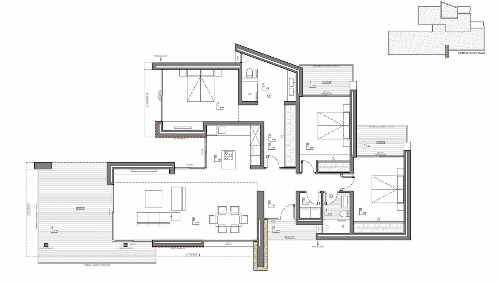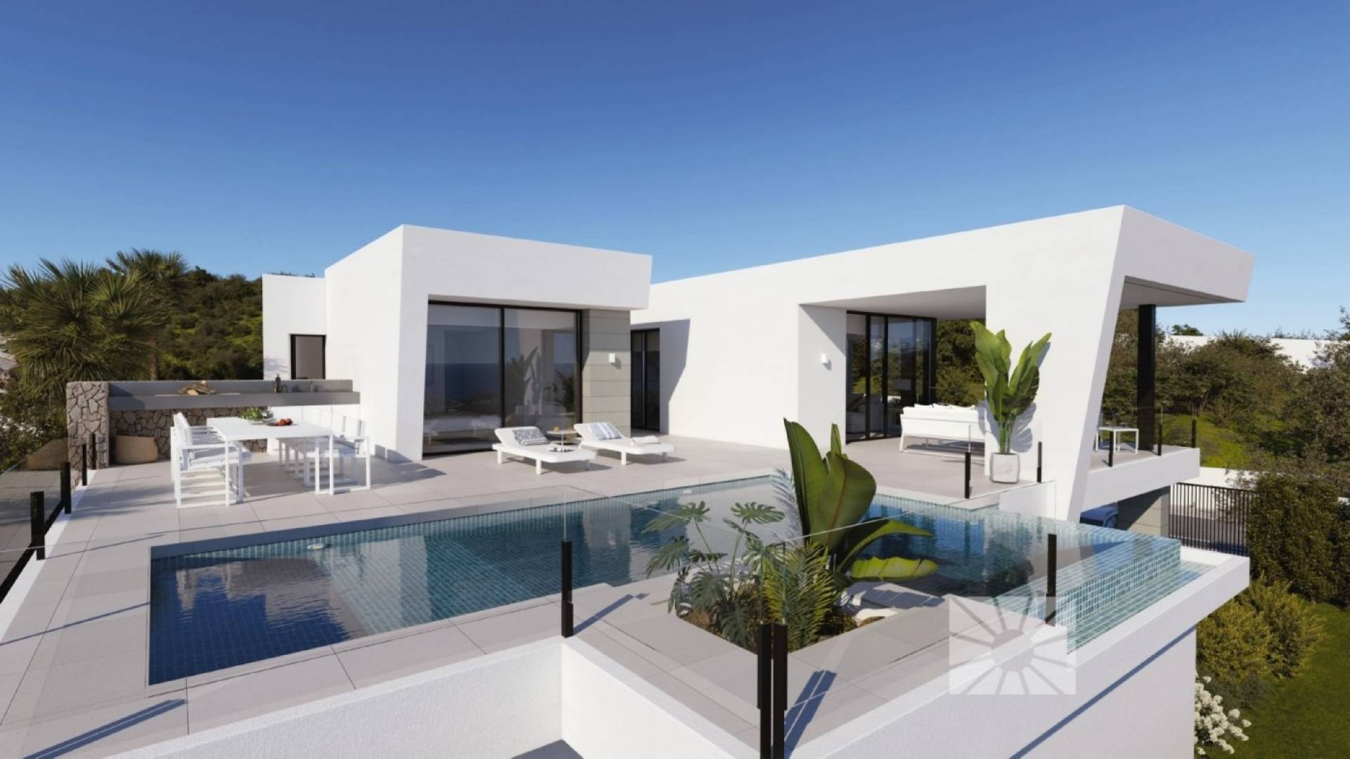 Villa design moderne à vendre à Cumbres del Sol Un projet unique pour l'une des dernières parcelles de terrain disponibles dans cette partie de l'urbanisation, une zone établie dans le complexe résidentiel Cumbre del Sol, conçu pour tirer le meilleur parti de la vue sur la mer. Son emplacement se distingue, principalement parce qu'il vous permet de vous rendre à pied au centre commercial «Adelfas», où vous pouvez trouver des services et une gamme de plats et la zone sportive de Cumbre del Sol. C'est un endroit idéal si vous voulez faire du sport, sortir pour un repas ou simplement faire une promenade. Un projet spécial pour ceux qui recherchent une propriété au design unique. Un aménagement pratique avec des solutions intelligentes qui parviennent à tirer le meilleur parti de l'espace. La villa dispose de 3 chambres, la chambre principale dispose d'un dressing et d'une salle de bains privative, les deux autres chambres ont une salle de bain commune et un accès à la terrasse. Il y a une cuisine ouverte donnant sur le salon-salle à manger séparé par un îlot, un vaste porche où vous pourrez profiter de longues conversations après le dîner, des espaces paysagers autour des terrasses, une piscine à débordement et bien d'autres détails qui font de cette propriété un lieu unique.