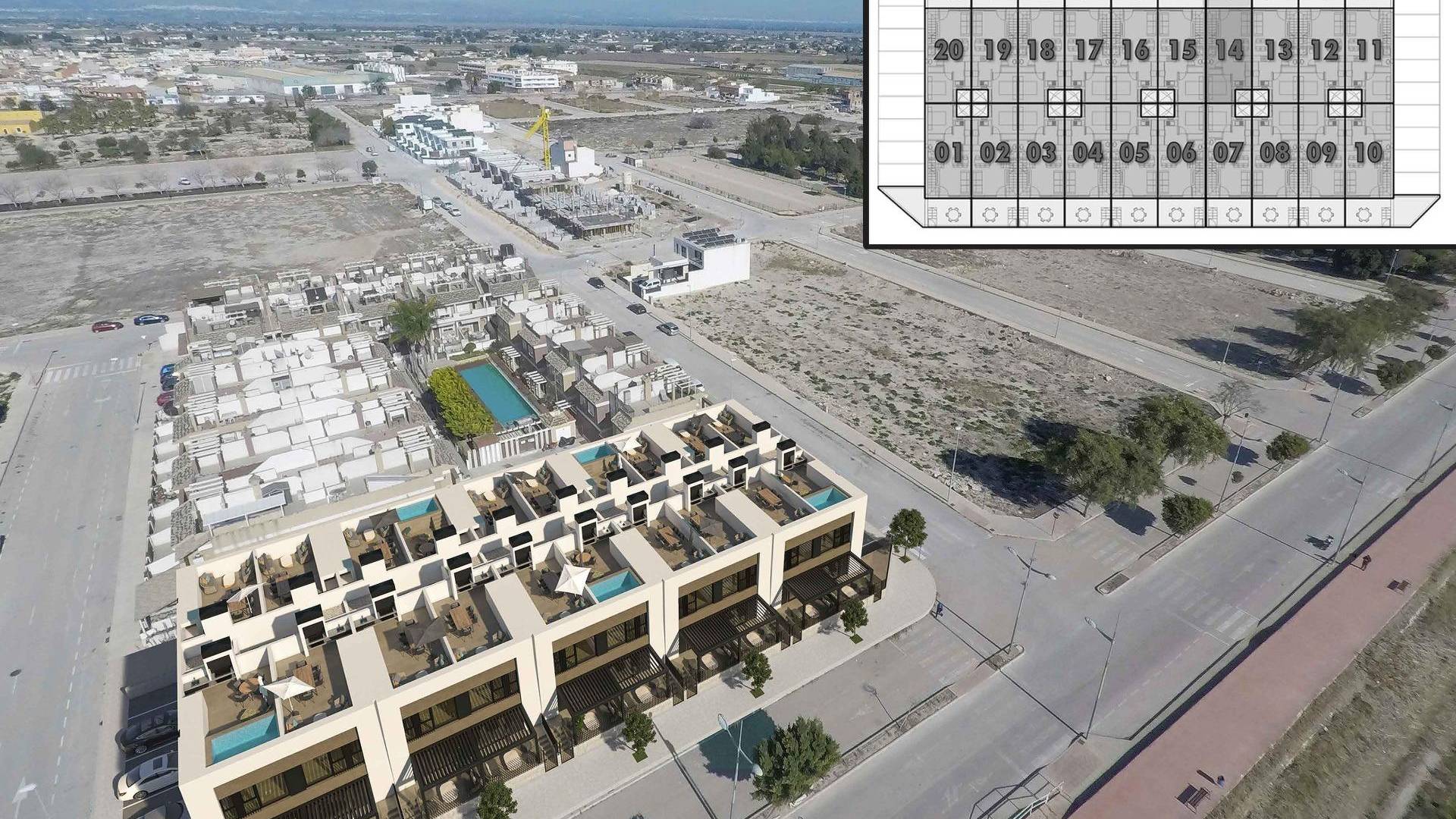 Maisons de ville modernes à Dolores avec piscine commune Des maisons contemporaines conçues pour le confort et le style Découvrez ce complexe résidentiel exclusif de 20 maisons de ville modernes à Dolores, offrant un mélange parfait d'espace, de style et de finitions de haute qualité. Avec jusqu'à 133 m² d'espace habitable, y compris de vastes terrasses, ces maisons sont disponibles en deux ou trois chambres, ce qui vous permet de choisir le design qui convient le mieux à votre style de vie. Chaque propriété s'étend sur trois étages, y compris un solarium privé, offrant des vues ouvertes à couper le souffle et un espace idéal pour se détendre. Les intérieurs sont dotés d'un éclairage LED intégré, de finitions contemporaines et d'un agencement ouvert qui favorise la lumière naturelle. Caractéristiques haut de gamme et améliorations optionnelles Intérieurs spacieux et lumineux avec des finitions de haute qualité Trois étages, dont un solarium sur le toit Piscine commune, idéale pour se détendre En option, jacuzzi privé ou piscine sur le toit (avec supplément) Parking privé pour chaque maison Cuisines et salles de bains modernes, conçues pour être fonctionnelles et élégantes. Un emplacement de choix - un cadre paisible et une excellente connectivité Situé à Dolores, une charmante ville de la région de Vega Baja à Alicante, ce projet offre un équilibre parfait entre vie paisible et accès facile aux services essentiels. La région est connue pour la beauté de son environnement naturel, ses paysages agricoles et son atmosphère détendue. Distances des principaux points d'intérêt : Plages de La Marina et Guardamar del Segura - 10 km (10 minutes) Aéroport d'Alicante - 30 km (25 minutes) Aéroport de Murcia-Corvera - 60 km (45 minutes) Terrains de golf - 10 km (10 minutes) Centres commerciaux (La Zenia Boulevard, Habaneras) - 12 km (15 minutes) Une maison parfaite sur la Costa Blanca Ces maisons de ville modernes à Dolores offrent une combinaison idéale de tranquillité, de vie moderne et de proximité des principales destinations. Que vous cherchiez une maison de vacances ou une résidence permanente, ce projet offre un style de vie confortable et élégant dans un emplacement privilégié. Ne manquez pas cette occasion ! Contactez-nous dès aujourd'hui pour plus d'informations ou pour planifier une visite.