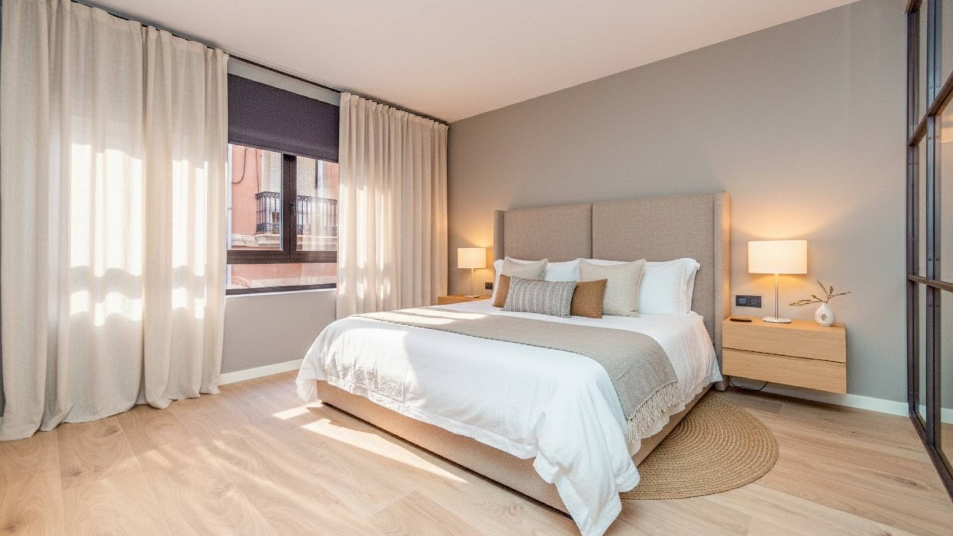 De grandes fenêtres apportent lumière naturelle abondante et vues sur la Calle San Francisco et Calle Barón de Finestrat, créant un environnement inspirant et accueillant au cœur d’Alicante.
