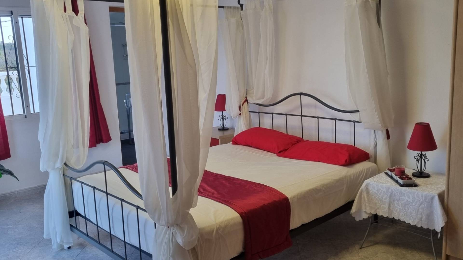 Il n'existe qu'une seule villa de ce type, et cela se voit à tout. Tout d'abord, c'est un véritable bijou pour les yeux et vous y trouverez tout le confort nécessaire. Un magnifique portail électrique et une immense allée avec une fontaine vous accueillent sur le terrain entièrement clôturé. L'allée est en béton estampé et entourée de magnifiques palmiers matures. Il y a également un abri en bois pour 2 voitures, afin que vous puissiez garer vos voitures/motos à l'abri du soleil. La grande piscine de 16 x 5 m vous invite à faire des longueurs et la terrasse qui l'entoure est également aménagée avec goût. Adjacente à la piscine, vous trouverez une cuisine extérieure avec bar, barbecue et poêle à bois de pas moins de 76 m² ! La cuisine extérieure est équipée de fenêtres en mousse de verre avec un film de protection solaire. Il y a également un espace de rangement de 11 m² qui peut être transformé en chambre. À l'extérieur, il y a également une douche et des toilettes séparées pour quand vous sortez de la piscine. La villa elle-même est immense. Vous entrez par la véranda, où se trouvent une table à manger et un grand canapé. La véranda est équipée de grandes fenêtres pour que vous puissiez profiter de la vue. Au rez-de-chaussée, vous trouverez une chambre avec salle de bains attenante, des toilettes pour invités, un grand salon avec un espace bureau séparé et une grande cuisine avec buanderie. La cuisine est faite sur mesure avec des plans de travail en marbre rouge et une table à manger assortie, également utilisable comme îlot. L'espace bureau est la seule pièce de la maison qui n'a pas encore été rénovée. On accède à l'étage supérieur par un magnifique escalier en marbre. Le hall d'entrée mesure à lui seul plus de 25 m² et comprend deux grands placards intégrés. À l'étage, vous trouverez pas moins de 4 chambres, chacune avec salle de bains attenante. Les chambres sont toutes uniques en termes de style et d'aménagement. La chambre gothique mesure plus de 17 m² et la salle de bains 2,8 m². Depuis cette chambre, vous accédez à la grande terrasse sur le toit recouverte de gazon artificiel. Depuis cette terrasse, vous avez une vue sur les montagnes et sur votre piscine avec cuisine extérieure. La chambre violette mesure également plus de 17 m² et dispose d'une salle de bains de 9,8 m². La chambre rose mesure pas moins de 23 m² et la salle de bains 8,5 m². Enfin, il y a la chambre rouge d'un peu moins de 20 m² avec une salle de bains de 3,8 m². Depuis cette chambre, vous accédez à l'autre terrasse sur le toit qui offre également une vue sur les montagnes environnantes. Enfin, il y a également un appartement entièrement indépendant au rez-de-chaussée avec sa propre entrée. L'appartement dispose d'une cuisine ouverte avec un grand salon-salle à manger de pas moins de 48 m², une chambre spacieuse de 18,6 m² et une grande salle de bains de 7,8 m². La villa est raccordée au réseau électrique, au réseau d'égouts et au réseau d'eau potable. Elle se trouve à quelques pas des commodités.