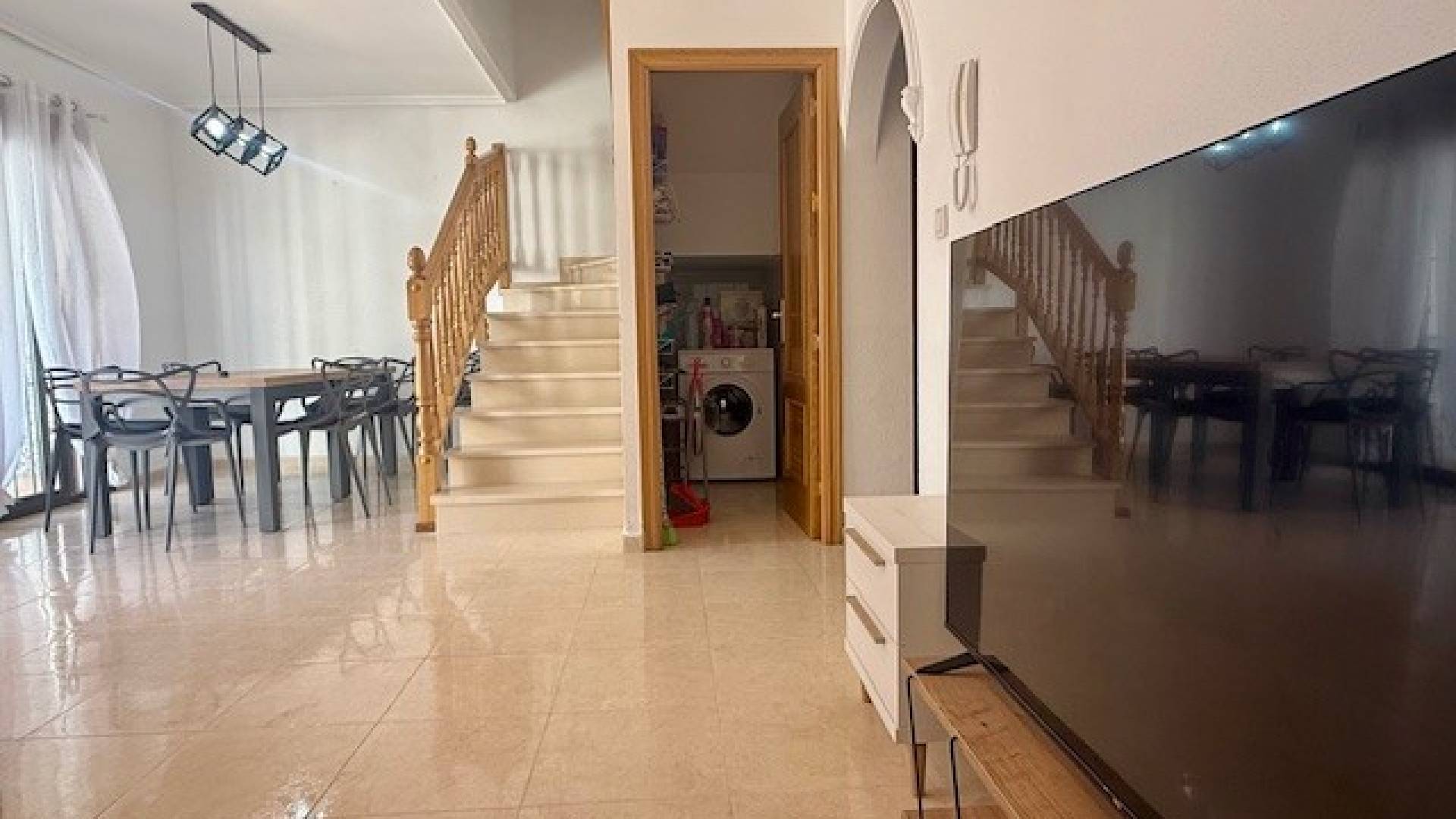 Découvrez cette charmante maison située dans un lotissement en plein développement. C'est à San Miguel de Salinas qu'on trouve cette maison, à l'extérieur du village mais dans un quartier privilégié, au calme et au milieu de la nature. Au coeur d'une urbanisation avec piscine commune, la maison offre une superficie idéale pour y vivre toute l'année ou pour y passer des vacances en famille sans se marcher sur les pieds. Etirée sur deux niveaux, elle dispose de 3 chambres et 3 salles de bain. Idéal pour l'intimité de chacun... Au sous-sol, le propriétaire dispose d'une place de parking et d'une vaste cave. La maison est vendue meublée et équipée. A voir sans tarder !